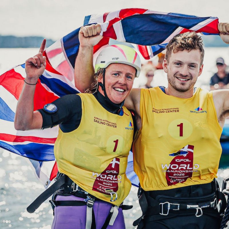 Gold geht in diesem Jahr gleich zweimal an das Vereinigte Königreich: Emma Wilson und Andy Brown gewinnen die iQFOiL-Weltmeisterschaft in Aarhus. Theresa Marie Steinlein holt nach den packenden Finalläufen der Damen Bronze hinter der Silbermedaillengewinnerin Tamar Steinberg. Silber und Bronze bei den Herren gehen an Tom Arnoux und Nicolò Renna.