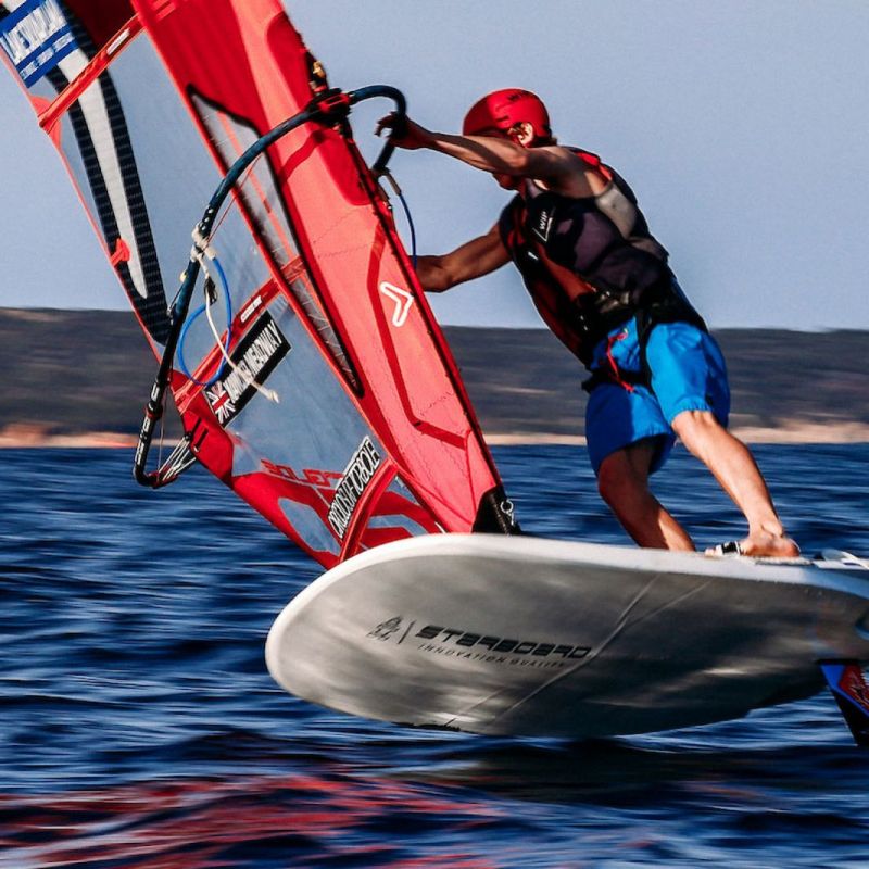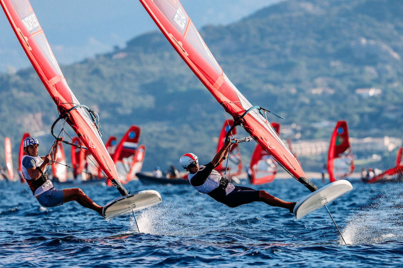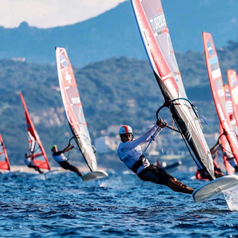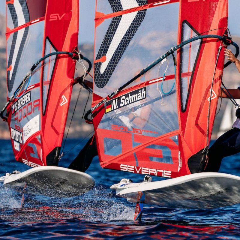 Gegen Mittag legte sich eine thermische Brise aus Ostnordost über die Bucht und sorgte für ideale Bedingungen. Bei Windgeschwindigkeiten zwischen 8 und 11 Knoten konnten die Segler bei gemäßigtem Seegang antreten - perfekt für sauberes Foilen und taktische Entscheidungen.