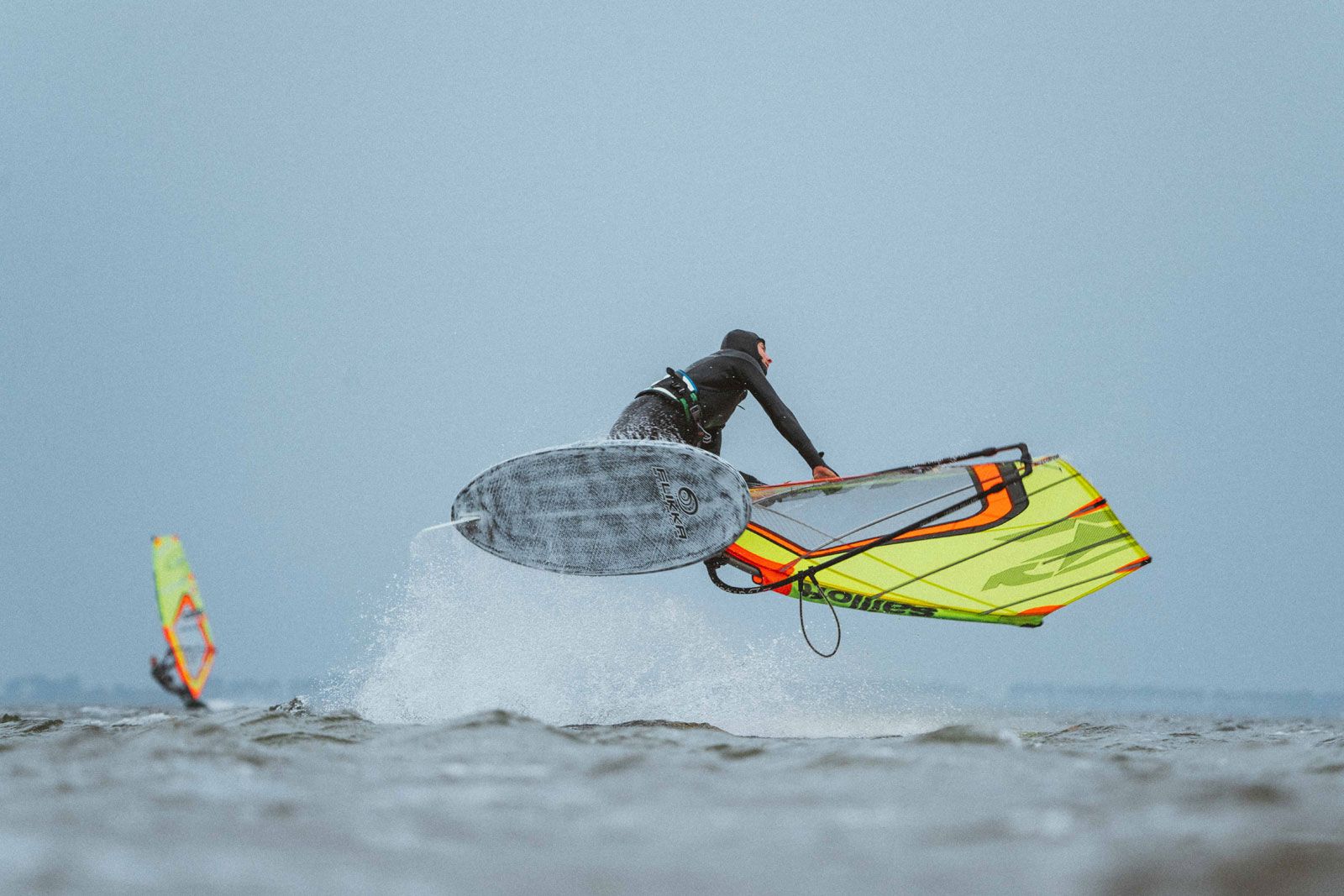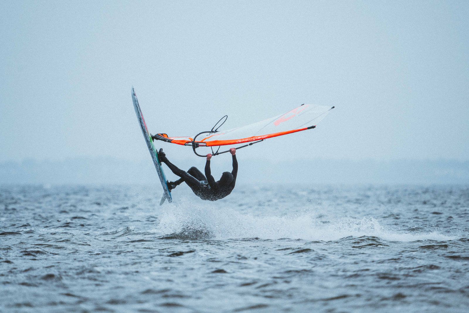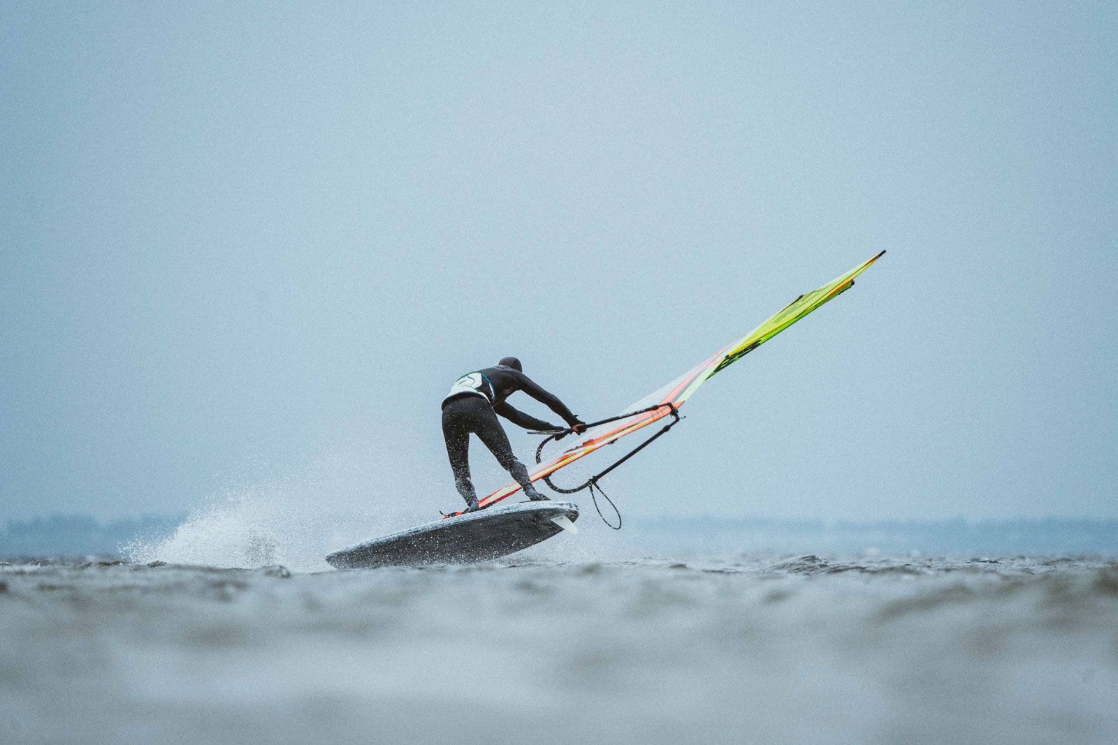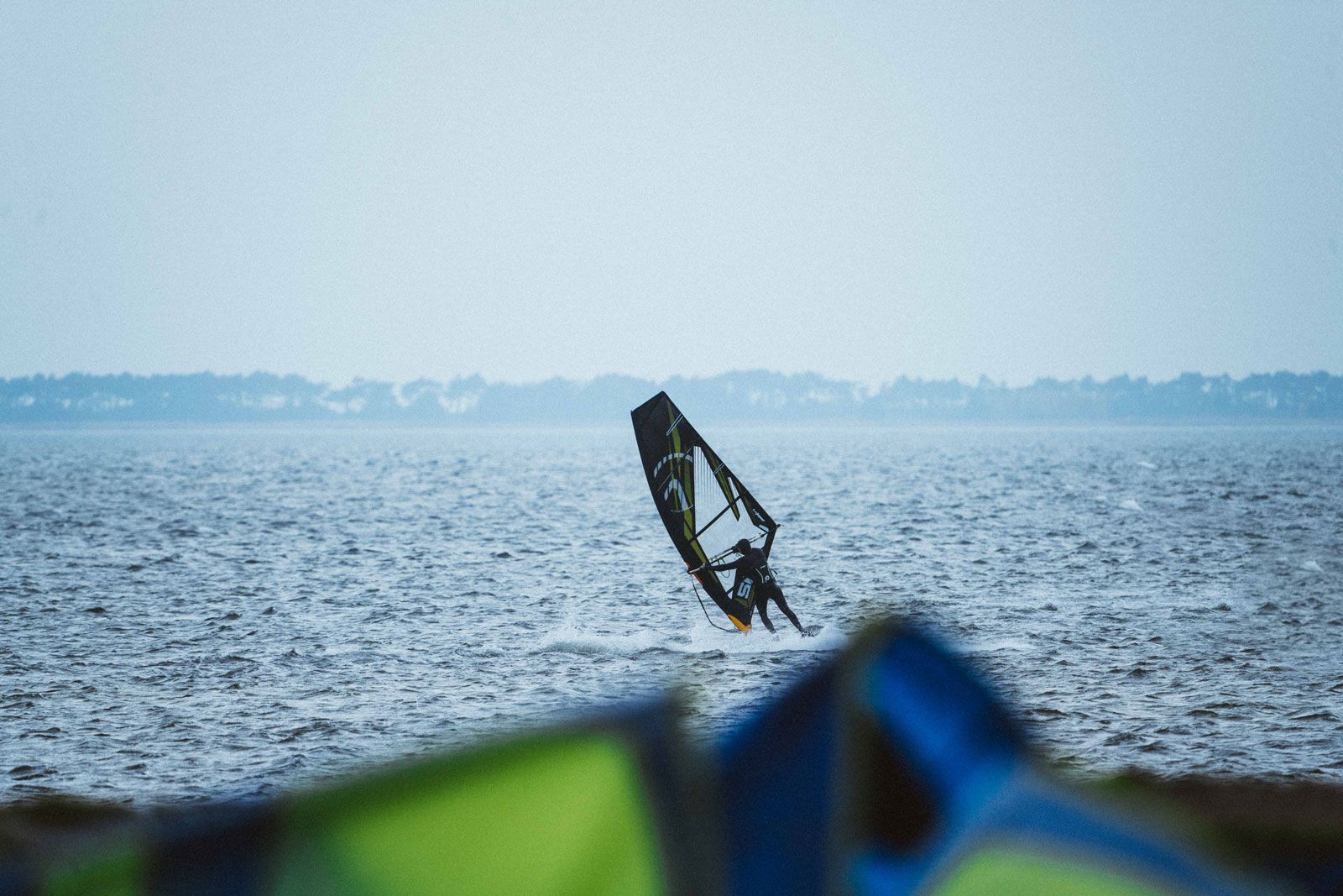 Ja, Wahnsinn, dass das schon November war. Ich meine wir hatten zwei Tage Sonnenschein und Wind, außer in meinem ersten Heat (lacht). Wir wollten einfach noch 2021 den Stein ins Rollen bekommen. Und weil du auf dem Bodden überall stehen kannst, ist es auch an kalten Tagen noch angenehm. Dass es so nett wird, haben wir uns selber nicht erträumt. Die Ummaii Station in Suhrendorf war der erste Austragungsort und die Mädels und Jungs sind echt top in der Organisation von Veranstaltungen. Dass wir gleich eine Moderation und Räumlichkeiten zur Verfügung hatten, hätten wir zuvor auch nicht zu hoffen gewagt. Dazu die coole Sauna… das war ziemlich perfekt. Suhrendorf ist so ziemlich der Hauptspot zum Freestylen. Vorne wird es fast nie choppy und der Wind kommt bei westlichen Richtungen immer frei rein. Abgesehen vom Seegrass ist das also ein genialer Spot.