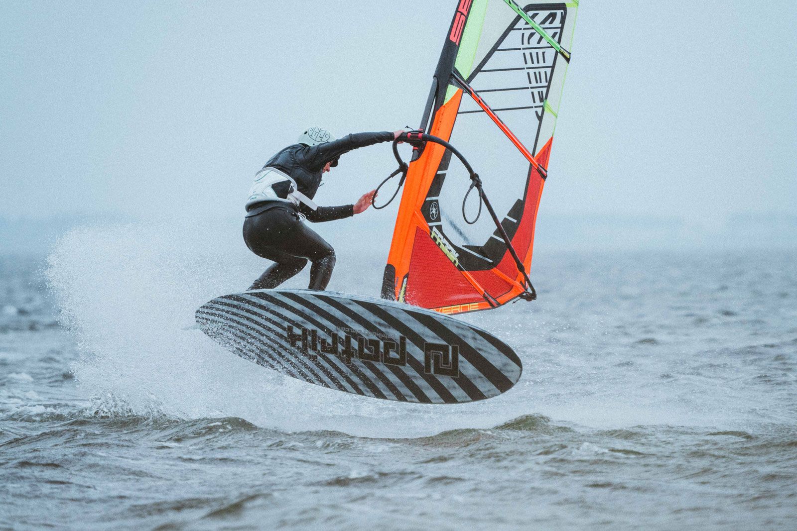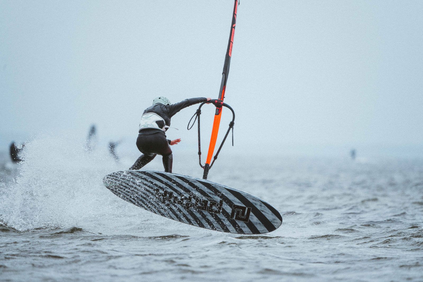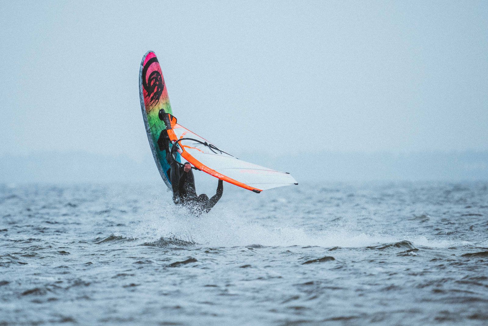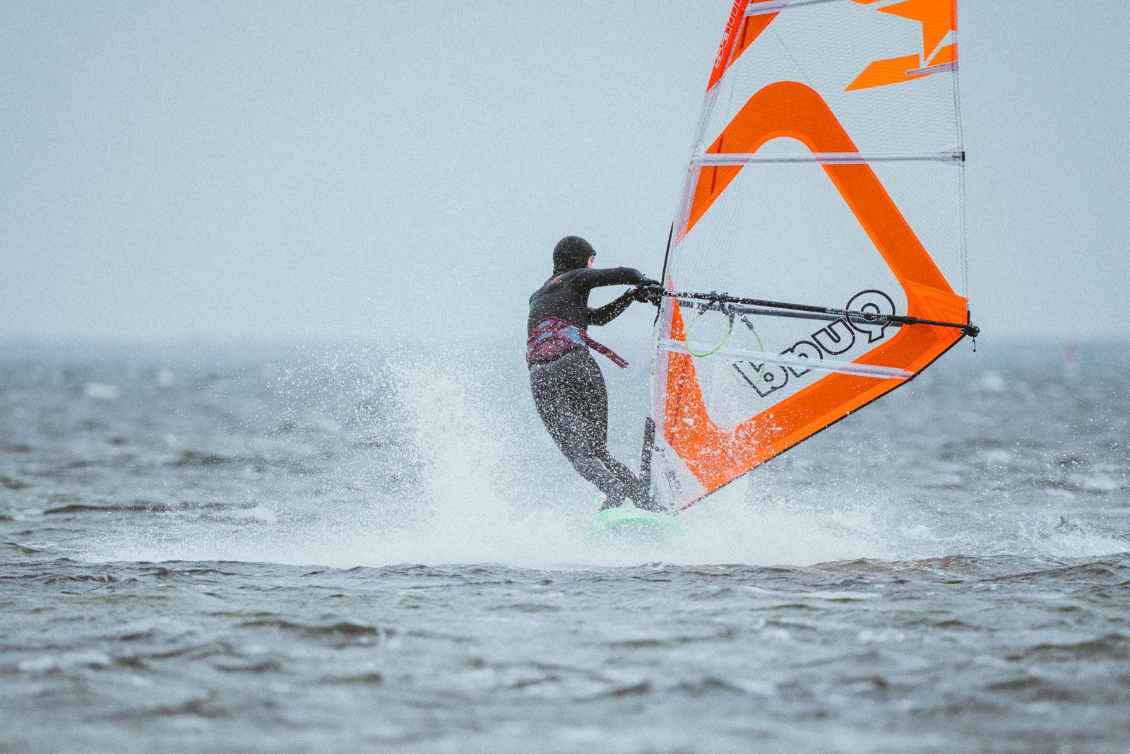 Ja, Wahnsinn, dass das schon November war. Ich meine wir hatten zwei Tage Sonnenschein und Wind, außer in meinem ersten Heat (lacht). Wir wollten einfach noch 2021 den Stein ins Rollen bekommen. Und weil du auf dem Bodden überall stehen kannst, ist es auch an kalten Tagen noch angenehm. Dass es so nett wird, haben wir uns selber nicht erträumt. Die Ummaii Station in Suhrendorf war der erste Austragungsort und die Mädels und Jungs sind echt top in der Organisation von Veranstaltungen. Dass wir gleich eine Moderation und Räumlichkeiten zur Verfügung hatten, hätten wir zuvor auch nicht zu hoffen gewagt. Dazu die coole Sauna… das war ziemlich perfekt. Suhrendorf ist so ziemlich der Hauptspot zum Freestylen. Vorne wird es fast nie choppy und der Wind kommt bei westlichen Richtungen immer frei rein. Abgesehen vom Seegrass ist das also ein genialer Spot.