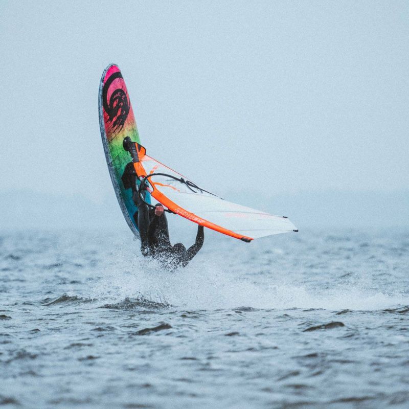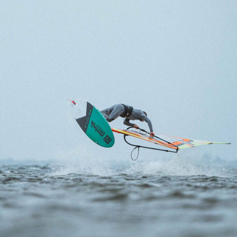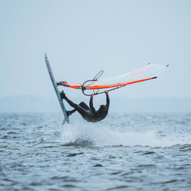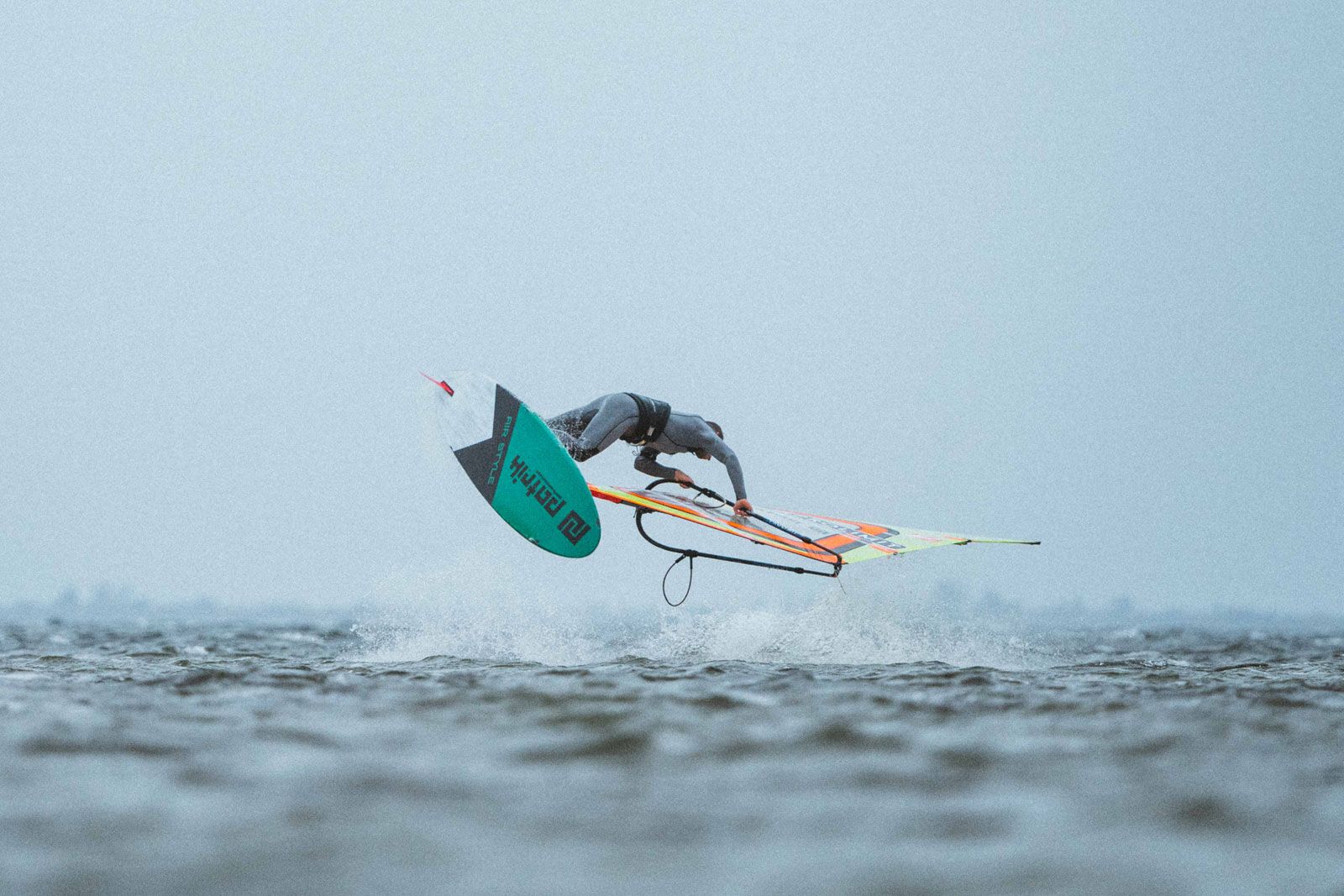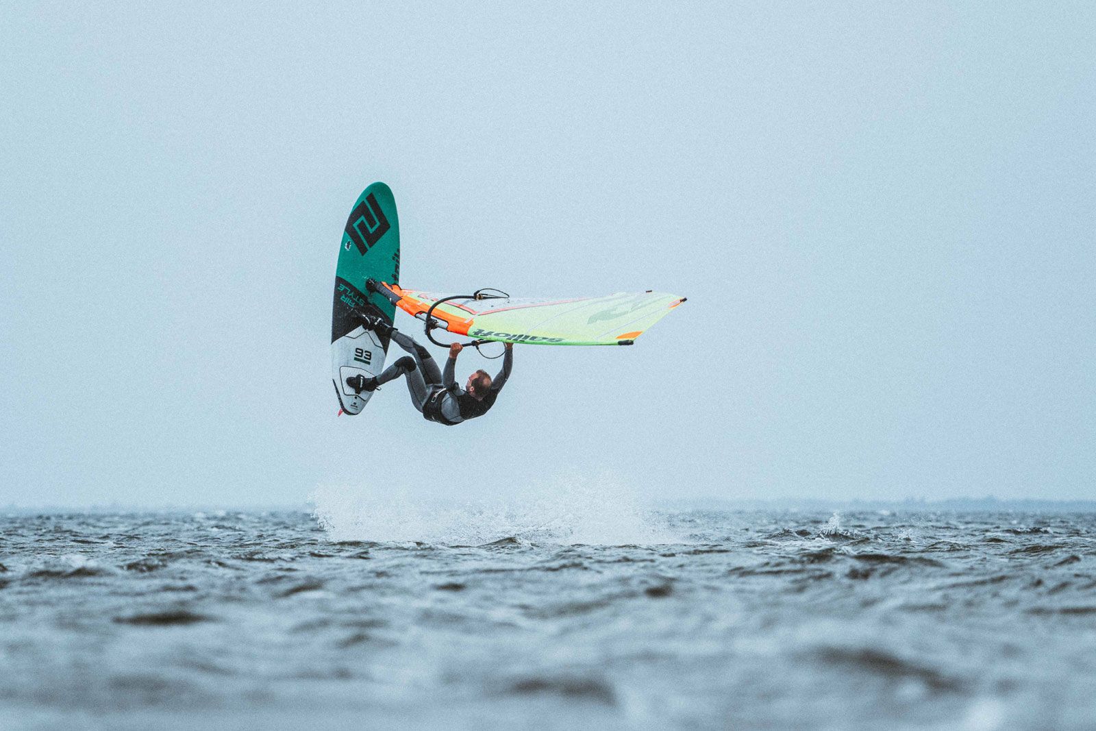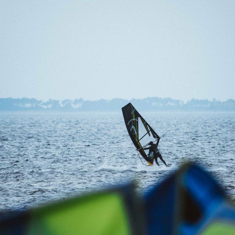 Ja, Wahnsinn, dass das schon November war. Ich meine wir hatten zwei Tage Sonnenschein und Wind, außer in meinem ersten Heat (lacht). Wir wollten einfach noch 2021 den Stein ins Rollen bekommen. Und weil du auf dem Bodden überall stehen kannst, ist es auch an kalten Tagen noch angenehm. Dass es so nett wird, haben wir uns selber nicht erträumt. Die Ummaii Station in Suhrendorf war der erste Austragungsort und die Mädels und Jungs sind echt top in der Organisation von Veranstaltungen. Dass wir gleich eine Moderation und Räumlichkeiten zur Verfügung hatten, hätten wir zuvor auch nicht zu hoffen gewagt. Dazu die coole Sauna… das war ziemlich perfekt. Suhrendorf ist so ziemlich der Hauptspot zum Freestylen. Vorne wird es fast nie choppy und der Wind kommt bei westlichen Richtungen immer frei rein. Abgesehen vom Seegrass ist das also ein genialer Spot.