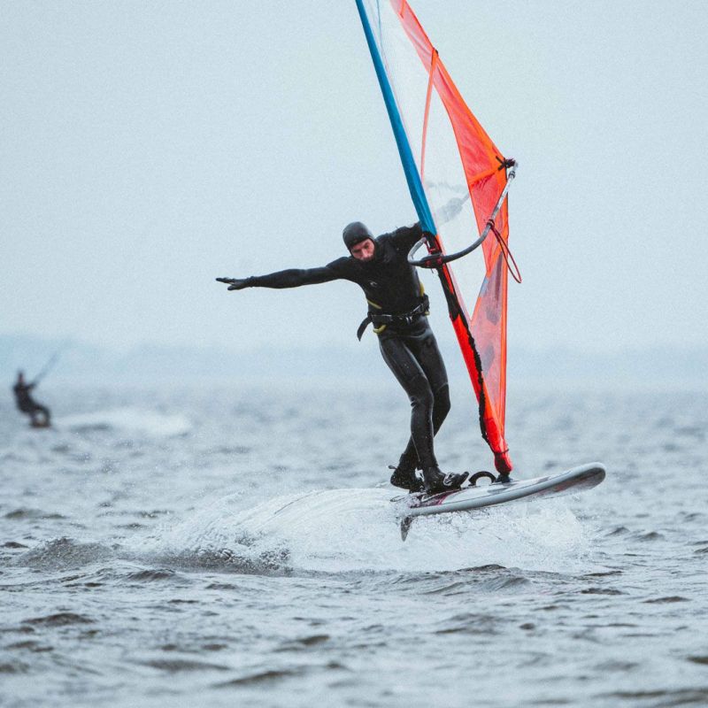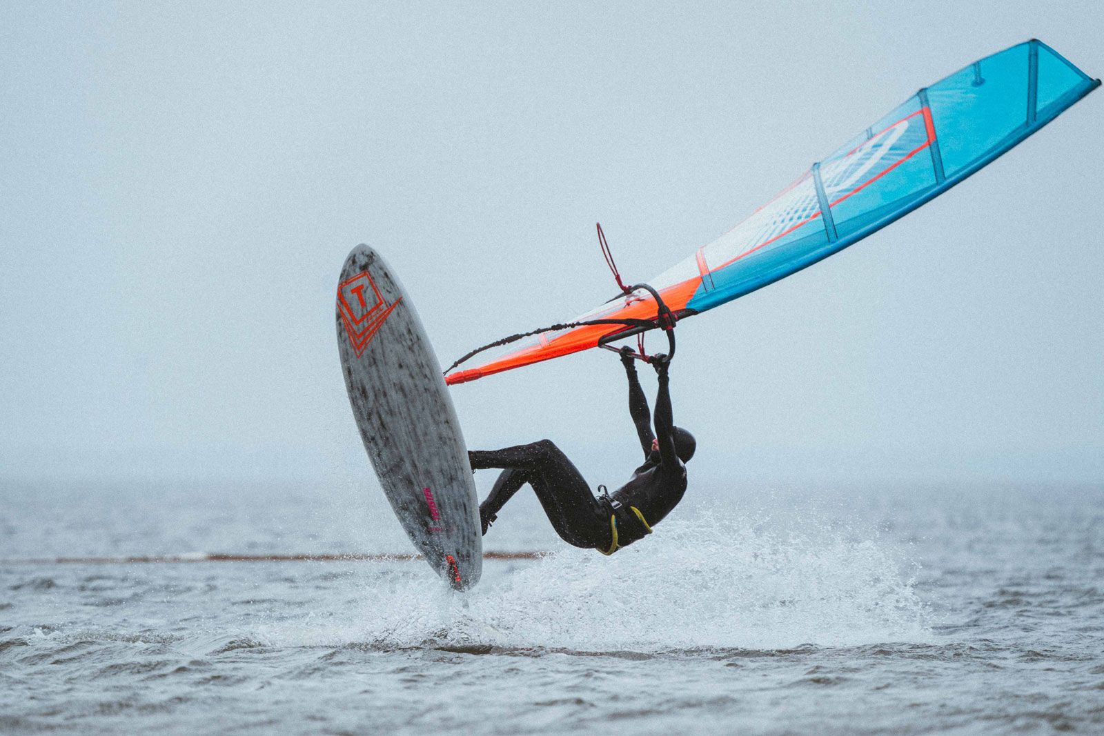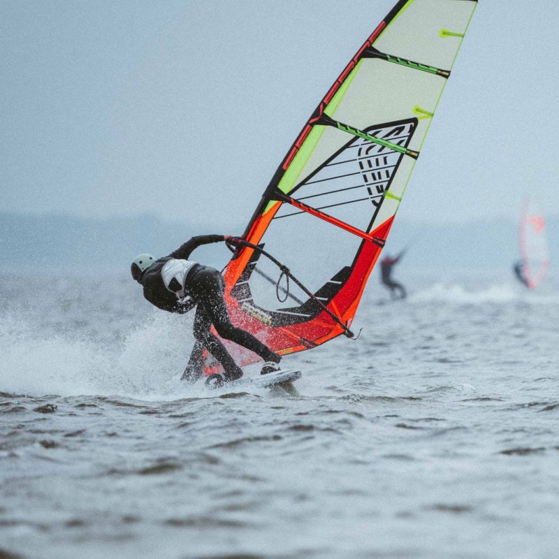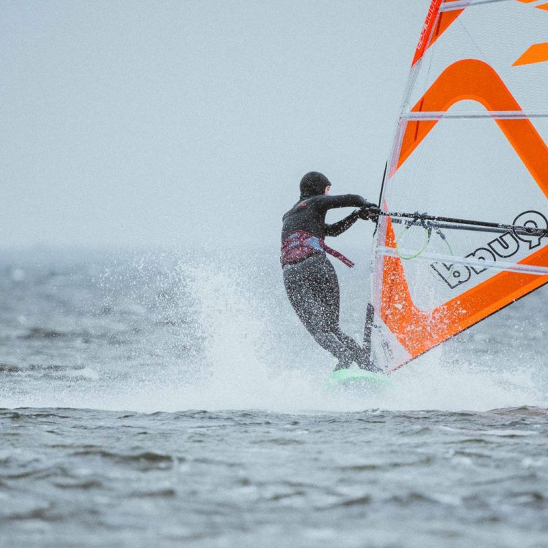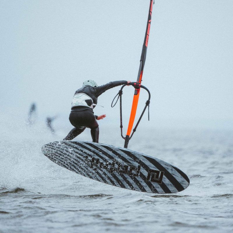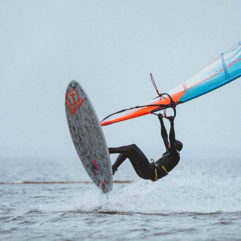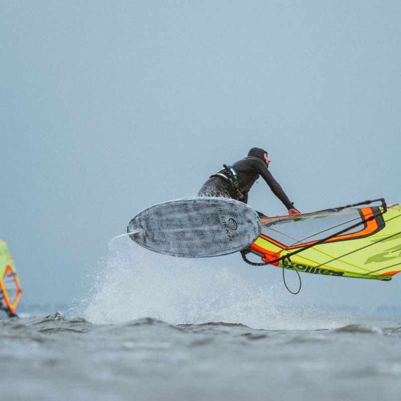 Ja, Wahnsinn, dass das schon November war. Ich meine wir hatten zwei Tage Sonnenschein und Wind, außer in meinem ersten Heat (lacht). Wir wollten einfach noch 2021 den Stein ins Rollen bekommen. Und weil du auf dem Bodden überall stehen kannst, ist es auch an kalten Tagen noch angenehm. Dass es so nett wird, haben wir uns selber nicht erträumt. Die Ummaii Station in Suhrendorf war der erste Austragungsort und die Mädels und Jungs sind echt top in der Organisation von Veranstaltungen. Dass wir gleich eine Moderation und Räumlichkeiten zur Verfügung hatten, hätten wir zuvor auch nicht zu hoffen gewagt. Dazu die coole Sauna… das war ziemlich perfekt. Suhrendorf ist so ziemlich der Hauptspot zum Freestylen. Vorne wird es fast nie choppy und der Wind kommt bei westlichen Richtungen immer frei rein. Abgesehen vom Seegrass ist das also ein genialer Spot.
