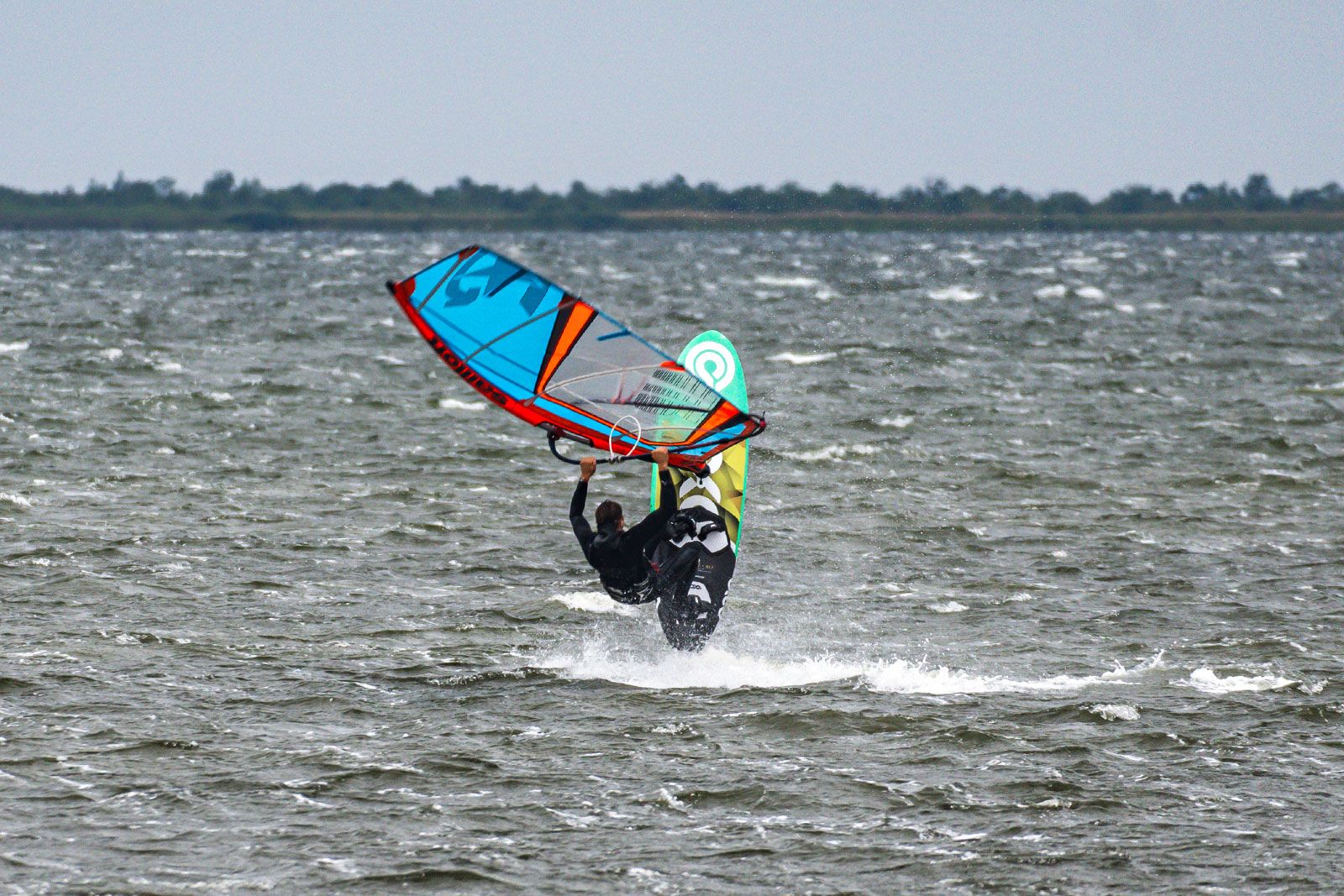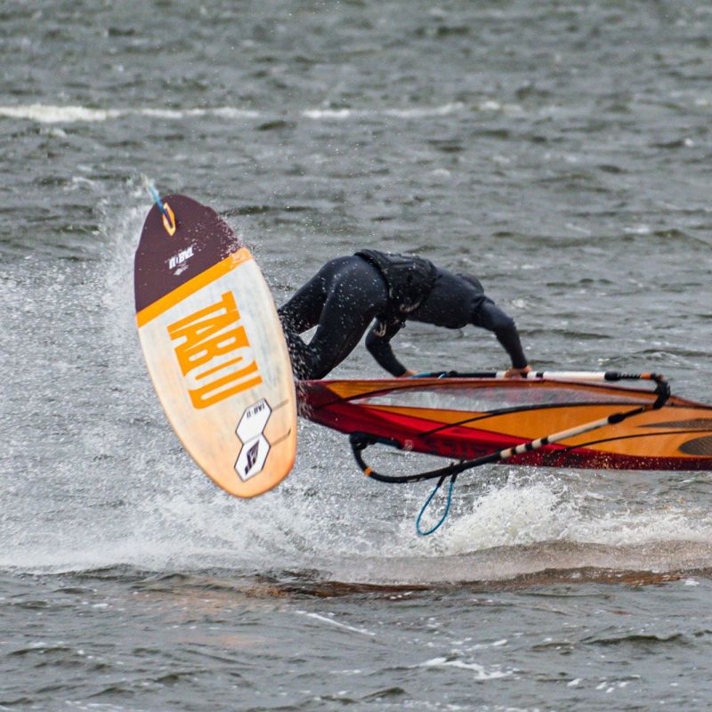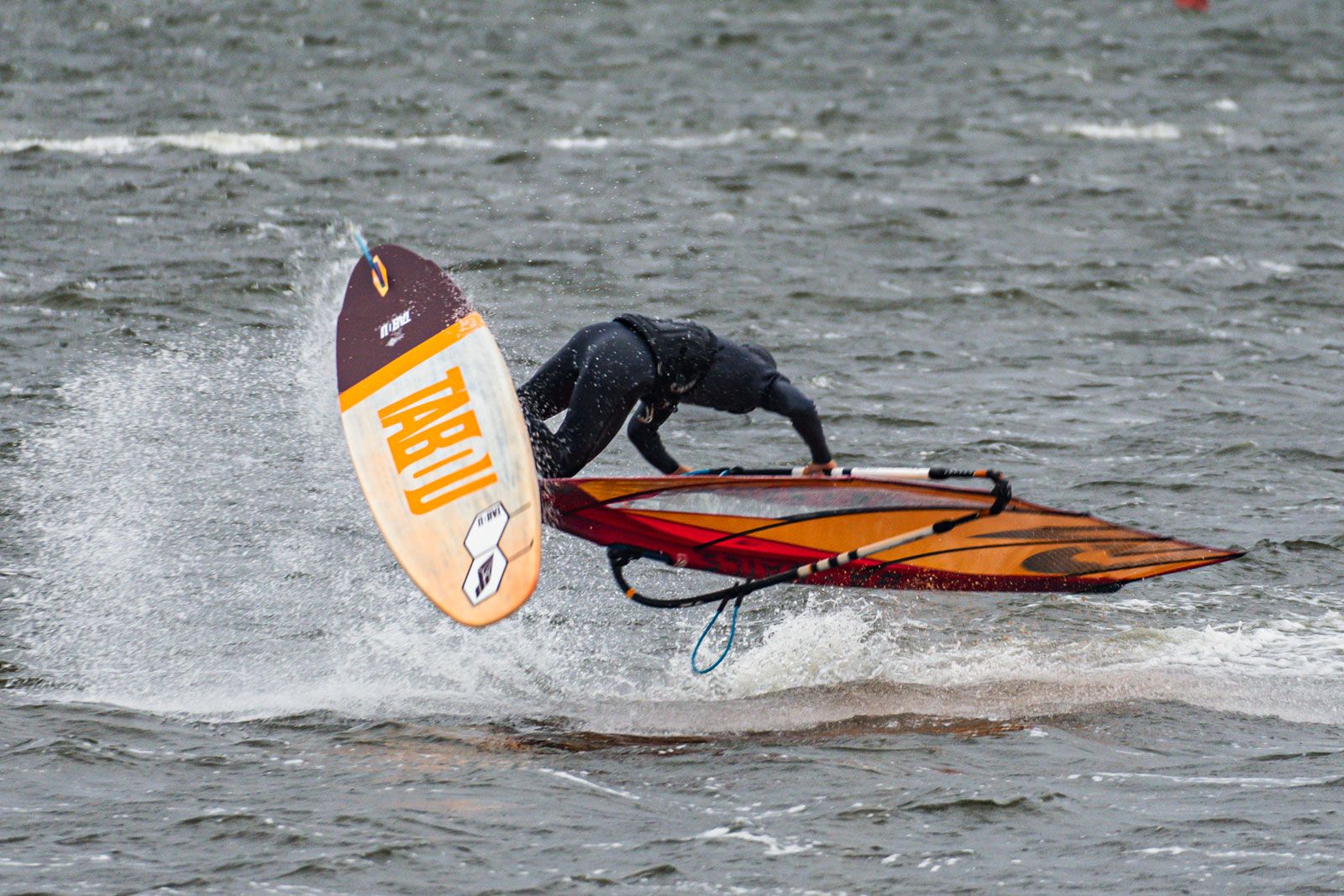 Dank des überschaubaren Teilnehmerfeldes konnte der Wettkampf mit Single und Double Elimination ganz entspannt am Samstag ausgetragen werden, obwohl die Windvorhersage auch einen Wettkampf über zwei Tage erlaubt hätte. Der Startschuss fiel um 11:30 Uhr mit dem B-Feld, in dem Hermann Behrndt gegen Louis Rautmann sowie Lukas Gresch gegen Micha Belitz antraten. Hier duellierte man sich mit Chop Hops, Duckjibes, ersten Airjibes und Old-School-Tricks wie Pirouetten-Halsen und Willy Skipper. Michael Belitz setzte sich am Ende durch und musste sich erst geschlagen geben, als er ins Feld der Starter aus der A-Wertung dropte und gegen Pascal Mikolajski ran musste, der zuvor Laurens Nagel besiegt hatte. Auf der anderen Hälfte der Elimination Ladder setzte sich Thies Romig vor Georg Hünerjäger und Philipp Grzybowski durch. Mit Spock, Flaka und Spinloops war hier nicht mehr viel zu holen. Wer nicht mindestens ein bis zwei Switchmoves landete, musste sich geschlagen geben. Ganz oben im Wettkampfbaum warteten die Titelverteidiger Markus Marsand und Vizemeister Mathias Genkel. Beide setzten sich gegen Pascal Mikolajski und Thies Romig durch. Im A-Finale konnte sich schließlich Markus Marsand durchsetzen, das kleine Finale ging an Pascal Mikolajski.