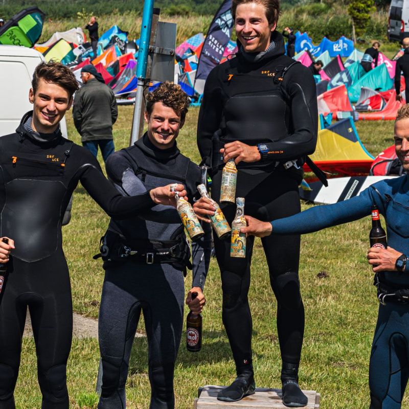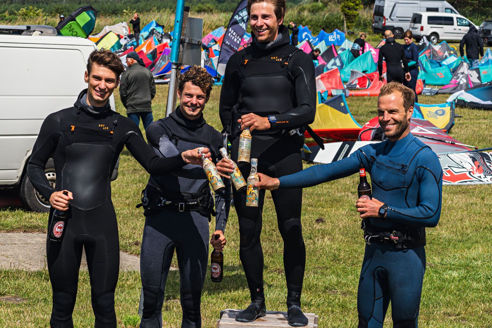 Im Anschluss folgte eine kleine Siegerehrung mit Party in der Surfschule. Eigentlich wollten wir den Sonntag noch für eine spaßige Supersession nutzen. Dank grenzwertigem Wind und einem langen Vorabend vergnügte man sich aber mit einem gemeinsamen Freisurfen und hatte nochmal zusammen Spaß auf dem Wasser.