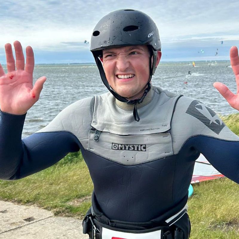 Lukas Gresch, Sieger der B-Wertung, nach seinem fulminanten Comeback und dem fünften Heat in Folge mit sichtbaren Blessuren.