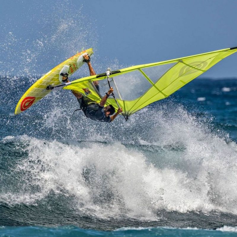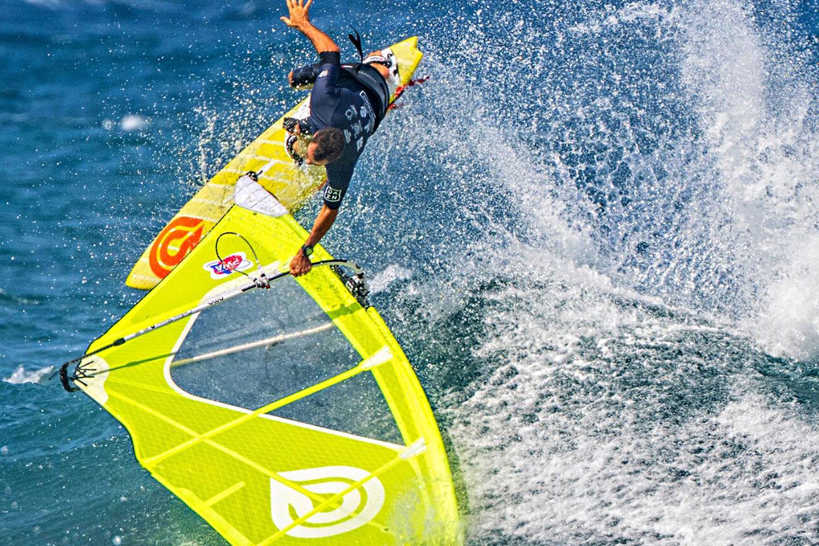 So war dann nicht der Kampf um den Sieg, sondern fast eher der Kampf um den zweiten Platz, dass sehenswerte Match an diesem Tag. Die Entscheidung spielte sich ab, als Kai Lenny in der ersten Hälfte des 30-minütigen Heats versuchte das Kommando zu übernehmen. Er erwischte eine der besten Wellen des Tages und drückte sich von der Lippe ab, um eine massive Rotation anstelle eines einfachen Airs einzuleiten, was vermutlich gereicht hätte, um die Judges zu begeistern. Als sich sein Rigg dann im Weißwasser verfängt und er es nicht mehr lösen kann, war klar, dass sein Risikoeinsatz heute nicht belohnt wurde. Eine zweite Chance auf einen solchen immensen Wavescore wurde ihm nicht mehr geboten. Gleich in der nächsten Welle zeigt Camille Juban einen perfekten einhändigen Goiter, der ihm verdient den zweiten Platz im Finale sichert.