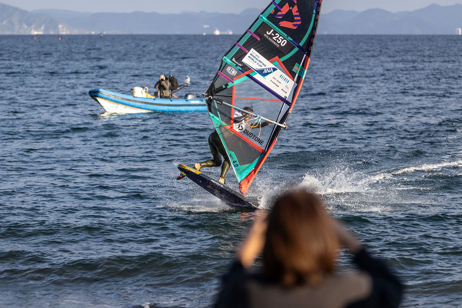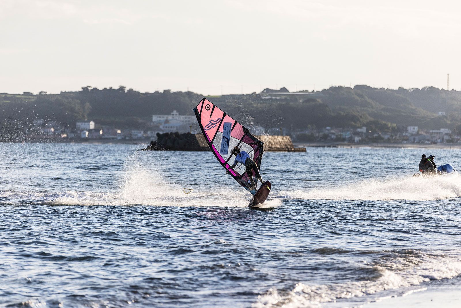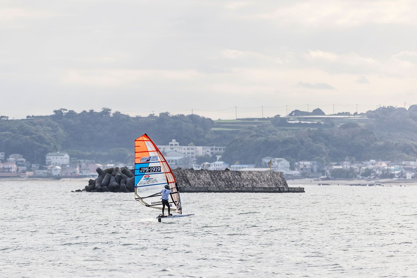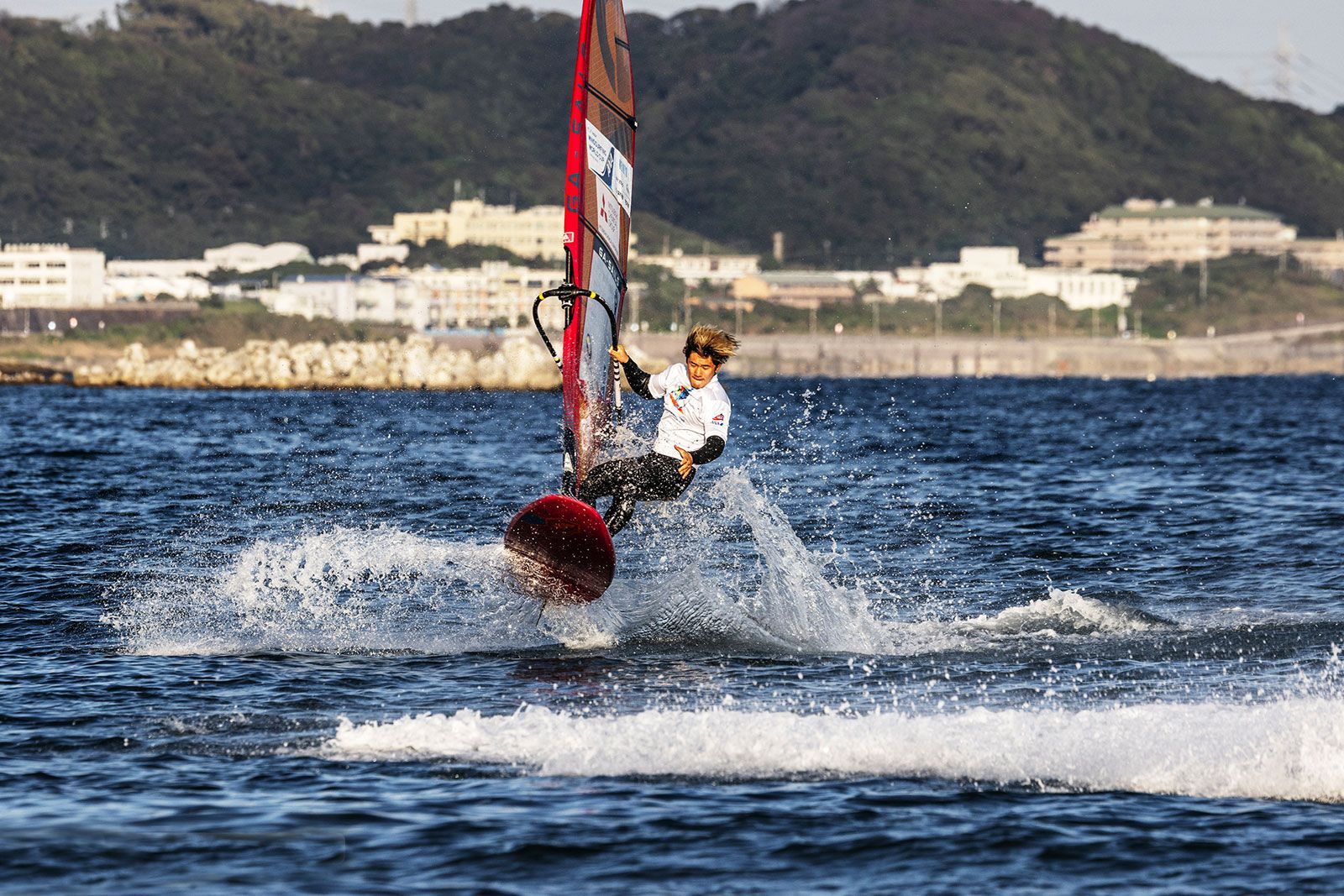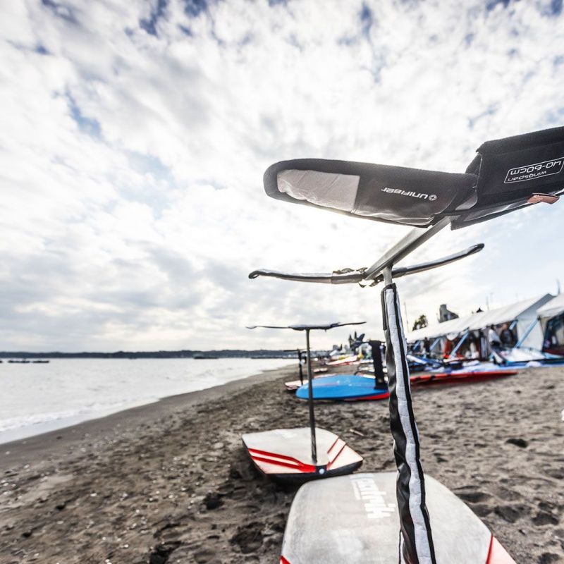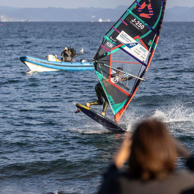 von Sven BlockKeine Wettkämpfe am ersten Tag vor dem Tsukiuhama Beach bei letzten Tourstopp der PWA in diesem Jahr. Nach der Registrierung gingen sich zwar ein paar Athleten mit dem Foil aufs Wasser, aber der Wind ging am frühen Nachmittag weiter runter und pendelte sich bei Stärken zwischen 3 bis 10 Knoten ein, sodass das Rennkomitee die Fahrer um 15 Uhr entließ. Für Action auf dem Wasser war trotzdem gesorgt. Takuma Sugi, Takumi Moriya und andere Locals ließen sich per Seilwinde anziehen und zeigten ihre Freestyle-Moves auf dem Wasser.