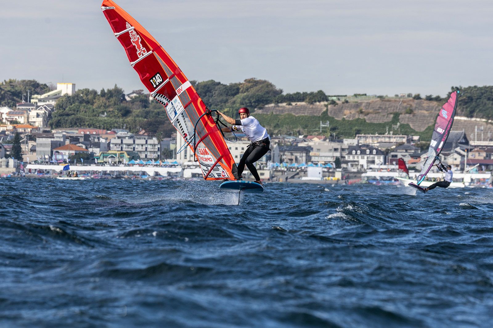 Lina Eržen (Starboard / S2Maui / Starboard Foil) ist ihre größte Konkurrentin. Die 23-Jährige landete in Guadeloupe in sechs Rennen nur einmal außerhalb der Top-2 und ist neben Justine Lemeteyer die einzige andere Starterin, die in Japan bislang einen Sieg erringen konnte. Lina Eržen gewann hier 2023. Ein weiterer Sieg könnte ihr den ersten Weltmeistertitel bescheren.