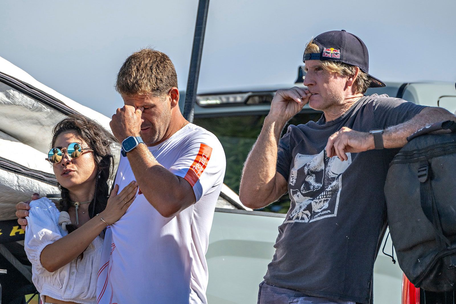 Mit dem Aus von Ricardo Campello und Marc Paré steht Marcilio Browne bereits bevor es für ihn aufs Wasser geht als Weltmeister 2023 fest. Er tritt im letzten Heat des Tages bei den Herren gegen Camille Juban an, der seine vierte Position gegen Morgan Noireaux verteidigen konnte.