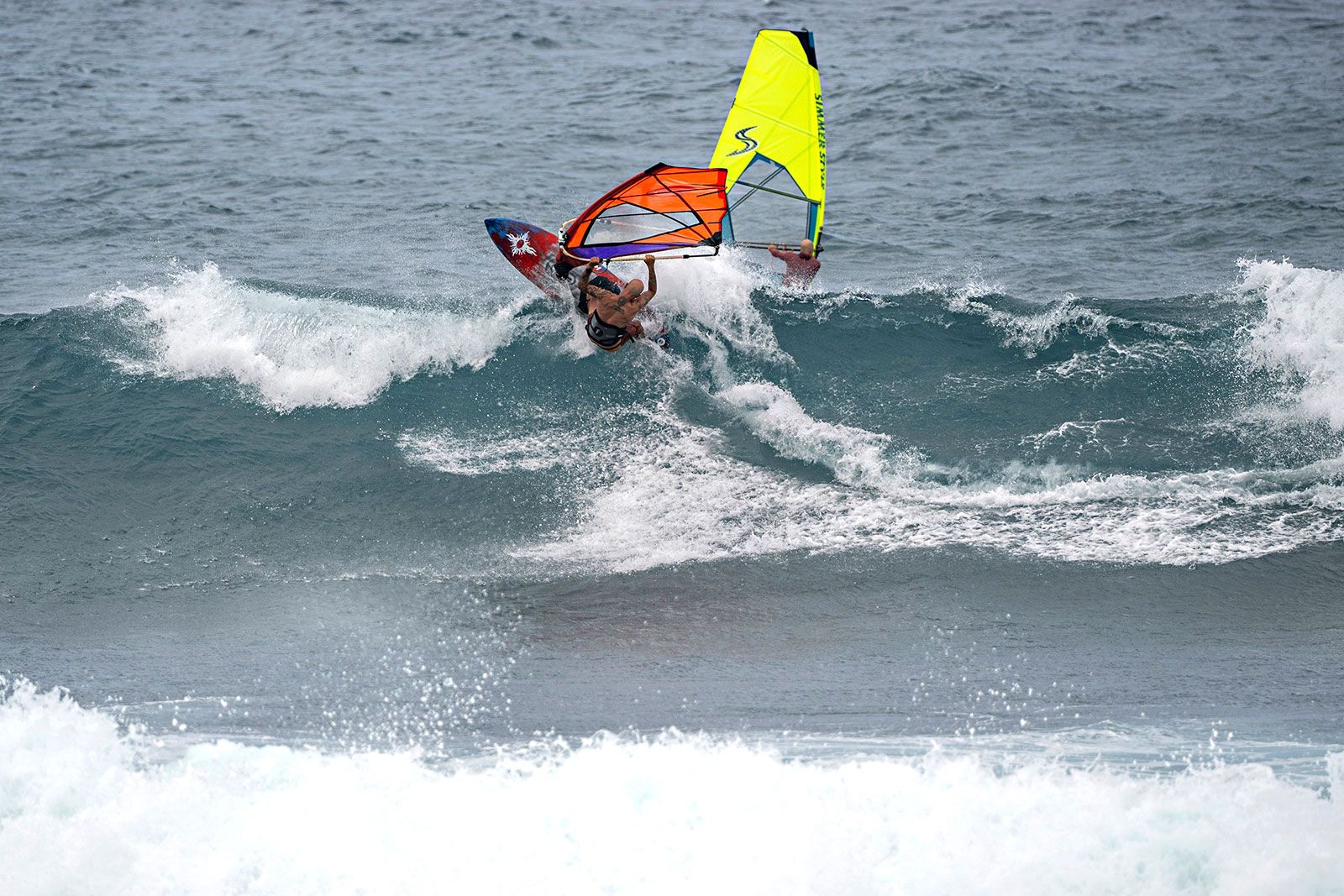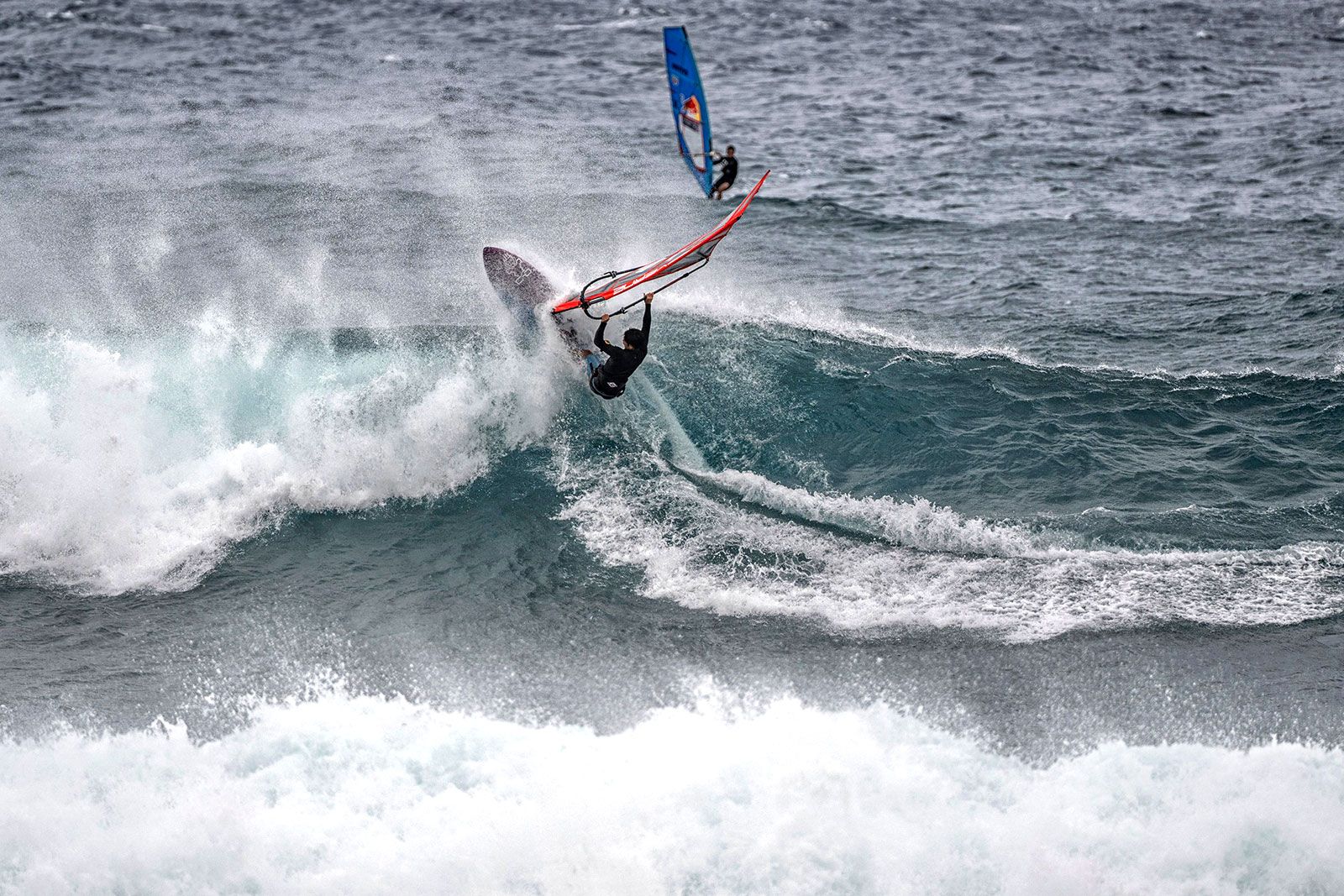 von Sven BlockBei logohohen Wellen und leichtem schräg ablandigem Wind wurden die Entscheidungen bei den Damen und Herren zunächst ausgesetzt, um die Junioren und die U45-Divison aufs Wasser zu schicken. Liam Dunkerbecks Dominanz in der U21-Wertung bleibt ungebrochen, er setzt sich im Finale gegen seine starken Gegner durch. Marlon Maethner wird Dritter hinter dem Japaner Hayata Ishii. In der Masters-Divison kam es zum Showdown der Legenden. Keith Teboul holte sich den Sieg vor Francisco Goya, Vincent Beauvarlet und Paul Karaolides, der seine Kamera heute gegen sein Wave-Equipment tauschte.