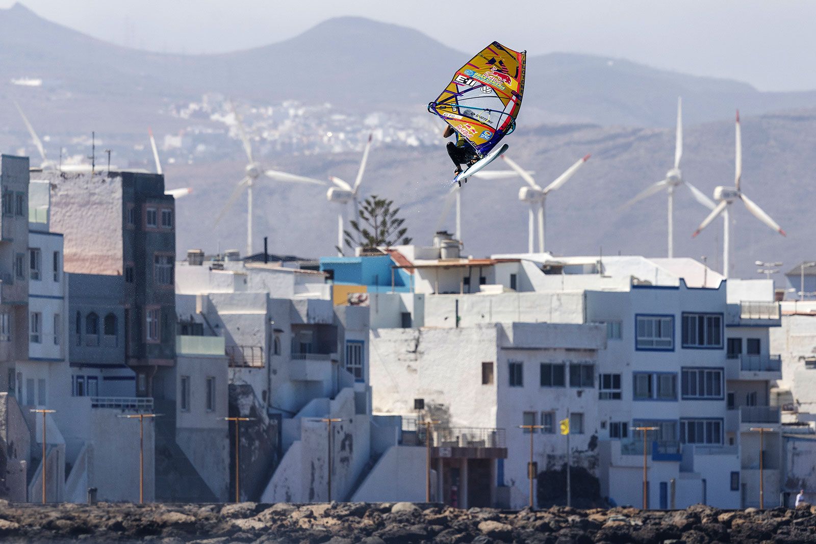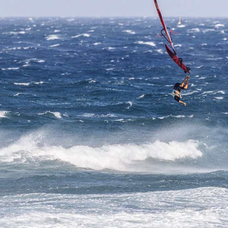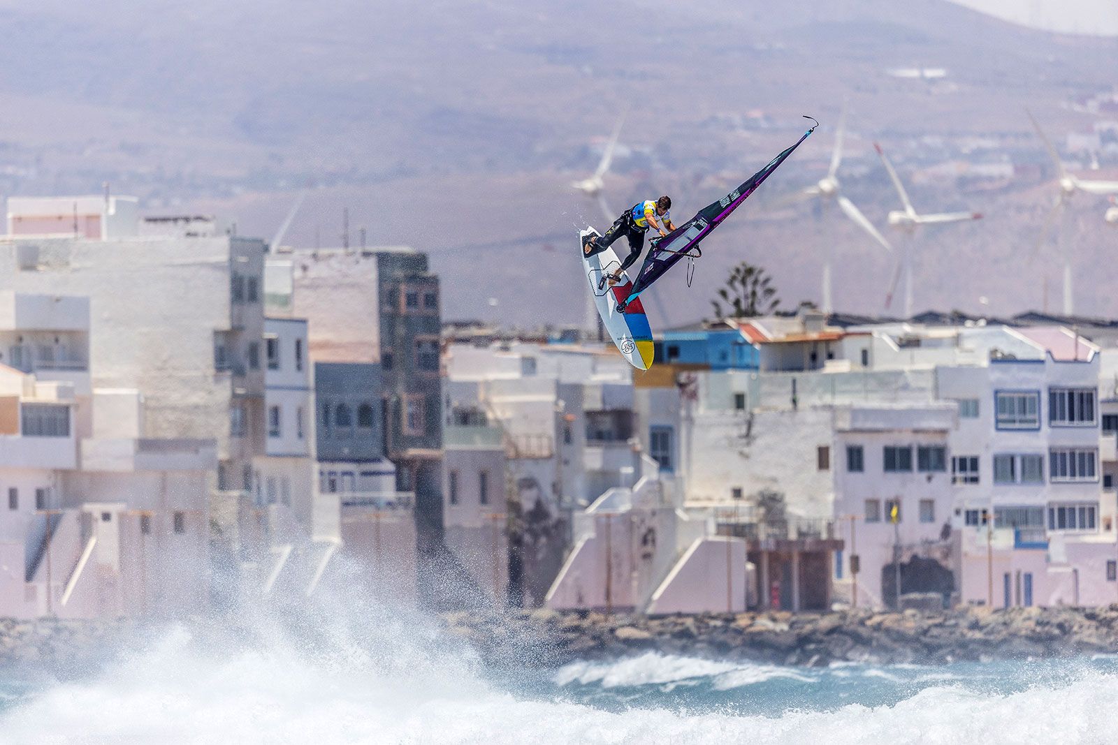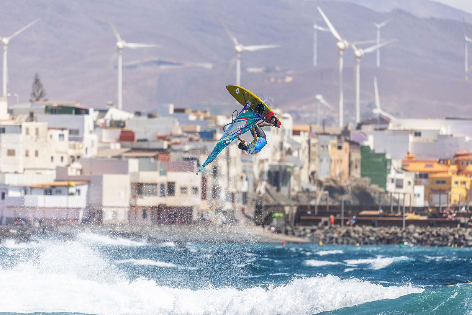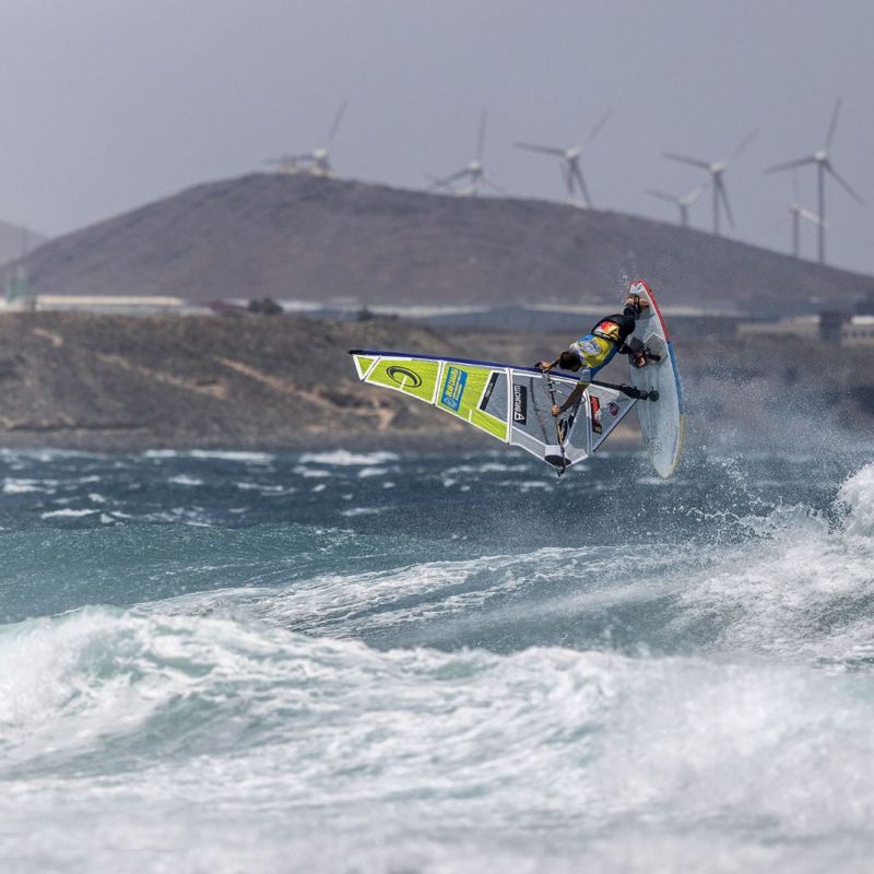 von Sven BlockDer zweite Tag beim Gran Canaria Gloria World Cup 2025 wurde zeitweise zur Überlebensaufgabe. Die noch windigeren Bedingungen als am Vortag forderten die Athleten aufs Äußerste. Zudem wehte der Wind stärker aus nördlicher Richtung, was der Wettkampfarena ein anderes Gesicht verlieh und saubere gelandete Sprünge mit hohen Wertungen nicht einfacher machte. Nach fast 10 Stunden intensiven Wettkampf konnte niemand Philip Köster daran hindern, den achten Sieg an seinem Homespot nach Hause zu bringen und seine Führung aus der Single Elimination zu verteidigen.