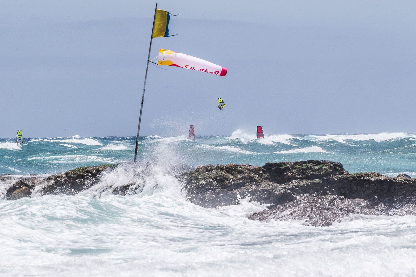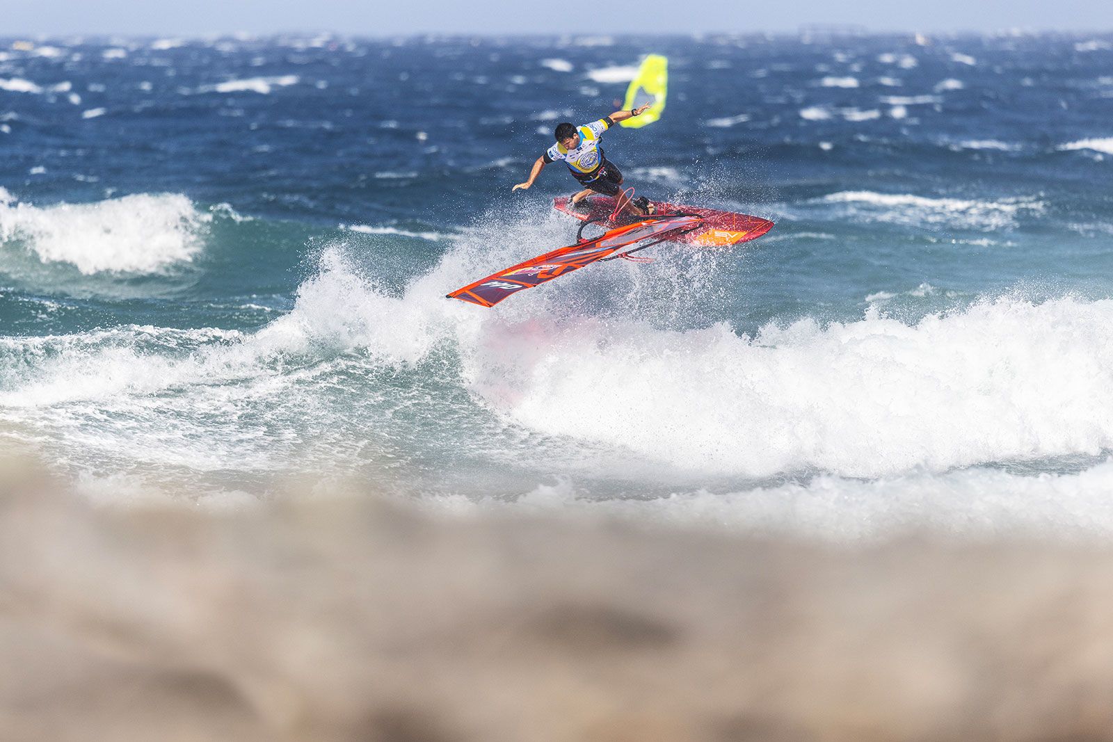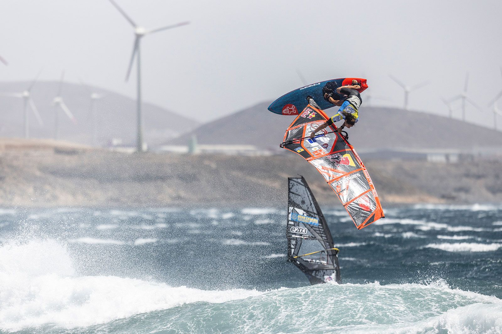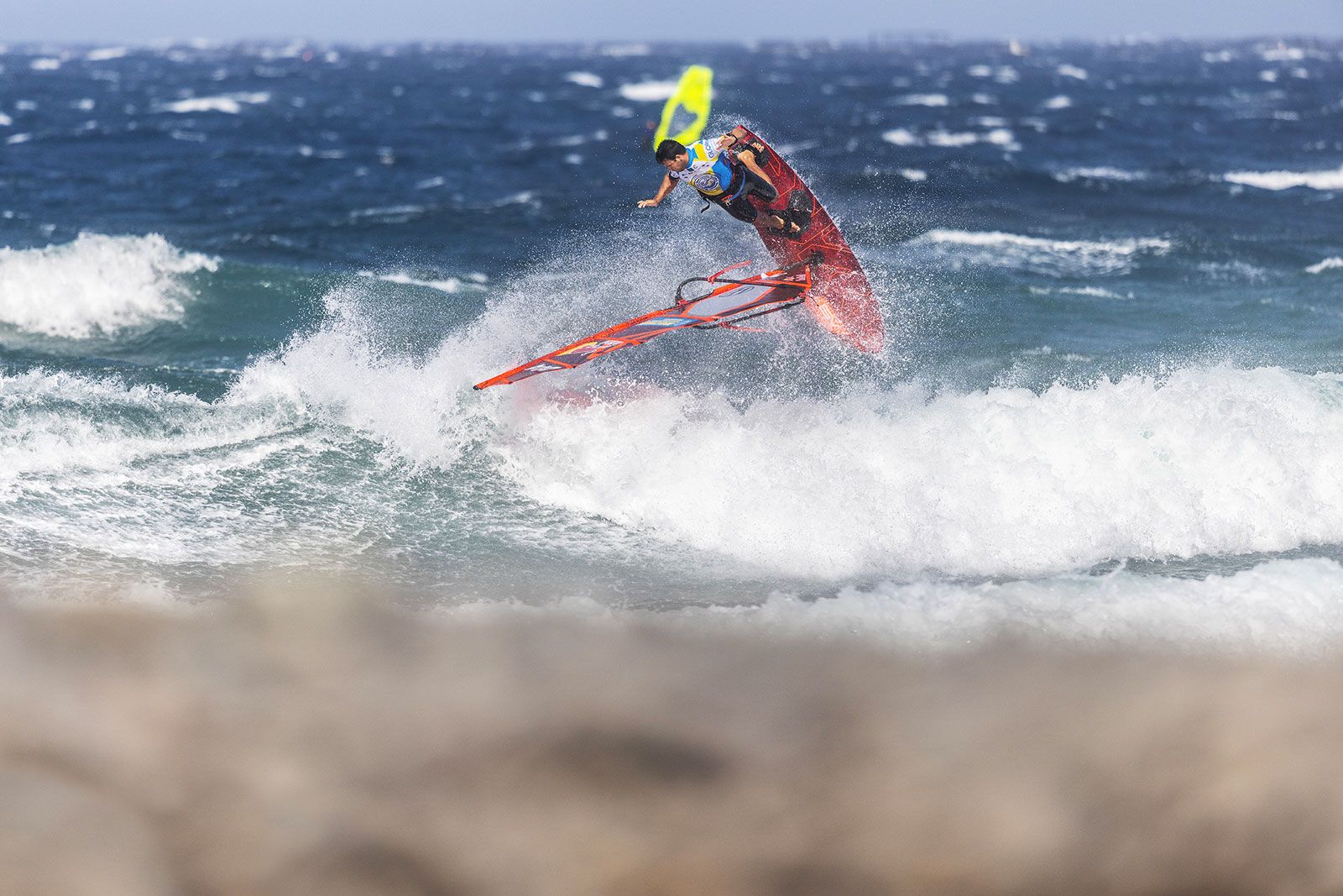 Im zweiten Semifinale lässt Marcilio Browne den vergleichsweise schwachen Heat aus dem Viertelfinale nicht auf sich sitzen. Auch er holt sich die perfekte 10 für ein Double Forward und legt noch einen Push Forward nach. Acht Minuten vor Heat-Ende hat er bereits 30,63 Punkte zusammen. Marino Gil Gherardi holte sich mit 6,25 und 6,12 Punkten hohe Wavescores, lag aber zu diesem Zeitpunkt gut 5 Punkt hinten. Dann eine massiver Stalled Forward des Titelverteidigers von Pozo im letzten Jahr und das Blatt ist plötzlich gewendet. Er liegt nun mit 31,59 Punkten vor Marcilio Browne, die PWA spricht im Liveticker von der höchsten Punktzahl des Tages und verliert bei Philip Kösters 31,73 Punkten im Heat zuvor bei soviel geballter Power auf dem Wasser sogar den Überblick. Mit einem perfekten Backloop of the Lip bringt sich Marcilio Browne noch bis auf 0,7 Punkte ran, aber Marino Gil Gherardi setzt sich durch, während Alessio Stillrich und Miguel Chapuis raus sind.