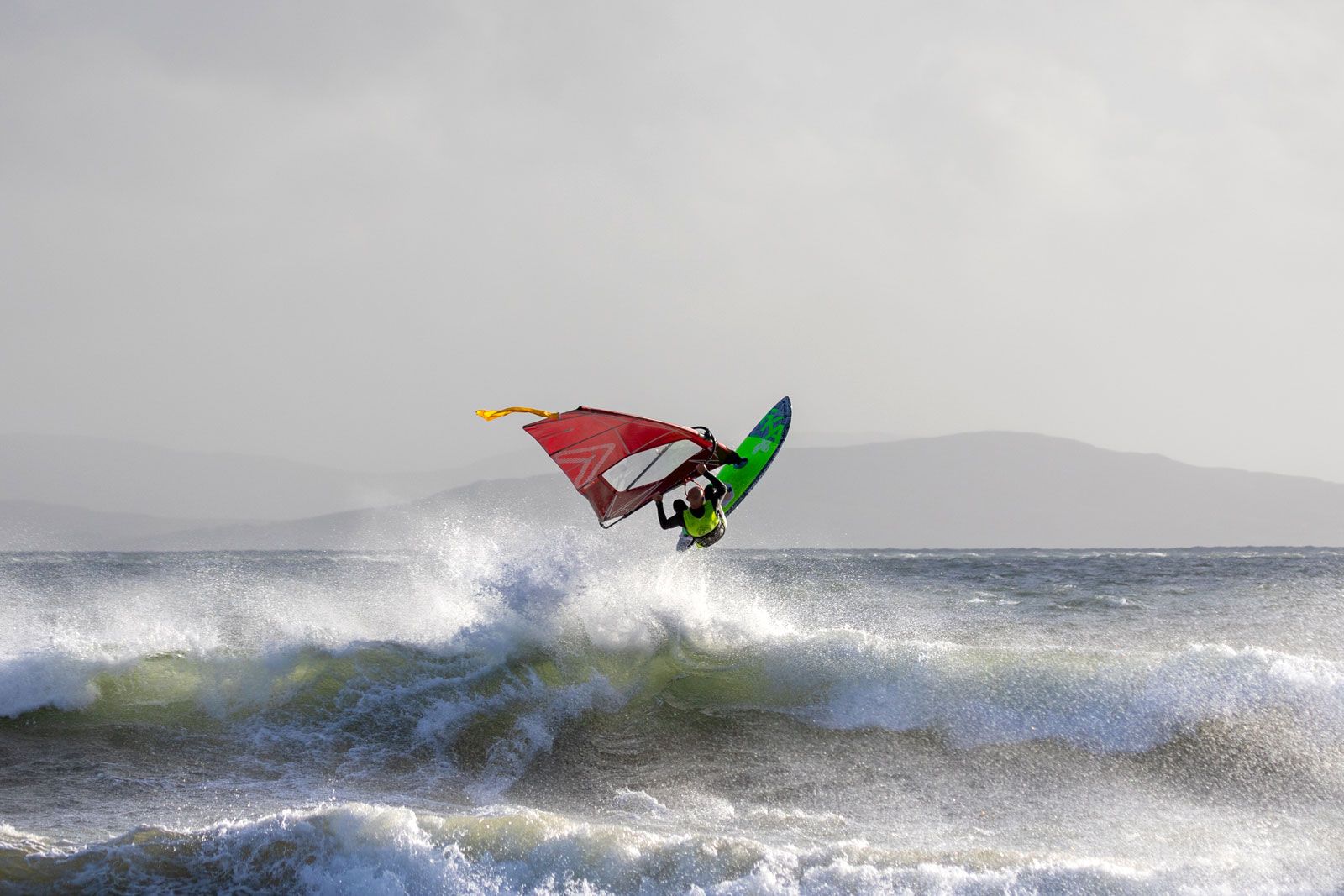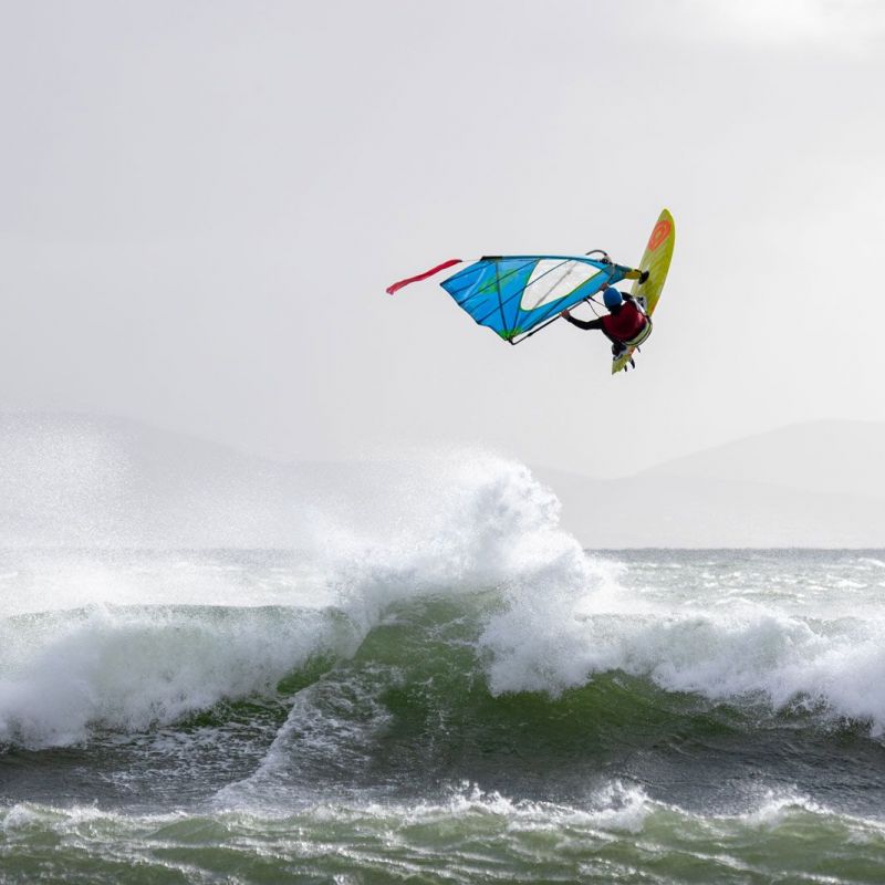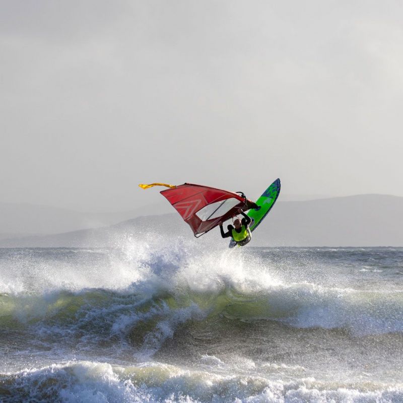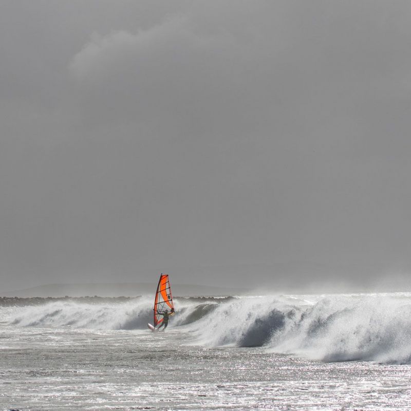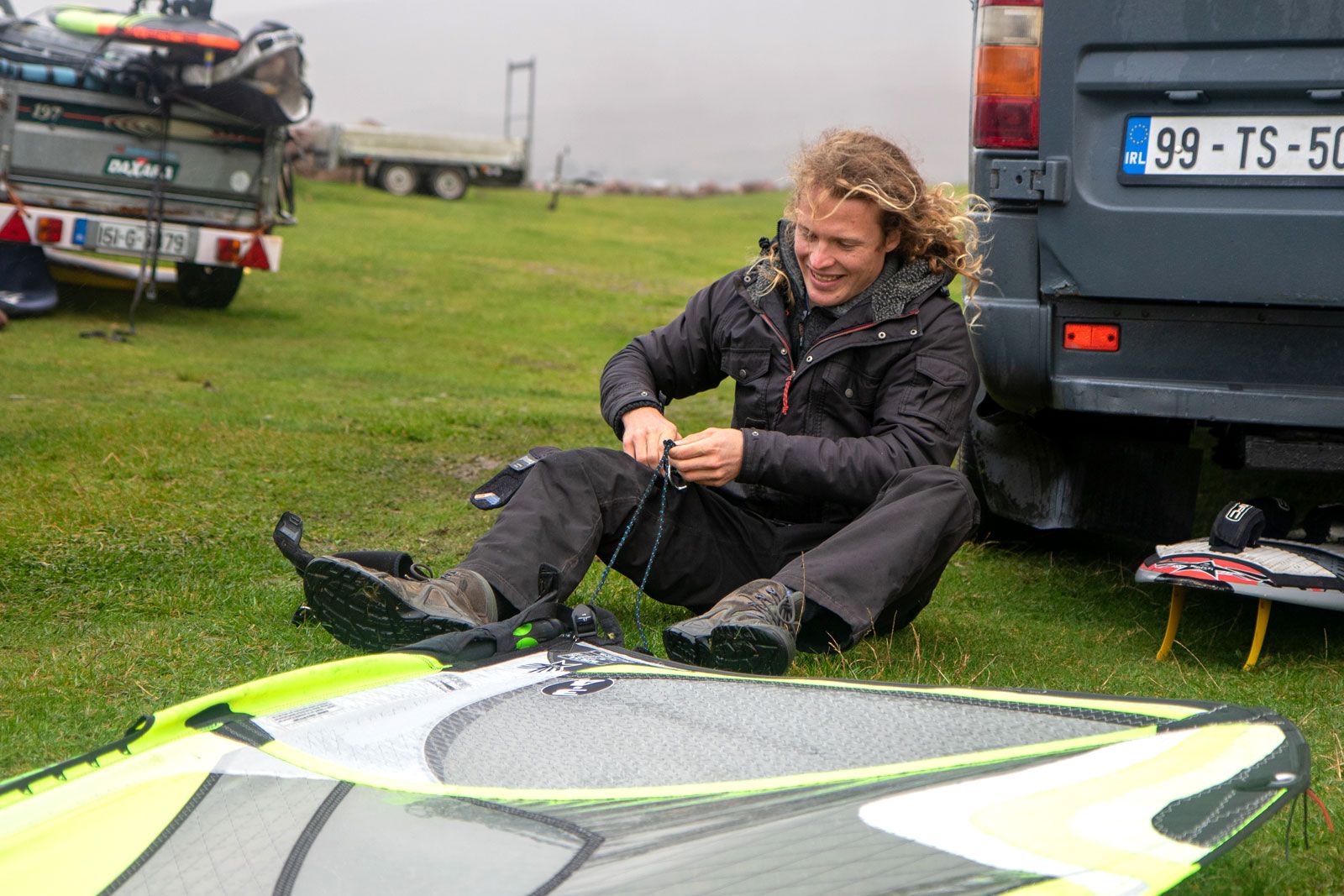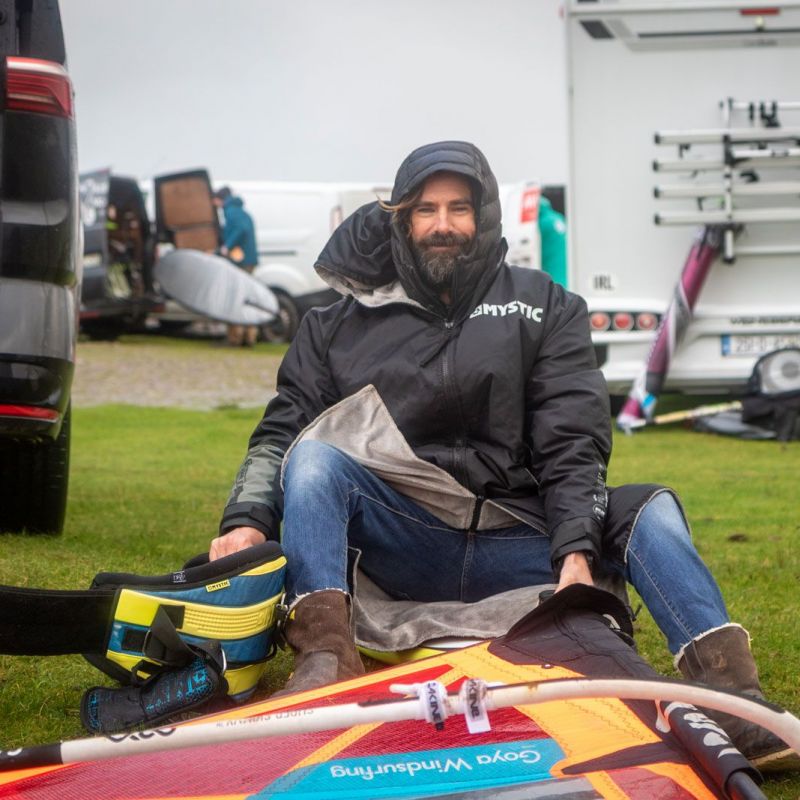 Die Entscheidung, den Event zu verschieben, zahlte sich aus. Sturm Amy fegte am Freitag mit Böen von über 80 Knoten übers Land - zu wild, um selbst die Mutigsten aufs Wasser zu bewegen. Doch am Abend erstrahlte Mulranny bei logohohen Wellen und „nur“ noch 50-Knoten-Wind. 30 Starter bereiteten sich bei einer stürmischen Aufwärmsession auf den Contest vor.