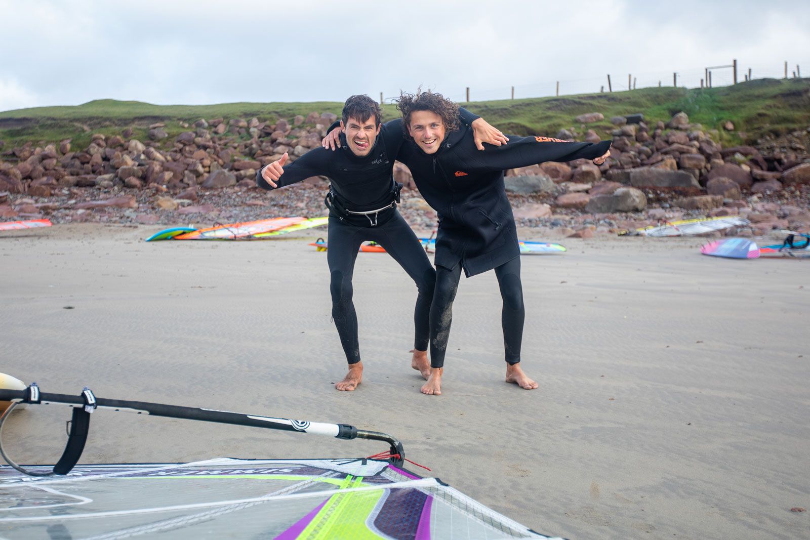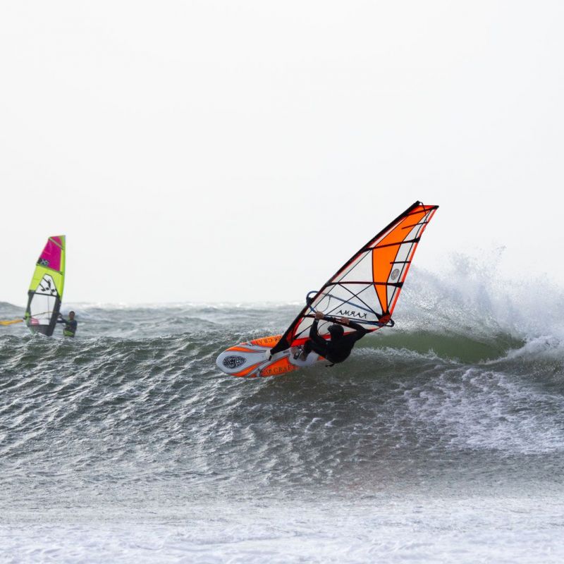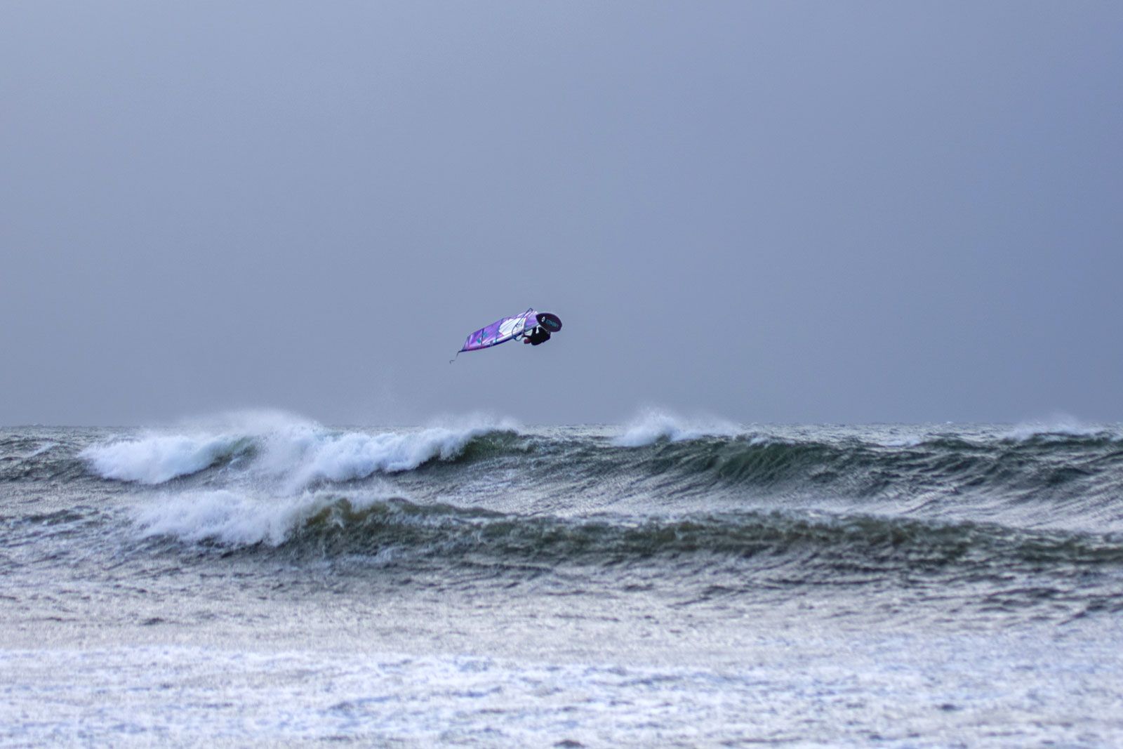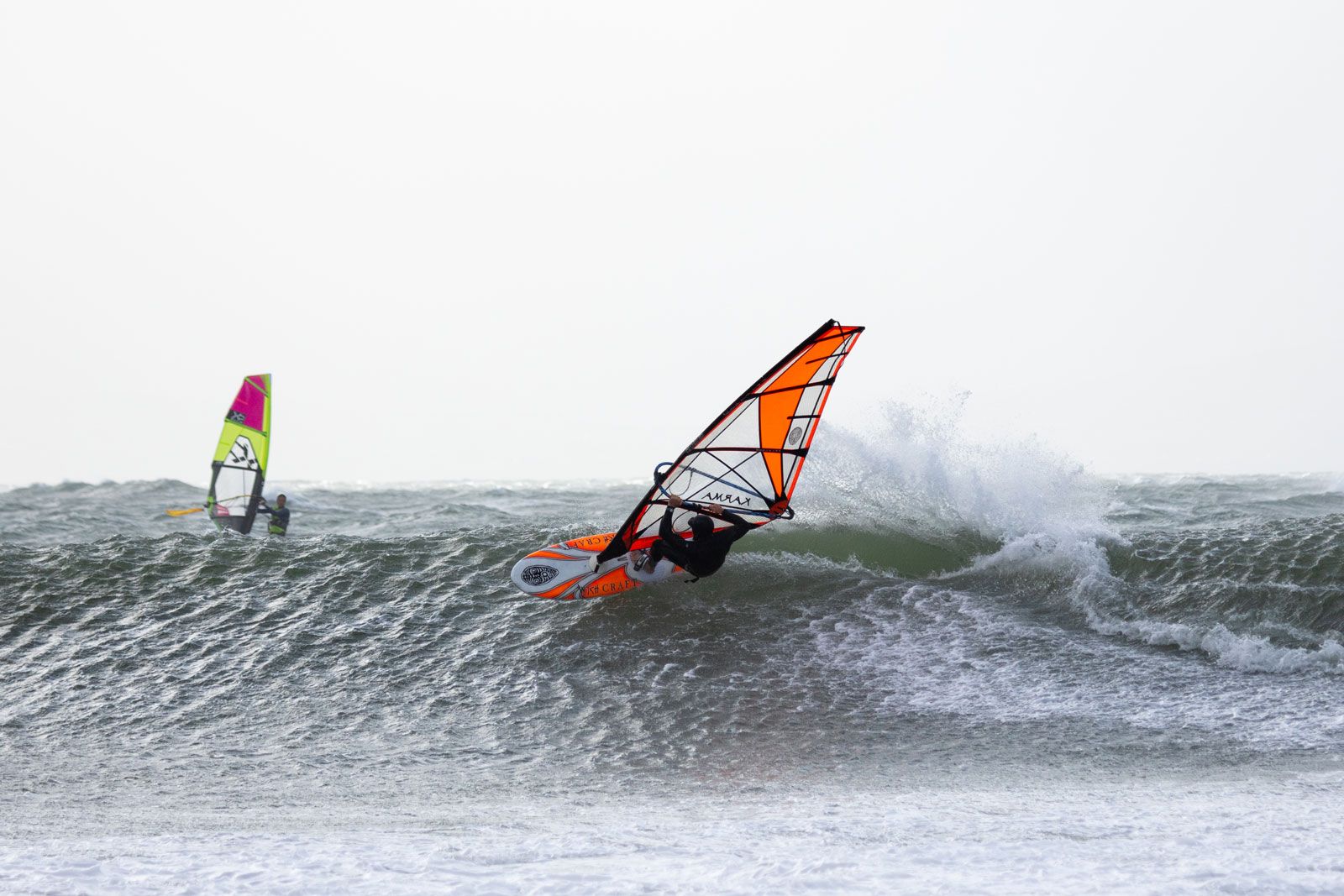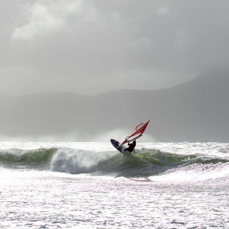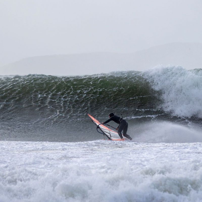 Die Entscheidung, den Event zu verschieben, zahlte sich aus. Sturm Amy fegte am Freitag mit Böen von über 80 Knoten übers Land - zu wild, um selbst die Mutigsten aufs Wasser zu bewegen. Doch am Abend erstrahlte Mulranny bei logohohen Wellen und „nur“ noch 50-Knoten-Wind. 30 Starter bereiteten sich bei einer stürmischen Aufwärmsession auf den Contest vor.