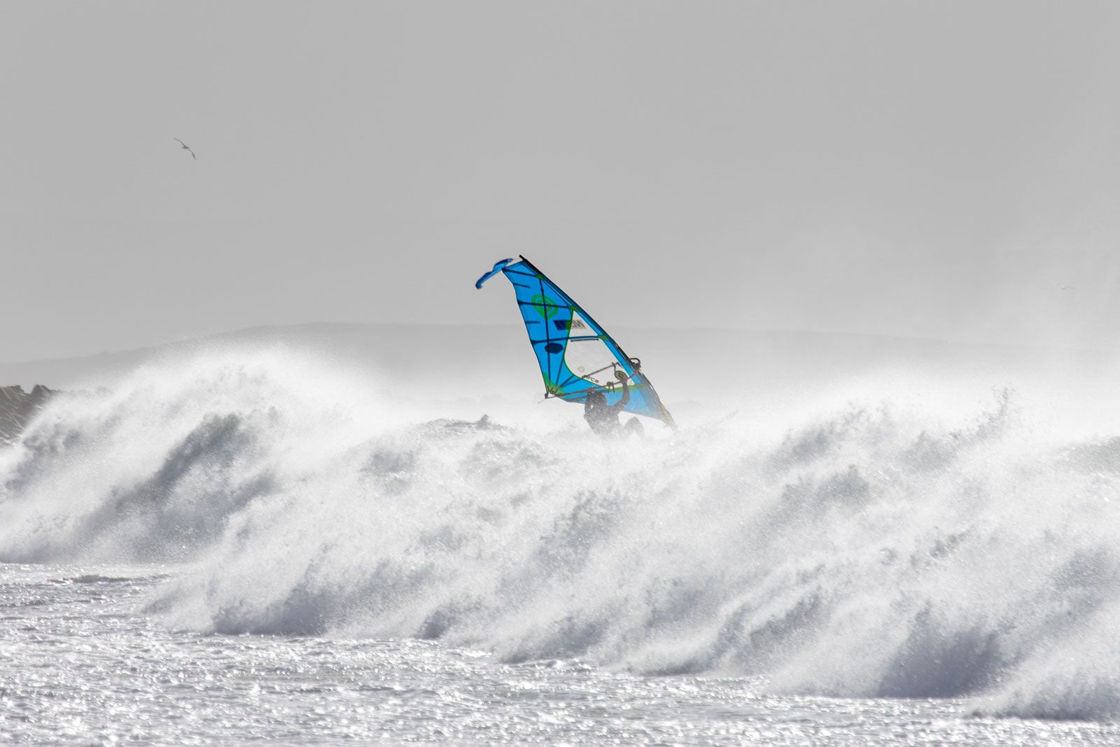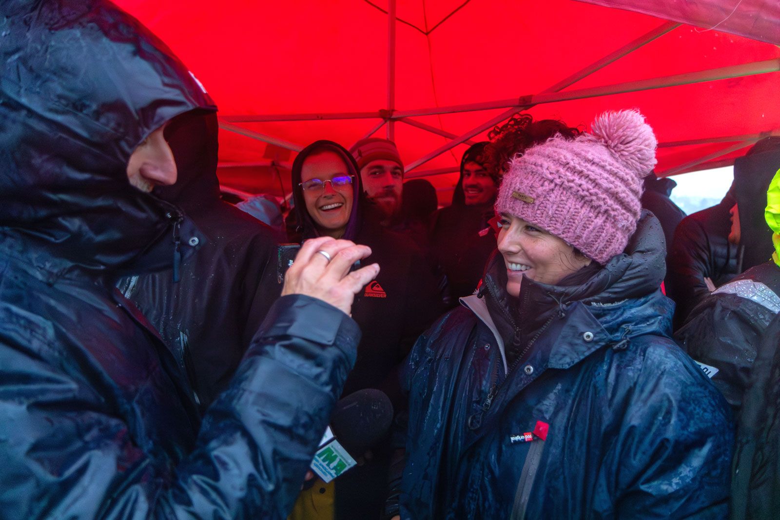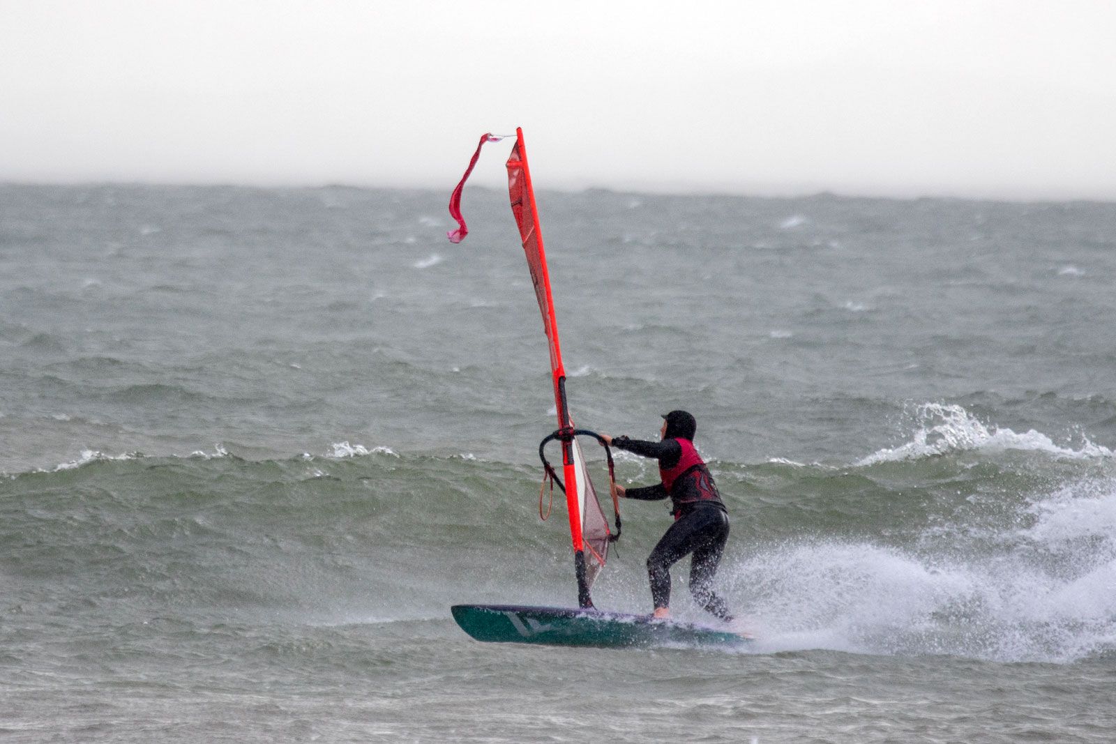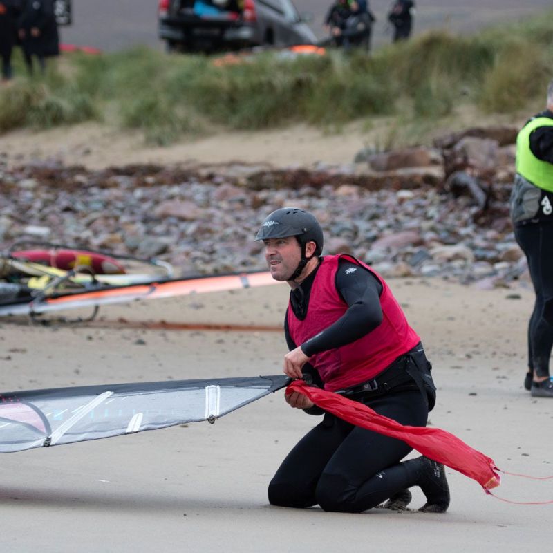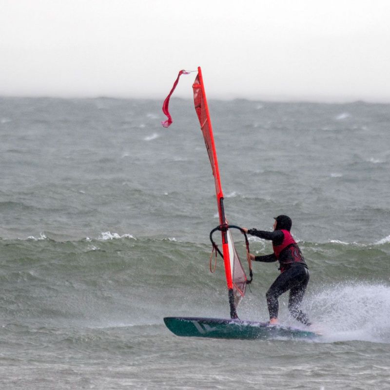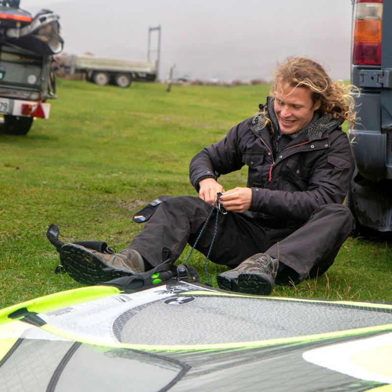 Die Entscheidung, den Event zu verschieben, zahlte sich aus. Sturm Amy fegte am Freitag mit Böen von über 80 Knoten übers Land - zu wild, um selbst die Mutigsten aufs Wasser zu bewegen. Doch am Abend erstrahlte Mulranny bei logohohen Wellen und „nur“ noch 50-Knoten-Wind. 30 Starter bereiteten sich bei einer stürmischen Aufwärmsession auf den Contest vor.