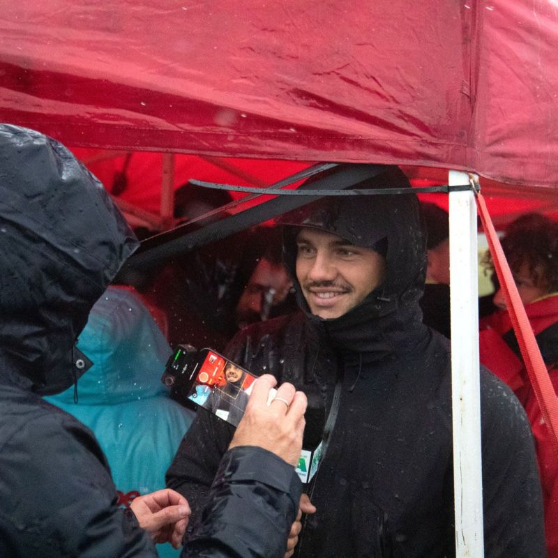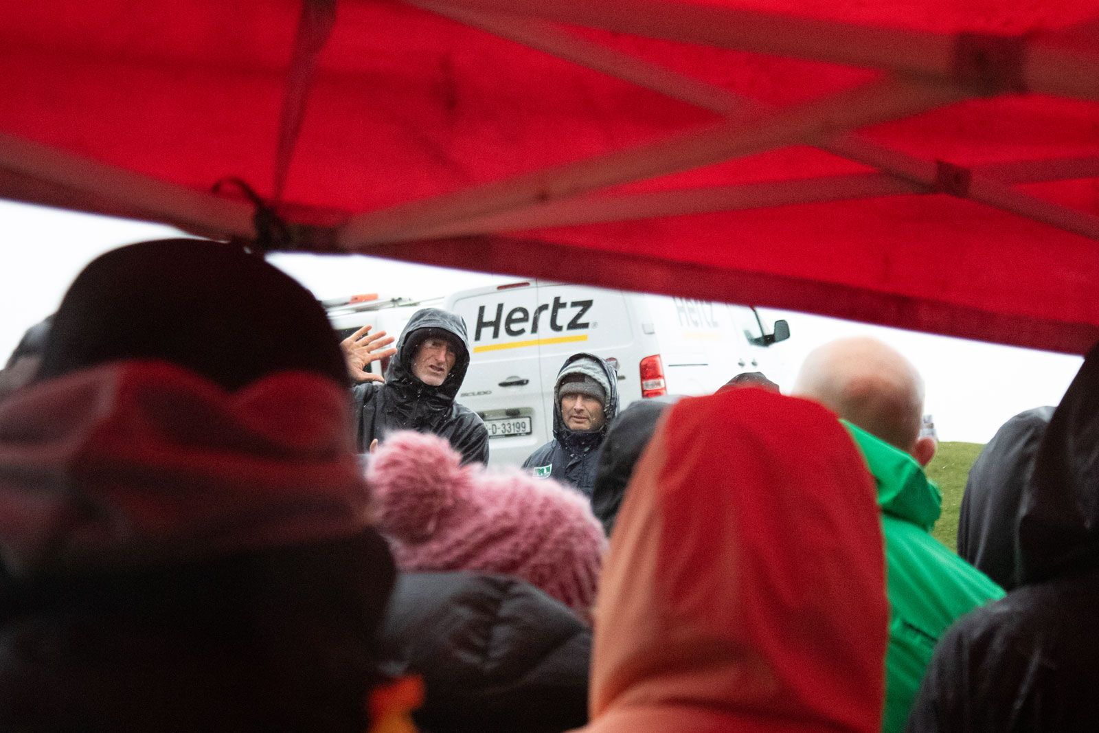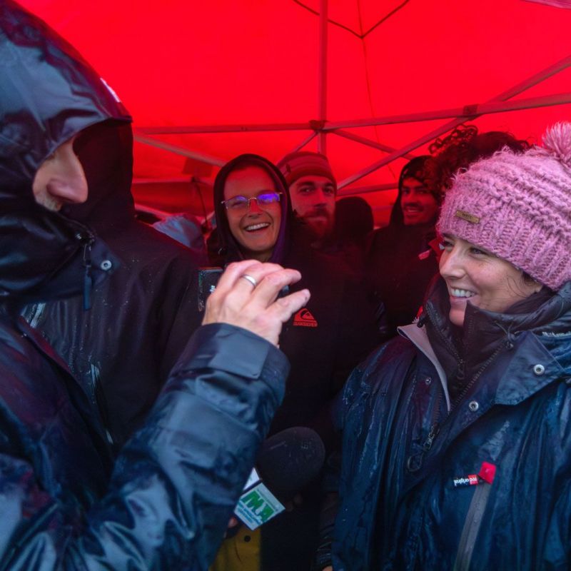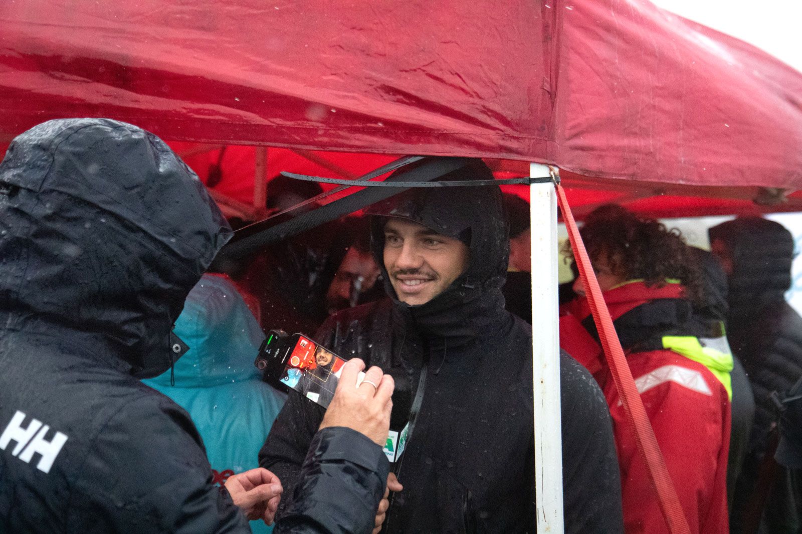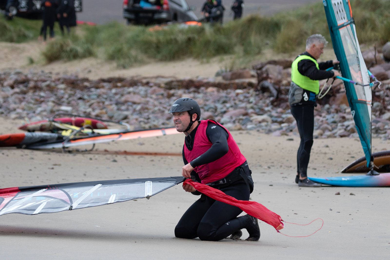 Die Entscheidung, den Event zu verschieben, zahlte sich aus. Sturm Amy fegte am Freitag mit Böen von über 80 Knoten übers Land - zu wild, um selbst die Mutigsten aufs Wasser zu bewegen. Doch am Abend erstrahlte Mulranny bei logohohen Wellen und „nur“ noch 50-Knoten-Wind. 30 Starter bereiteten sich bei einer stürmischen Aufwärmsession auf den Contest vor.