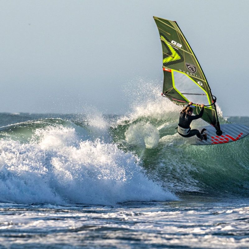 Julian Salmonn hatte man nach seiner Leistung im letzen Jahr in Chile ganz sicher auf dem Zettel. Gunsails Teamkollege Leon Jamaer hatte im letzten Jahr noch bemängelt, dass die Judges seine Präzision beim Waveriding nicht genügend gewürdigt und stattdessen die eher technischen Abschlüsse mit Goiter oder 360 der Konkurrenz zu hoch bewertet hätten. Davon war diesmal nichts zu spüren. Das exzellente Waveriding in Kombination mit hohen Aerials erwies sich als echter Hingucker. Bereits die ersten beiden Wellen summieren sich zu stattlichen 15,36 Punkten. Bernd Roediger versucht mit aller Kraft dagegen zu halten und erreicht am Ende sogar den dritthöchsten Score des Tages, aber Julian Salmonn präsentiert sich auch in diesem Jahr als einer der hohen Favoriten an diesem Spot.