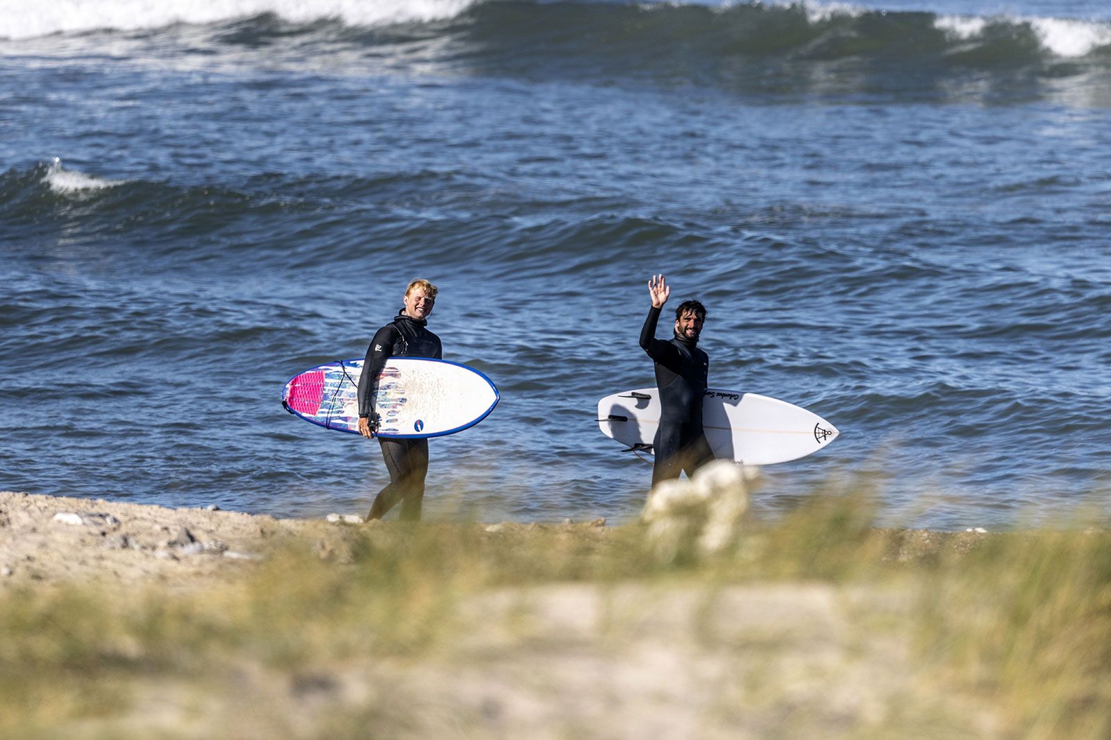 Die Hoffnungen liegen jetzt auf Donnerstag, der nicht nur Wellen verspricht, sondern möglicherweise auch günstigere Offshore-Wind bringen soll. Auch der Freitag sieht hoffnungsvoll aus und soll ähnliche Bedingungen bringen, wie sie für heute prognostiziert sind. Die jungen Athletinnen und Athleten fiebern bereits den Freitag entgegen. Johan Søe und Marc Paré bieten ein Trainingslager an, um ihr Wettkampfwissen mit dem Nachwuchs zu teilen.