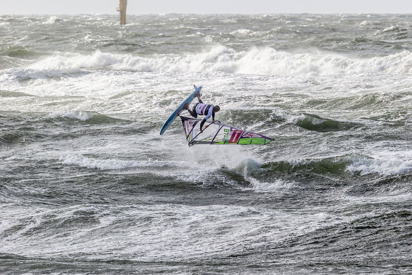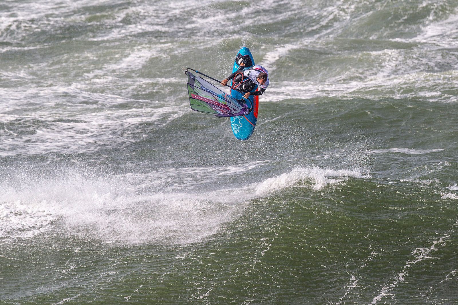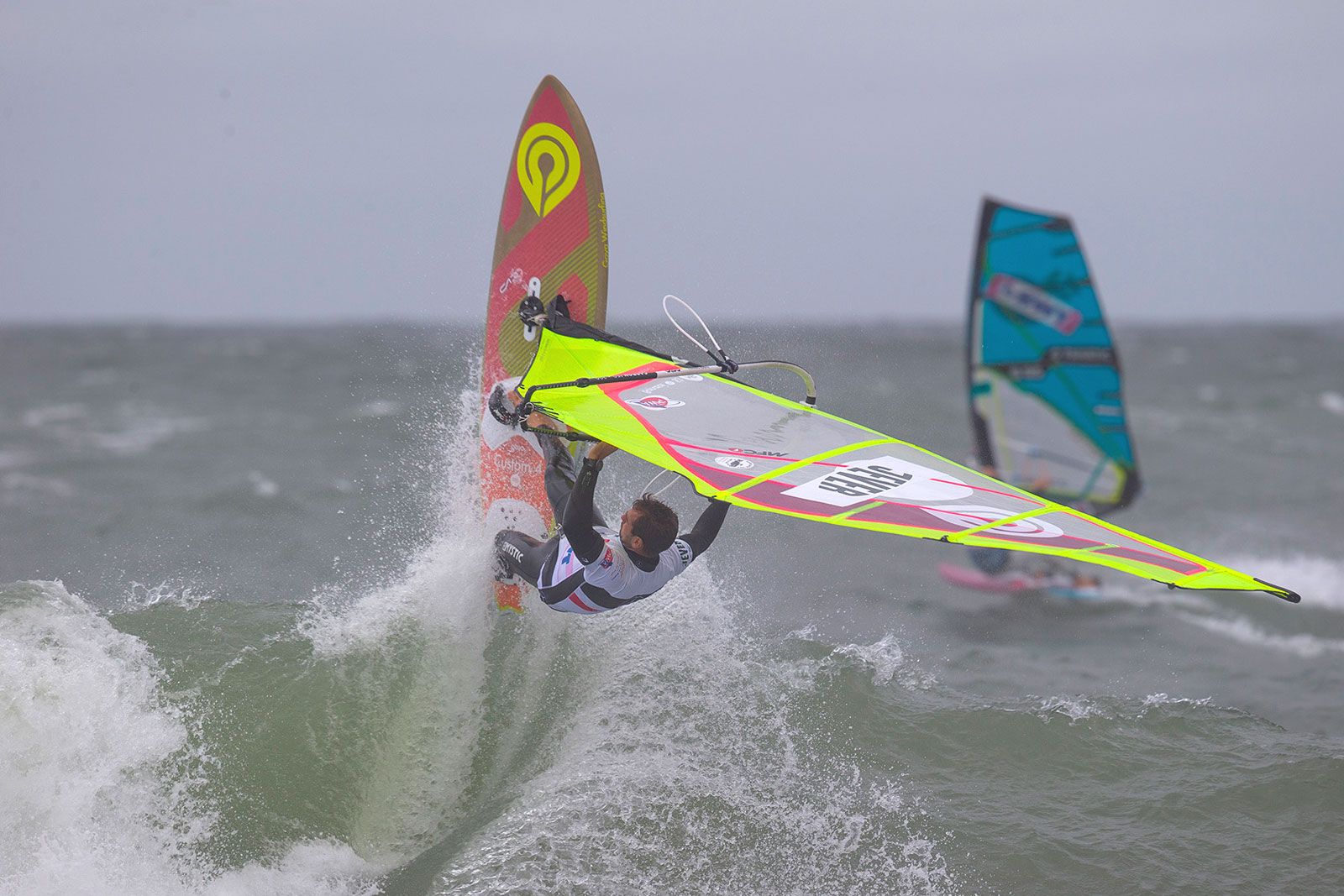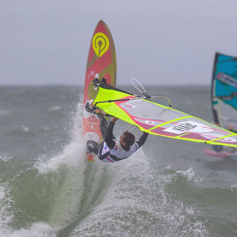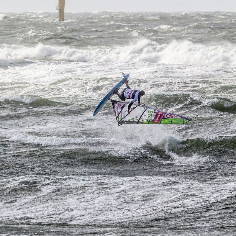 Amado und Steven schien ihre unverhoffte Gelegenheit auf den Titel zu beflügeln, sie waren beide souverän im Feld unterwegs, Amado beispielsweise landete mit 25.2 Punkten den höchsten jemals gewerteten Double Air Culo. Wenn auch tricky, so blieb doch der Sylter Wind die große Konstante, der weiterhin für reichlich Action sorgte. Letztlich kam es, wie jeder Dramaturg es geschrieben hätte: im Finale der Single standen sich Amado und Steven gegenüber. Doch Spannung gab es in diesem Duell wenig, denn Amado baute mit seinem Shifty Shaka und dem Air Kabikuchi einen großen Vorsprung auf, den van Broeckhoven nicht mehr aufholen konnte. Somit ist jetzt Amado in der Pole-Position für den Titel, den er sich mit einem Sieg in der Double holen kann, falls Youp und Yentel nicht besser als Platz 6 abschneiden. Dramatik ist also für die Double garantiert! Hoffentlich ist es dann Mittwoch bei gutem Wind soweit und in Westerland werden die ersten Weltmeister gekürt.