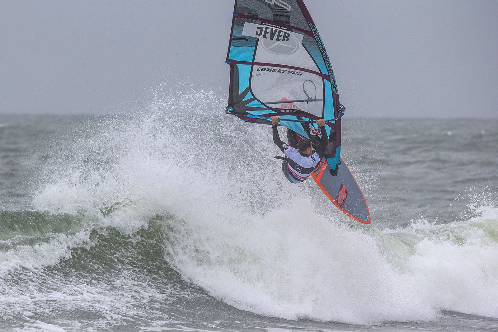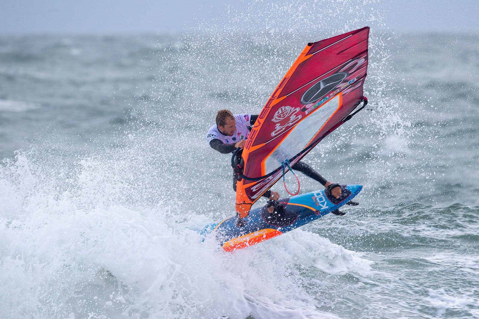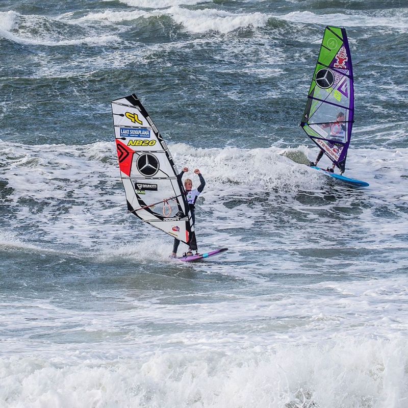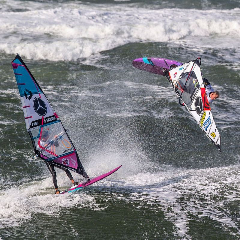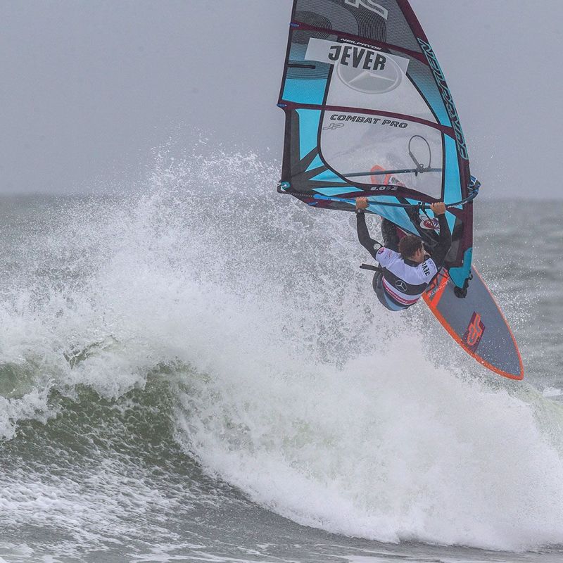 von Ingo MeyerDer vierte Tag des Mercedes-Benz Windsurf World Cup auf Sylt 2019 war ein Fall für Frühaufsteher: bereits um 8 Uhr morgens wurden die Männer in die Wellen geschickt, um die Single Elimination zu Ende zu fahren. Wie erwartet gab es dafür einen amtlichen Sturm, bei Böen von fast 40 kn konnte Philip Köster mit seinem Double Fowards Jaeger Stone eliminieren und bis ins Finale der Single fahren. Dort bekam er es mit Thomas Traversa zu tun, der Victor Fernández aus dem Weg geräumt hatte. Es war also das legitime Finale des besten Springers Köster gegen den Magier in Welle aus Frankreich. Und das tatsächlich mit dem besseren Ende für Traversa: denn der Franzose konnte schnell zwei exzellente Wellen mit 15 Punkten finden, auf denen er seine Cutbacks wie die Butter auf dem Croissant unterbrachte. Das konnte er noch mit einem soliden Backloop abrunden, sodass Köster dem wenig entgegenzusetzen hatte. Das Losers Final gewann Victor Fernández gegen Antoine Martin, sodass weitere Titelspannung zwischen Fernández und Köster für die Double vorprogrammiert schien.