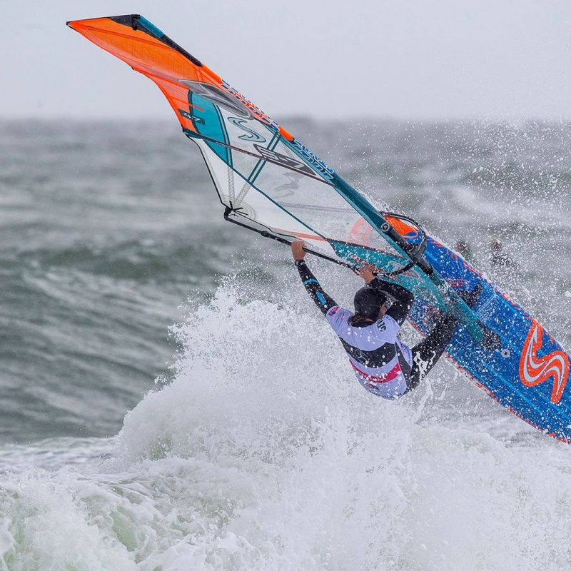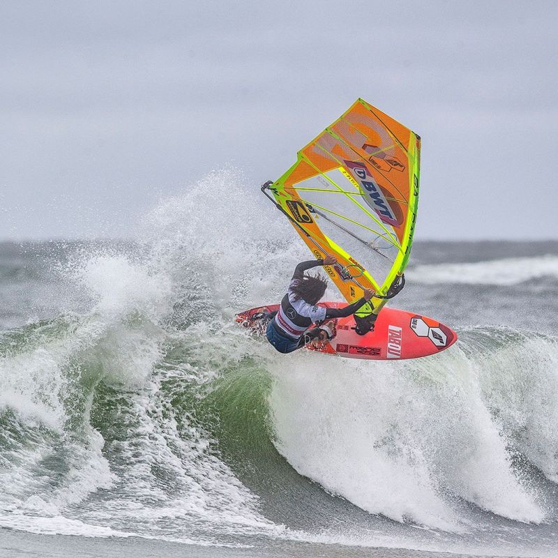 An einem endlosen Contesttag waren als nächstes die Wave-Damen an der Reihe: Iballa Ruano Moreno hatte nach ihrer misslungenen Performance gegen Maaike Huvermann in der Single einiges aufzuholen, schließlich will die Spanierin traditionell ein Wort bei der Titelvergabe mitreden. Erst schlug Iballa Alexia Kiefer Quintana, die jüngste Teilnehmerin scheiterte am heftigen Shorebreak, dann waren Hunter und Wahl den zuverlässigen Frontloops von Iballa nicht gewachsen. Steffi Wahl landete damit auf einem guten sechsten Platz, mit dem sie besonders bei den schwierigen Bedingungen sehr zufrieden sein kann. Iballa hatte dann gegen Maaike Huvermann die große Chance auf eine Revanche, doch die Rechnung hatte sie ohne die Niederländerin gemacht: in einem knappen Duell konnte Maaike in letzter Sekunde noch einen Turn in der Welle für sage und schreibe 1.5 Punkte unterbringen, die ihr zum Weiterkommen reichten. Das beflügelte die PWA-Co-Kommentatorin offenbar, denn auch Lina Erpenstein und Justyna Sniady konnten Maaike nicht stoppen, auf deren Frontloop weiterhin Verlass war. Gegen Lina kam zudem ihr bislang erst zweiter gestandener Backloop dazu, sodass die Kielerin sich mit Platz 4 begnügen muss, nichtsdestotrotz ein gutes Resultat. Im Finale der Damen allerdings war auch Huvermann chancenlos, denn eine ausgeruhte Sarah-Quita schlägt momentan niemand. SQO war vor allem mit zwei soliden Down-the-Line-Wellenritten enteilt und konnte dem Triumph einigermaßen entspannt entgegensegeln. Sie übernimmt damit Platz 1 in der Weltrangliste vor dem letzten Stopp auf Maui und hat beste Chancen, in 2019 endlich den ersten Wave-Titel mit nach Aruba zu nehmen.