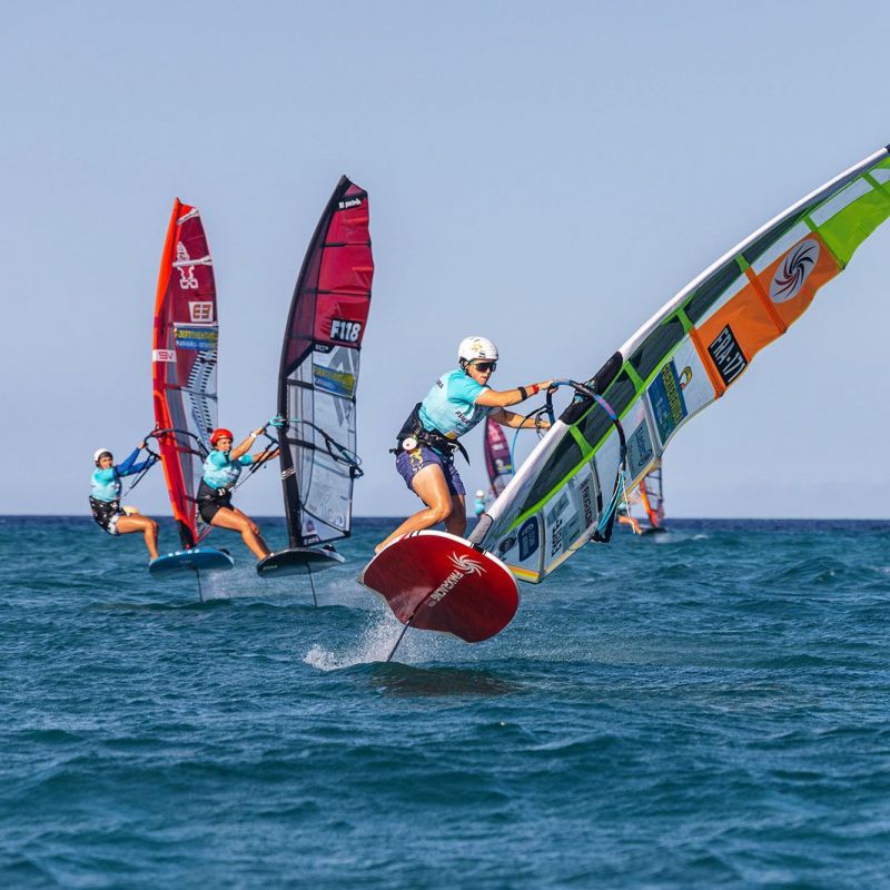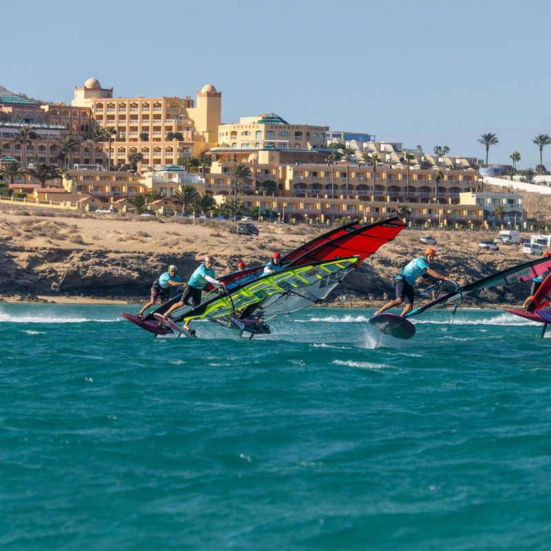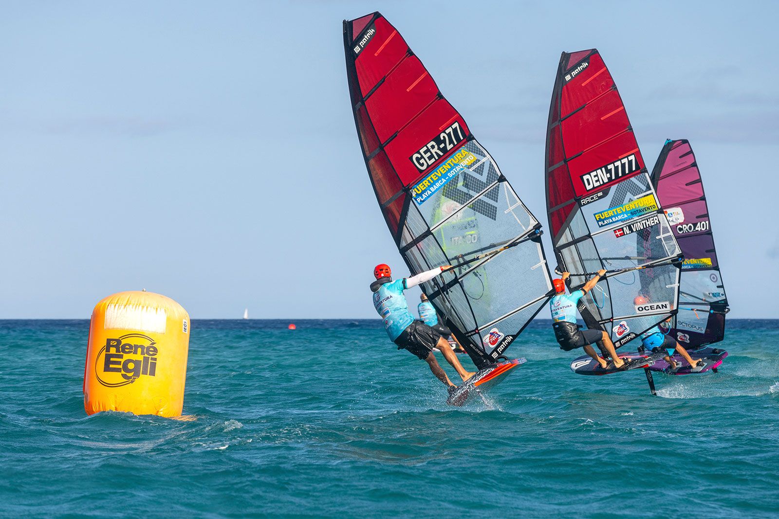 Traumstart für Marion Mortefon im Foil-Slalom beim PWA World Cup Fuerteventura 2024. Nach vier Rennen liegt sie mit Idealpunktzahl vor Justine Lemeteyer und Blanca Alabau. Bei den Herren führt Daniele Benedetti die Wertung nach zwei Eliminations an.