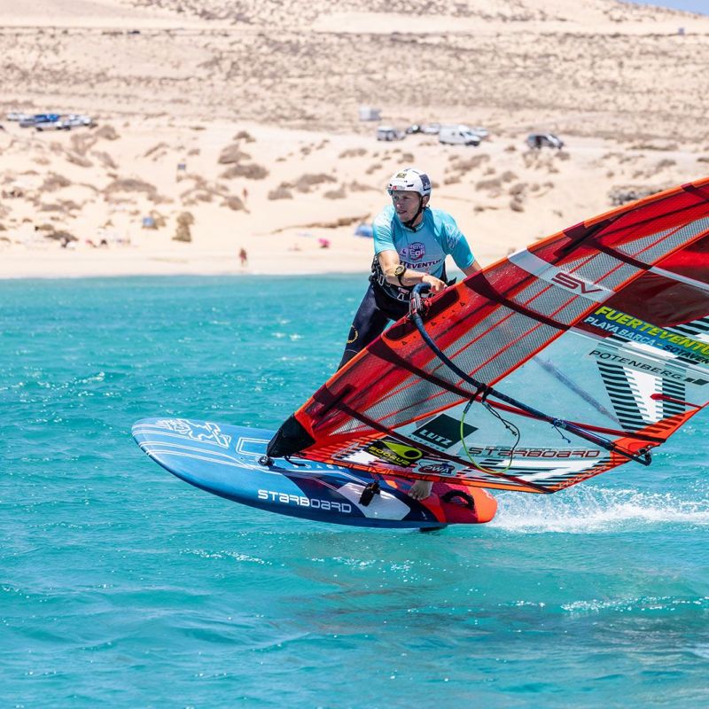 von Sven BlockDer sechste Tag des Fuerteventura PWA World Cup 2024 erwies sich als Geduldspiel. Der Wind ließ kurz vor dem ursprünglich geplanten Start am Mittag nach, was zu einer Verzögerung von mehreren Stunden führte. Nach Abschluss des ersten Rennen bei den Herren bei etwa 8 bis 15 Knoten und der ersten Elimination bei den Damen ließ der Wind dann wieder nach und es sah so aus, als wäre es das bereits für den Tag gewesen. Aber am frühen Abend frischte der Wind wieder auf und sorgte mit etwa 20 Knoten für die bislang besten Rennbedingungen des Tages. Am Ende des Eröffnungstags im Foil-Slalom führen Marion Mortefon und Daniele Benedetti die Event-Rangliste an.