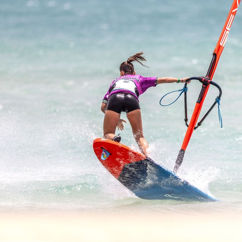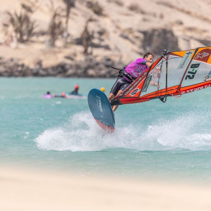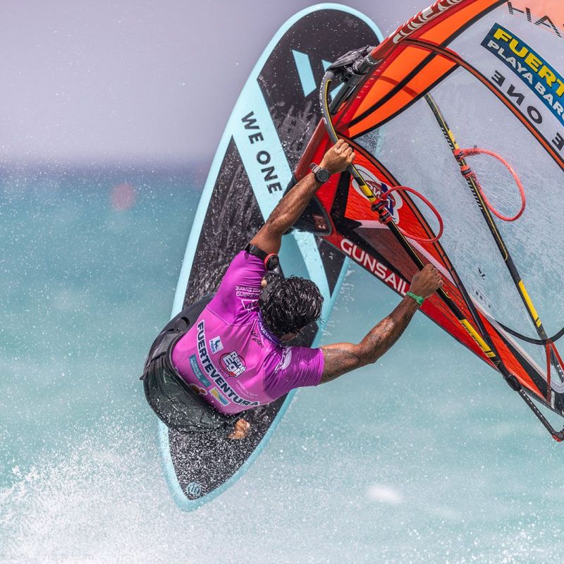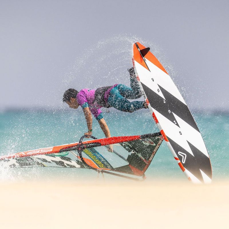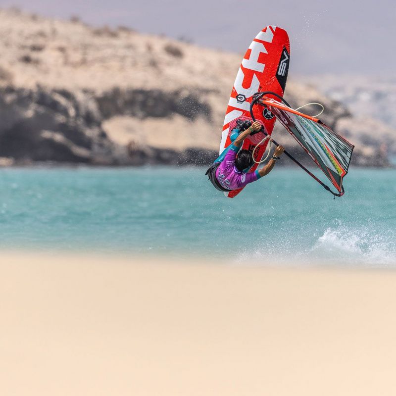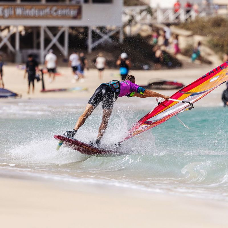 von Sven BlockGleich am ersten Tag ging es beim Worldcup auf Fuerteventura ans Eingemachte. Zwar baute sich mit der Sideshore-Richtung keine richtige Dünung auf, aber der starke verlässliche Wind machte die ersten Entscheidungen spannend und sehenswert. Im deutlich kleineren Teilnehmerfeld der Damen konnte die gesamte Hinrunde, bei den Herren die erste Runde ausgefahren werden, wobei die Topgesetzten den Einstieg in den Wettbewerb ohne nennenswerte Blessuren überstanden haben.