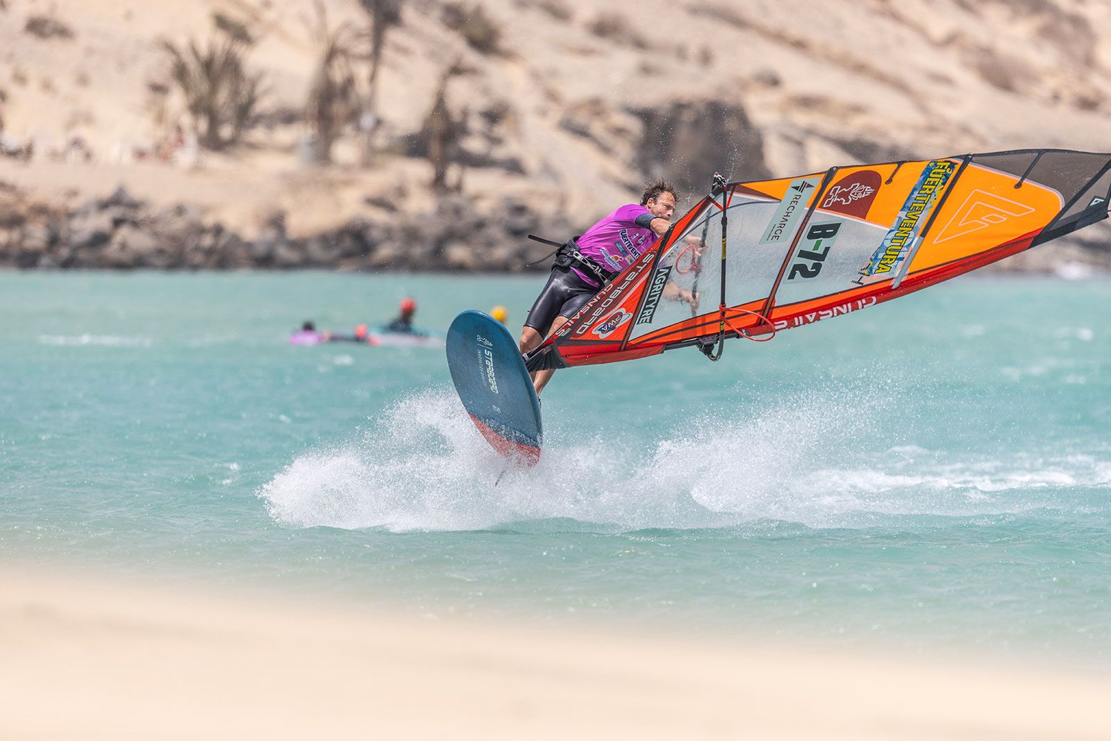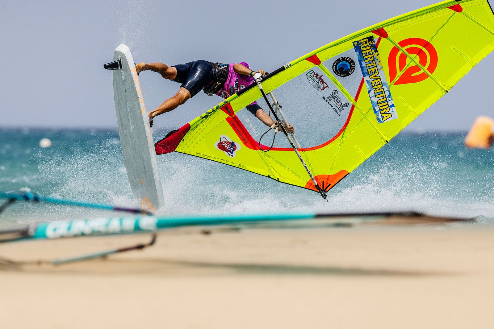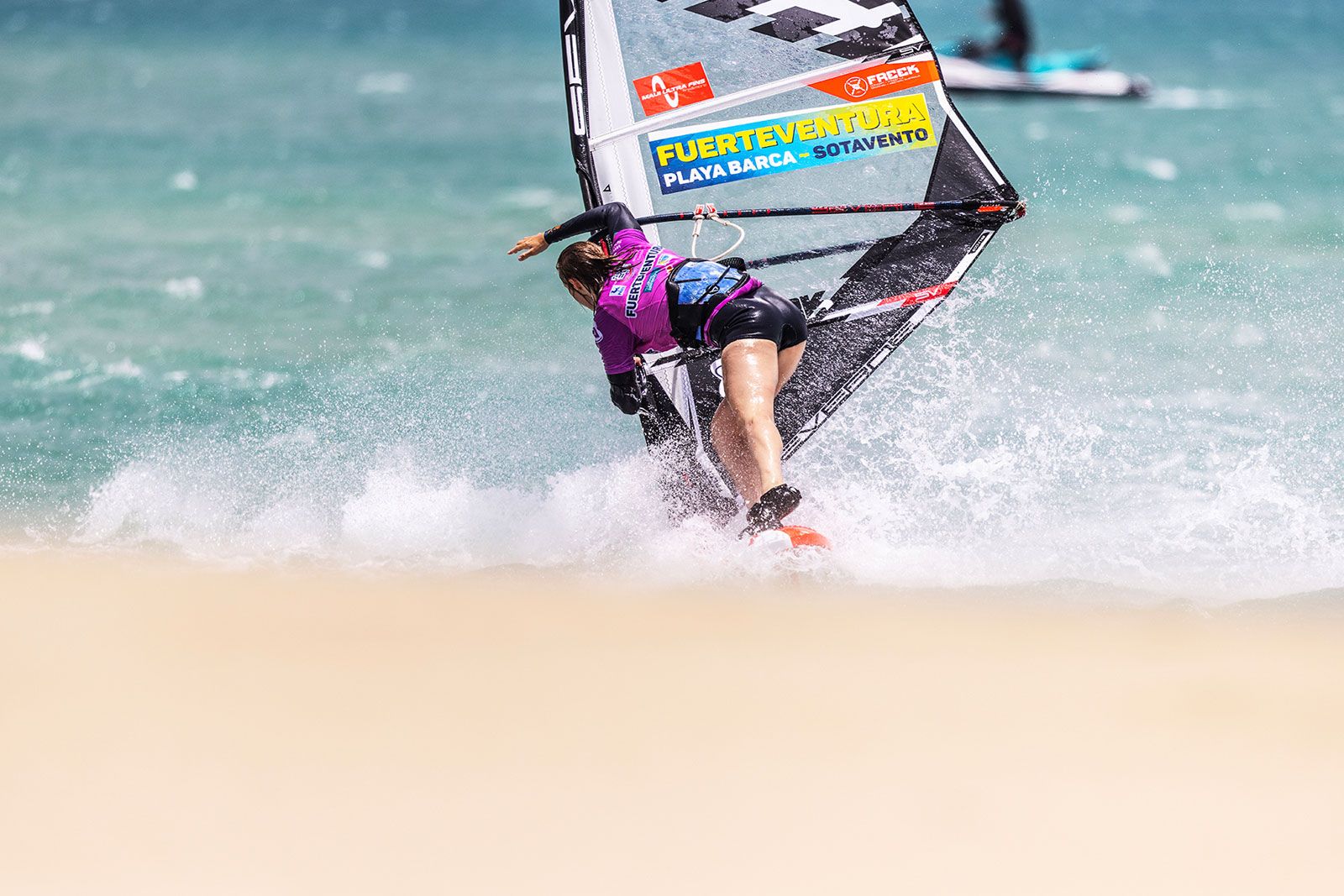 von Sven BlockGleich am ersten Tag ging es beim Worldcup auf Fuerteventura ans Eingemachte. Zwar baute sich mit der Sideshore-Richtung keine richtige Dünung auf, aber der starke verlässliche Wind machte die ersten Entscheidungen spannend und sehenswert. Im deutlich kleineren Teilnehmerfeld der Damen konnte die gesamte Hinrunde, bei den Herren die erste Runde ausgefahren werden, wobei die Topgesetzten den Einstieg in den Wettbewerb ohne nennenswerte Blessuren überstanden haben.