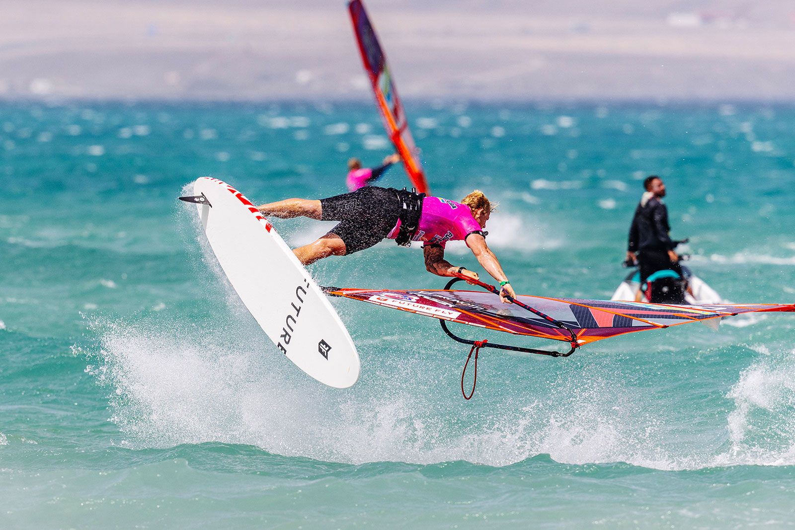 Weitere Konkurrenten sind der Weltmeister von 2022, Maciek Rutkowski, und Pierre Mortefon, der zu Beginn des Jahres zu Phantom wechselte, einem speziell auf Foiling spezialisierten französischen Hersteller. Sie beendeten das Jahr 2023 auf den Plätzen drei und vier und sind natürlich ebenfalls heiße Anwärter auf den Event-Titel.