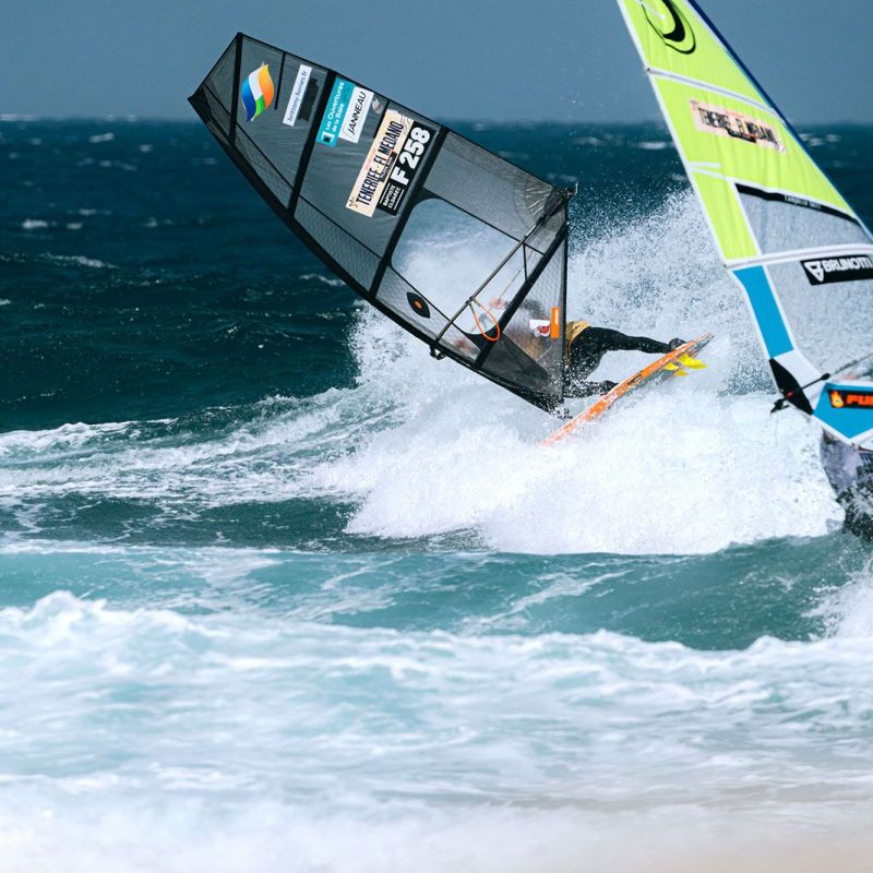 Dieter van der Eyken erzielte gestern in Heat 40 den höchsten Score des Tages. Er kombinierte einen unglaublichen Eröffnungsturn mit einem gelungenen Frontside 360, was den Belgier im Anschluss ordentlich auf Touren brachte. Er zeigte sich bereits in der Single Elimination hochmotiviert und bewies auch gestern sein immenses Talent im Waveriding, als er erfolgreich von Heat 40 in die fünfte Runde der Double einzog. Moritz Mauch kam ebenfalls in Heat 40 weiter obwohl er sich mit dem größeren Material nicht ganz so dynamisch fühlte und beendete zusammen mit Dieter van der Eyken das Weiterkommen von Arthur Arutkin und Jules Denel.