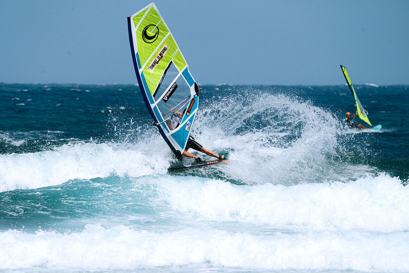 von Sven BlockDer achte Tag des Playa Surf CBbC Hotel Tenerife El Médano Windsurf Grand Slam erwies sich als der bisher intensivste Tag des Wettbewerbs, nach fast 10 Stunden intensivem Wettkampf stehen die Ergebnisse der Eröffnungsrunde bei den U21, U18 und U15 sowie die ersten Resultat der Double Elimination bei den Pro-Damen und -Herren. Logohohe Sets bereiteten die perfekte Bühne für die weltbesten Athletinnen und Athleten, um ihr Können erneut unter Beweis zu stellen.