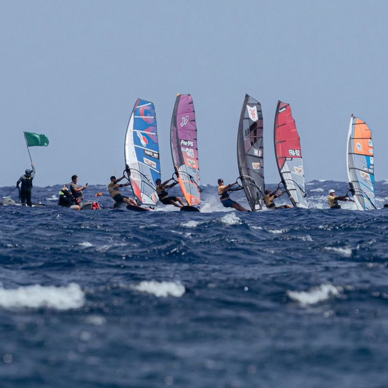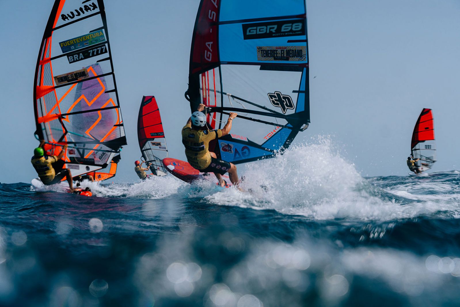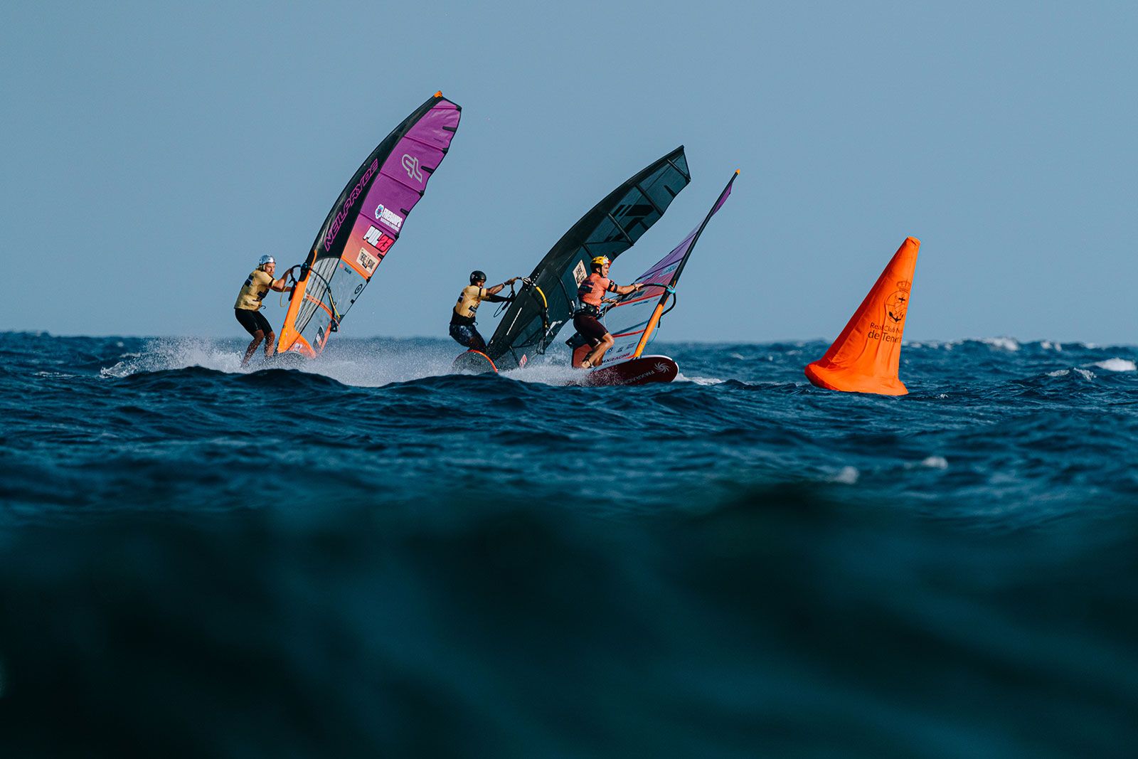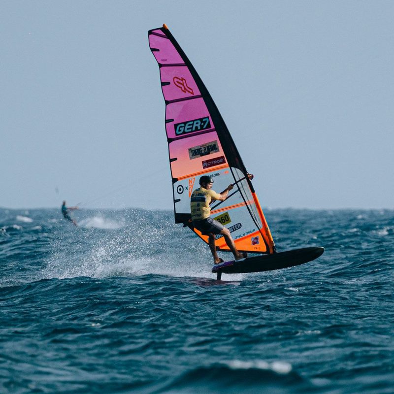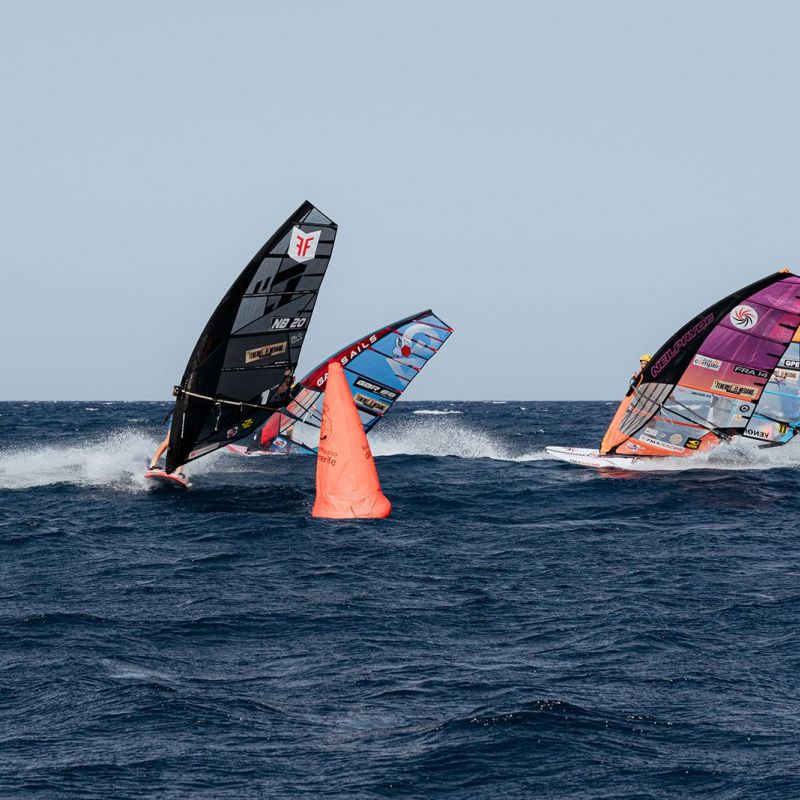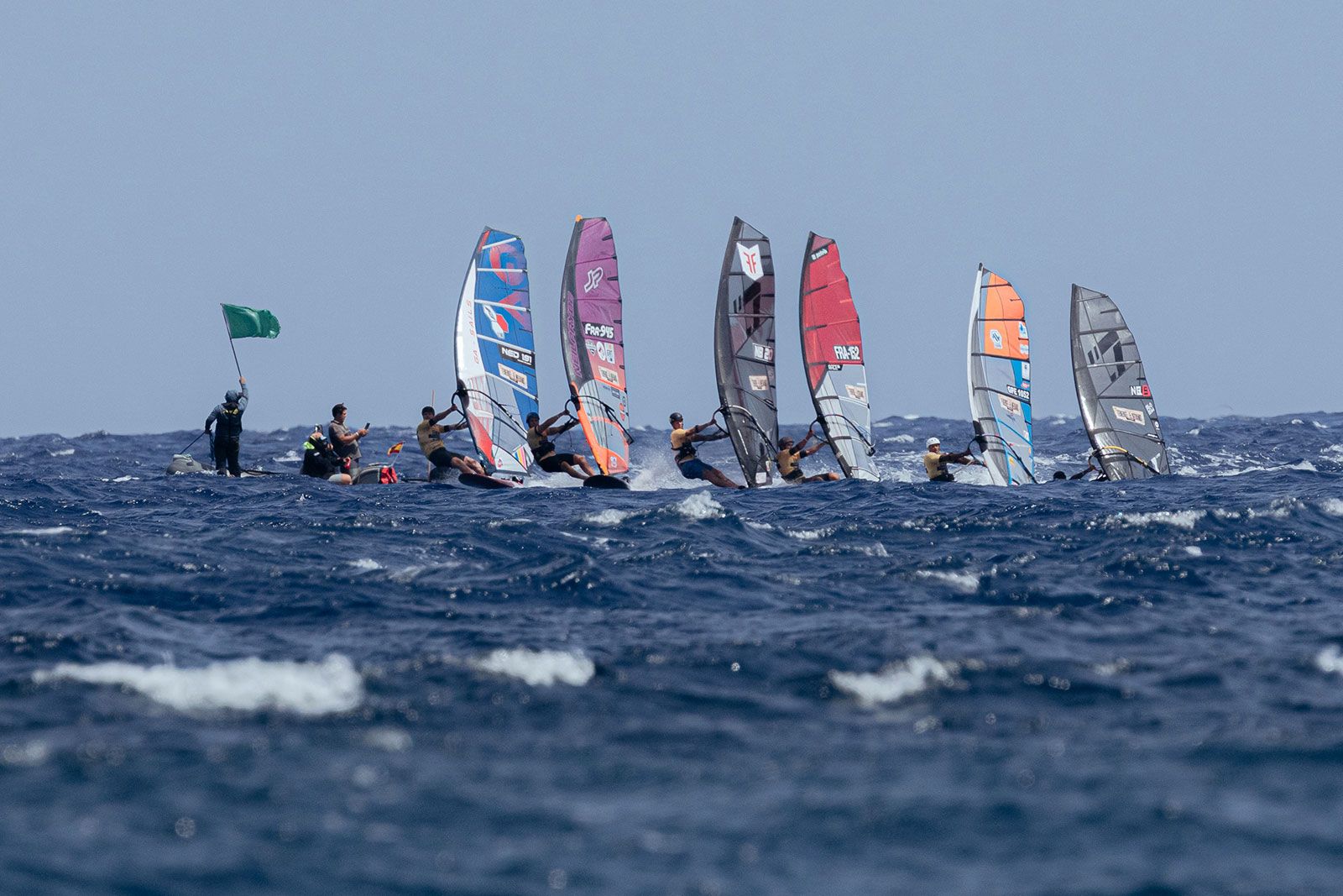 Jordy Vonk (Duotone Windsurfing) startete furios mit einem Sieg in Ausscheidung 2 und rückte kurzzeitig bis auf 1,3 Punkte an die Spitze heran. Doch ein taktischer Fehler im Halbfinale von Ausscheidung 4 kostete ihm das Finalticket - aktuell liegt er dennoch auf dem dritten Gesamtrang. Matteo Iachino (Starboard / Severne / Z Fins), Pierre Mortefons härtester Konkurrent im Titelkampf, kam mit zwei fünften und einem siebten Platz nicht über solide Resultate hinaus. Nach dem starken Auftakt fehlen dem Italiener nun 8,6 Punkte auf Mortefon - das Podium bleibt dennoch in Reichweite. Auch Maciek Rutkowski (JP / NeilPryde) musste Federn lassen: Nach einem guten Start und kurzfristiger Führung in der Gesamtwertung verlor der Pole in Ausscheidung 3 beim ersten Turn entscheidend an Boden. Mit Platz zehn und sechs fiel er auf Rang fünf zurück, punktgleich mit Matteo Iachino.