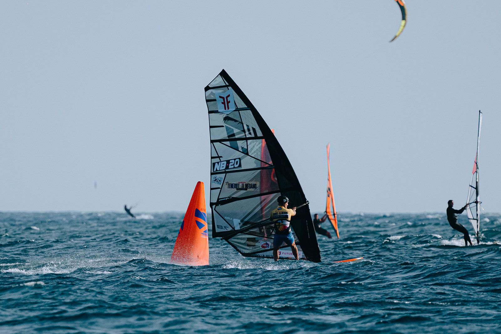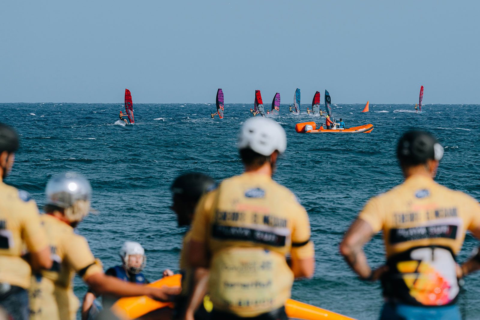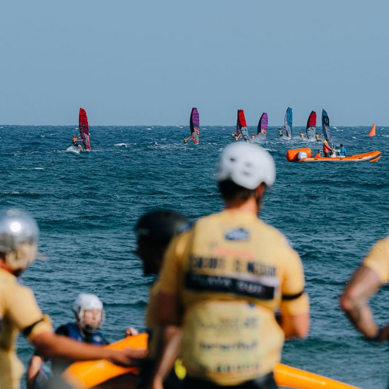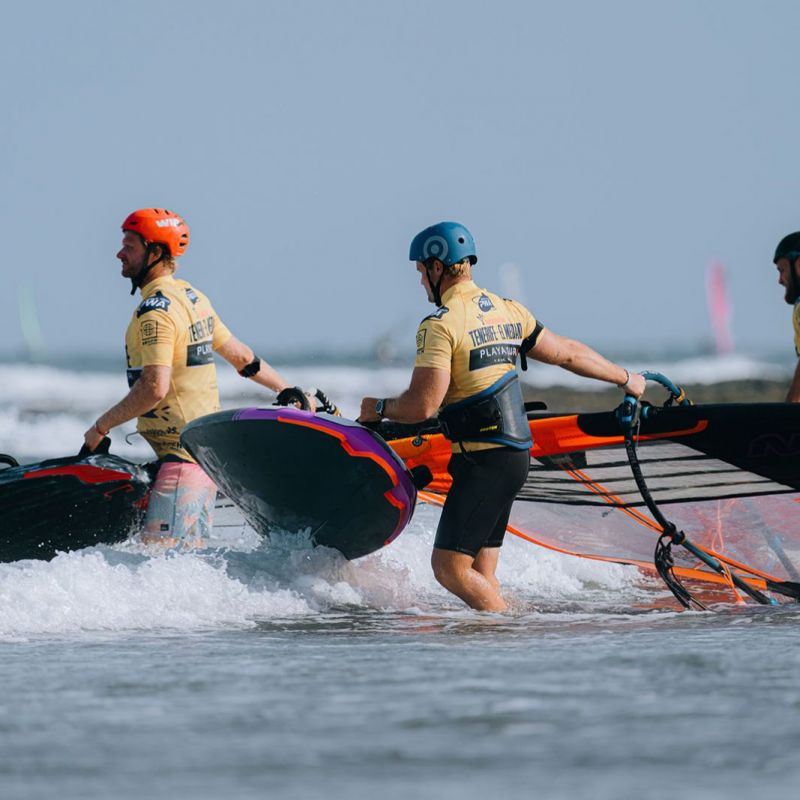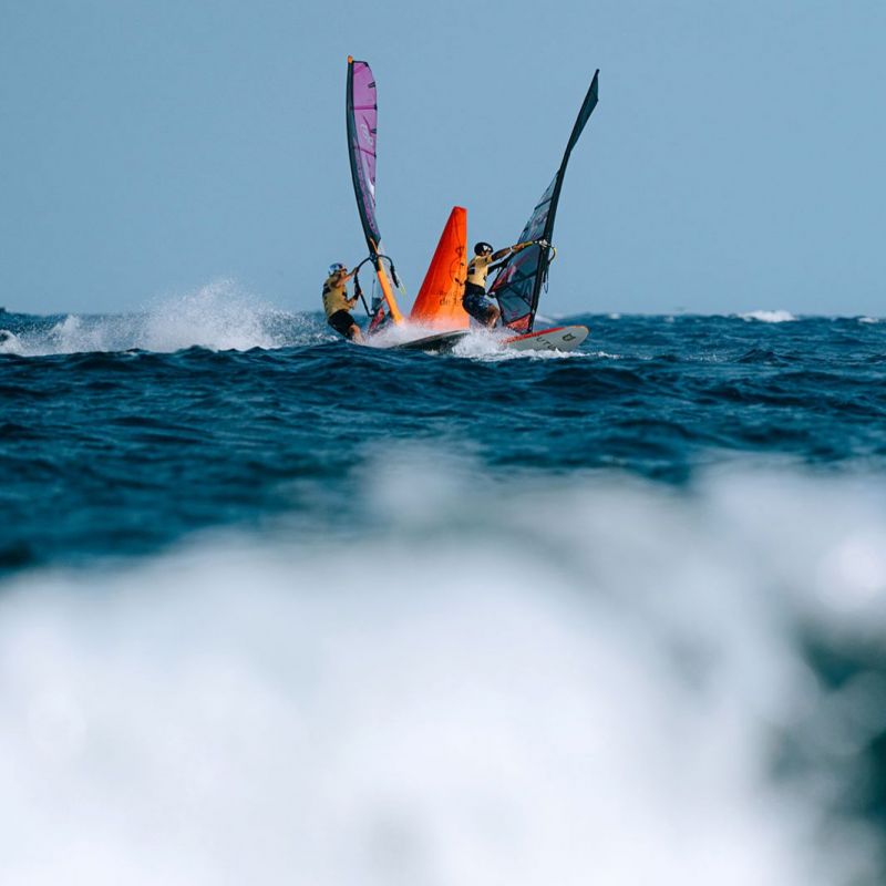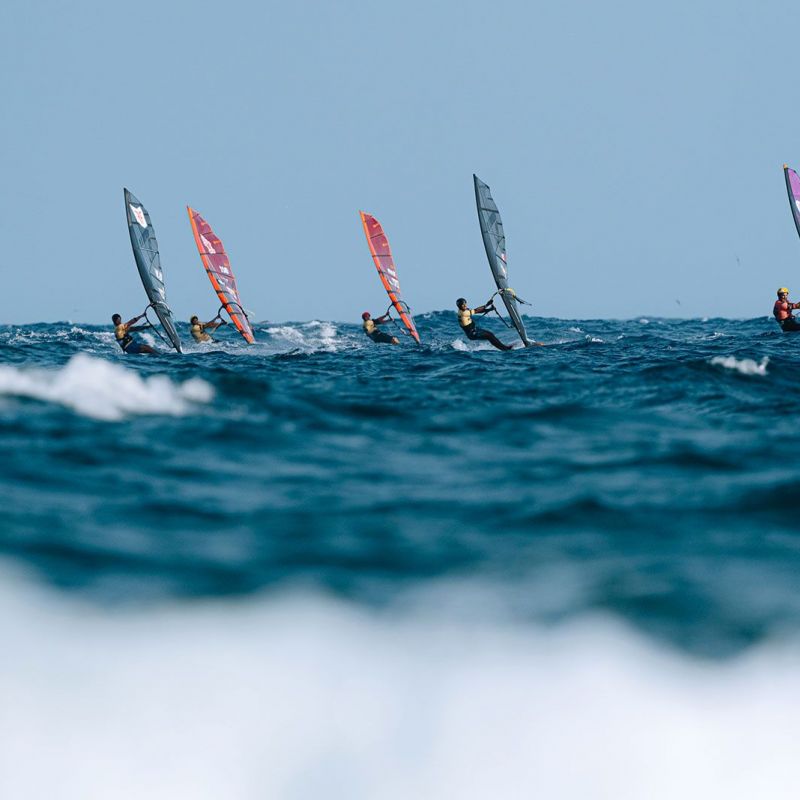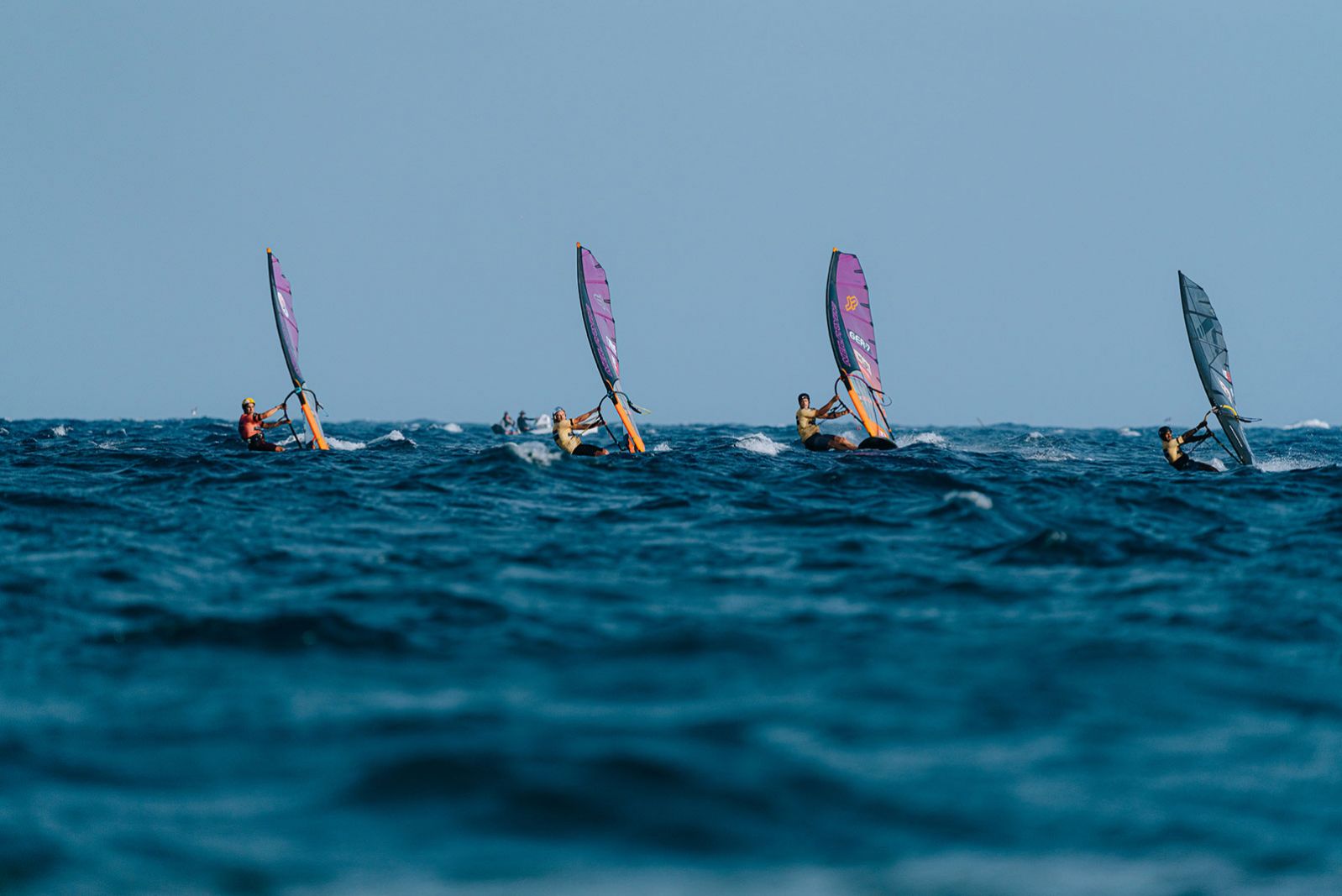 Jordy Vonk (Duotone Windsurfing) startete furios mit einem Sieg in Ausscheidung 2 und rückte kurzzeitig bis auf 1,3 Punkte an die Spitze heran. Doch ein taktischer Fehler im Halbfinale von Ausscheidung 4 kostete ihm das Finalticket - aktuell liegt er dennoch auf dem dritten Gesamtrang. Matteo Iachino (Starboard / Severne / Z Fins), Pierre Mortefons härtester Konkurrent im Titelkampf, kam mit zwei fünften und einem siebten Platz nicht über solide Resultate hinaus. Nach dem starken Auftakt fehlen dem Italiener nun 8,6 Punkte auf Mortefon - das Podium bleibt dennoch in Reichweite. Auch Maciek Rutkowski (JP / NeilPryde) musste Federn lassen: Nach einem guten Start und kurzfristiger Führung in der Gesamtwertung verlor der Pole in Ausscheidung 3 beim ersten Turn entscheidend an Boden. Mit Platz zehn und sechs fiel er auf Rang fünf zurück, punktgleich mit Matteo Iachino.