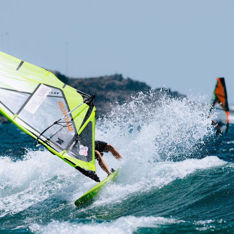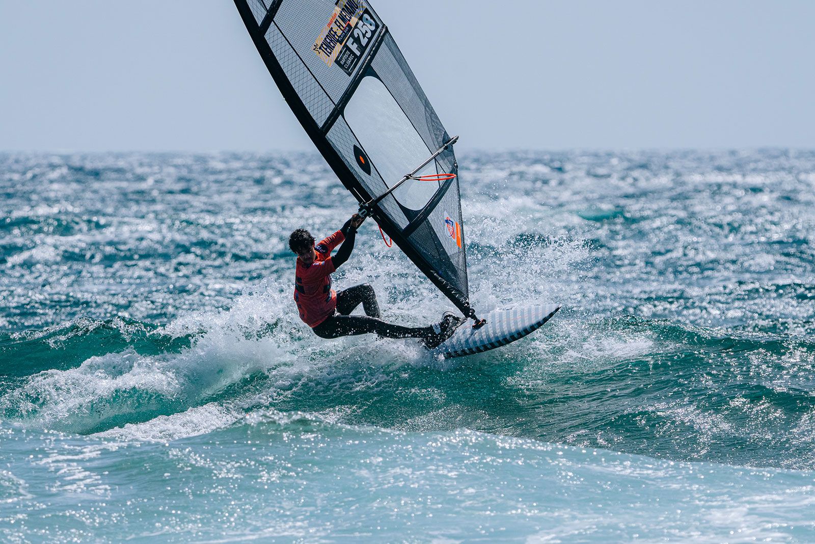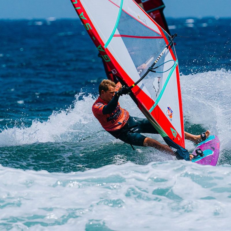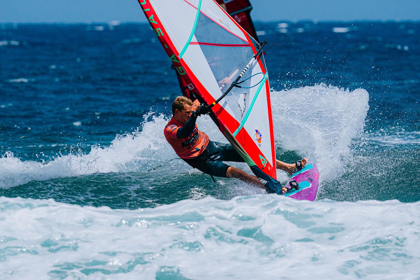 Bei leichten Wind und schwierigen Wellenbedingungen konnte an Tag 5 die Eröffnungsrunde im Waveriding der Herren abgeschlossen werden. Laurin Schmuth, Moritz Mauch, Henri Kolberg und Anton Richter sicherten sich erfolgreich einen Platz für die zweite Runde.