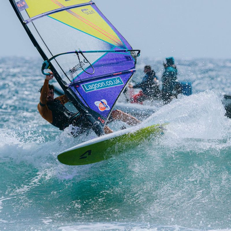 Arthur Arutkin (Flikka / Gunsails / Black Project Fins) überzeugte gleich im ersten Heat des Tages mit zwei soliden Wellenritten und erzielte mit 16,64 Punkten die zweitbeste Gesamtwertung. Laurin Schmuth (Goya Windsurfing / MFC) sicherte sich knapp den zweiten Platz und verwies Simon Thule (Patrik / Patrik Sails) sowie Finn Mellon (Quatro / Goya Windsurfing) auf die Plätze.