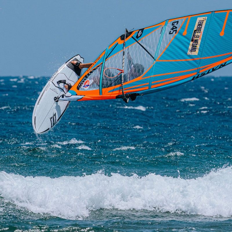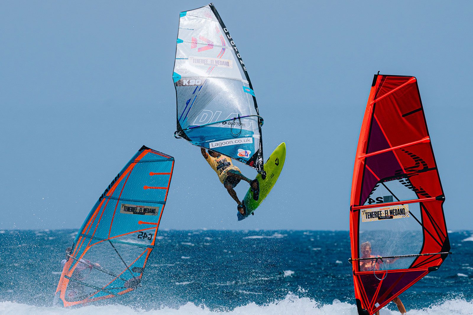 Mike Friedl (Goya Windsurfing), der zuletzt in Gran Canaria in die Top Ten segelte, zeigte auch auf Teneriffa starke Leistungen. Mit dem besten Sprung des Tages - ein Backloop mit 5,87 Punkten - gewann er Heat 3 vor Hayata Ishii (Quatro).