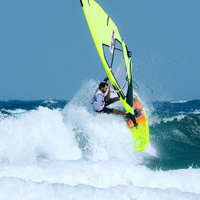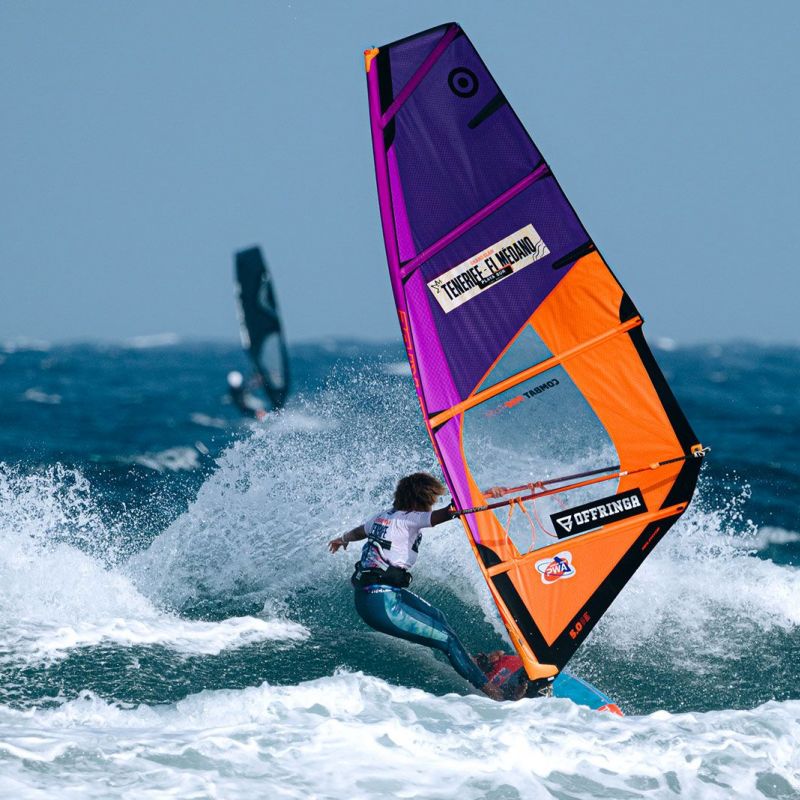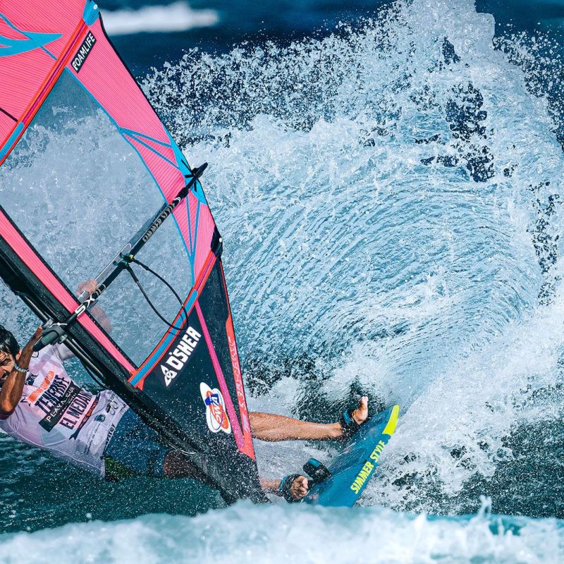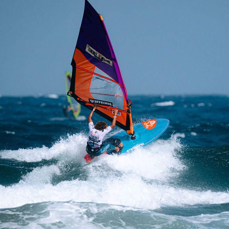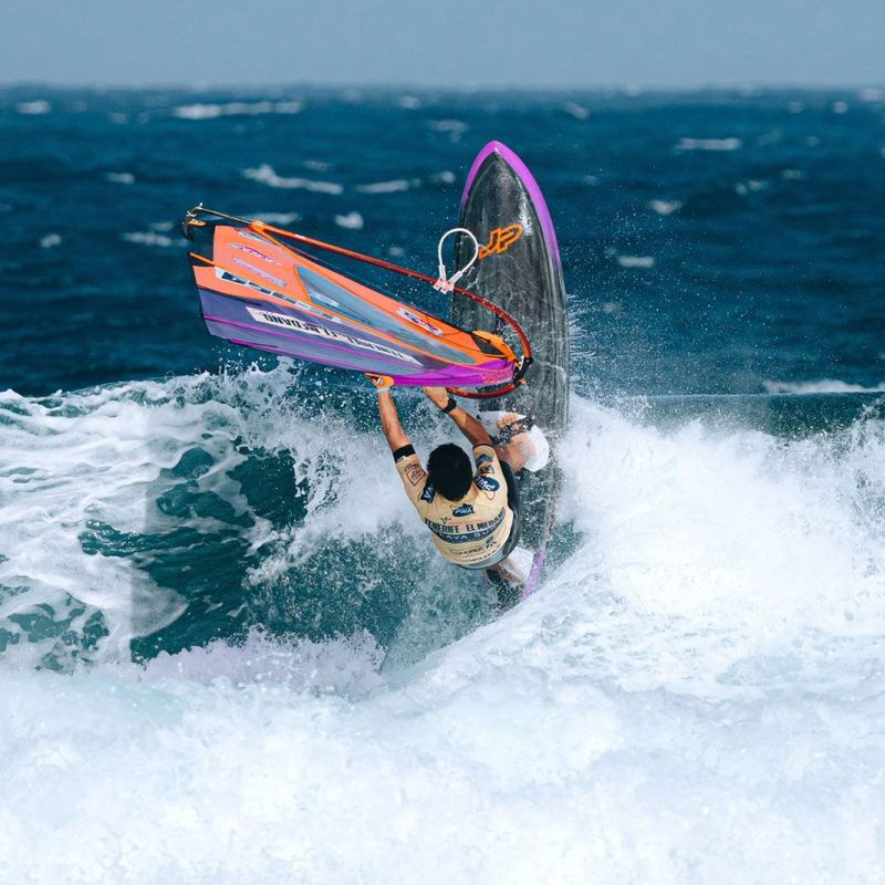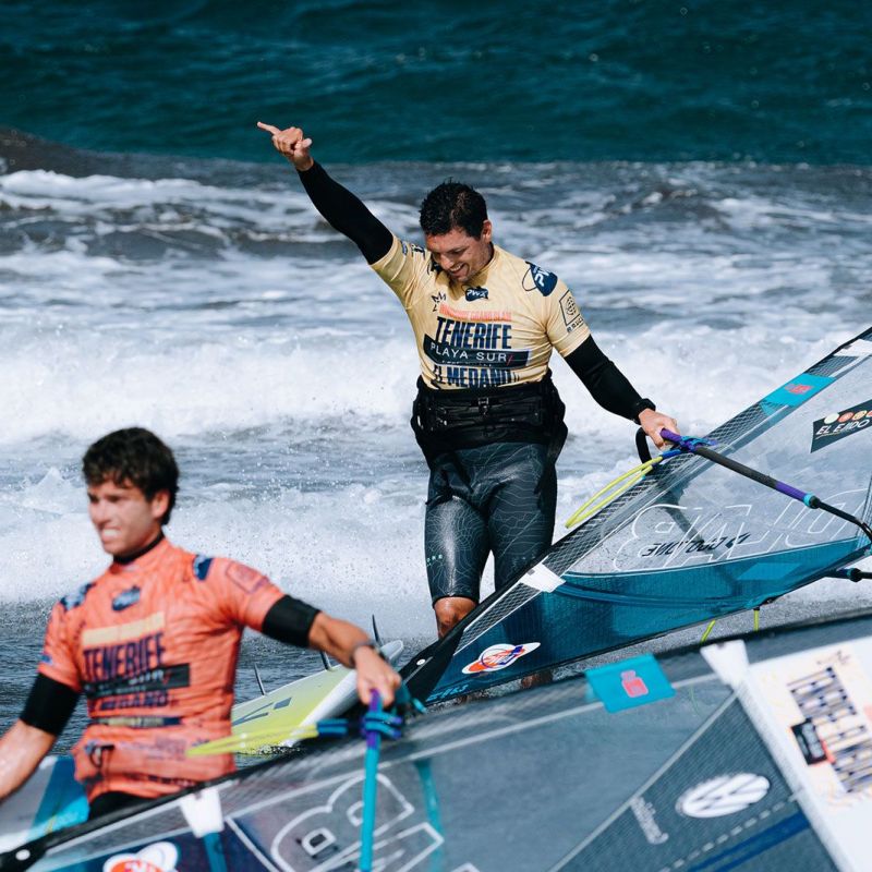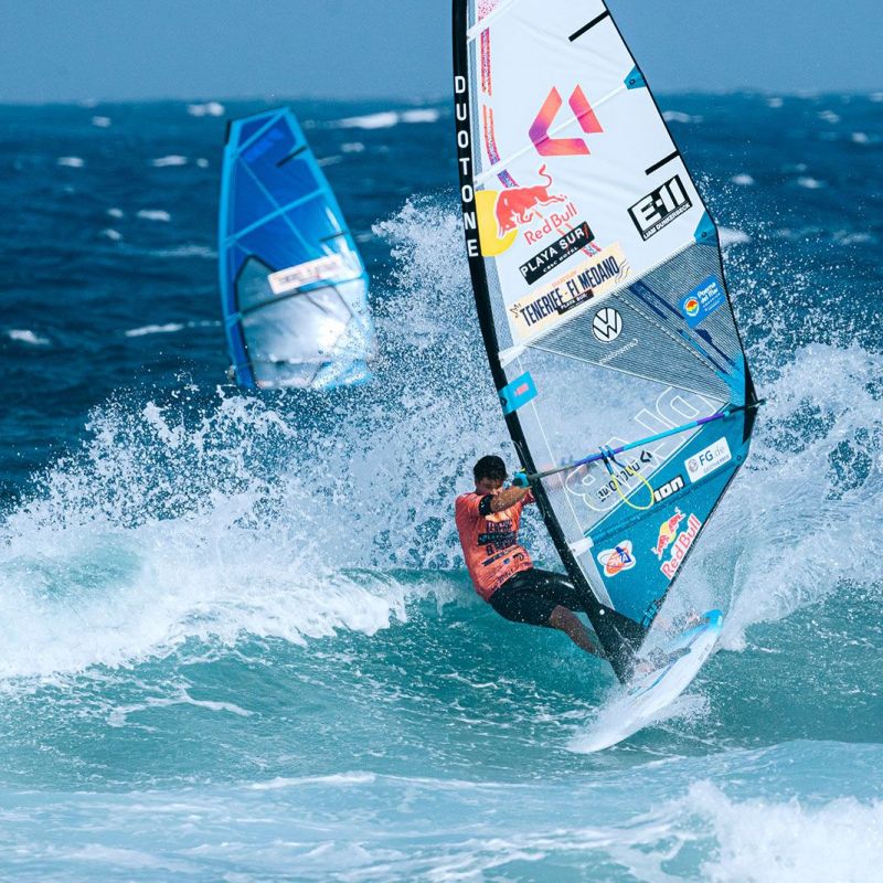 von Ingo MeyerTag 7 des 2025 Playa Surf CBbC Hotel Tenerife El Médano Windsurf Grand Slam lieferte die bislang besten Wellen des Events. Ein neuer Swell ließ El Cabezo richtig aufdrehen - kopfhohe Sets, perfekte Rampen. Der Wind ließ sich allerdings Zeit: Erst gegen 16 Uhr Ortszeit konnten die Single Eliminations fortgesetzt werden. Gefahren wurde nach dem „2 Waves + 1 Jump“-Format, mit 16 Minuten pro Heat, um das volle Potenzial auszuschöpfen.