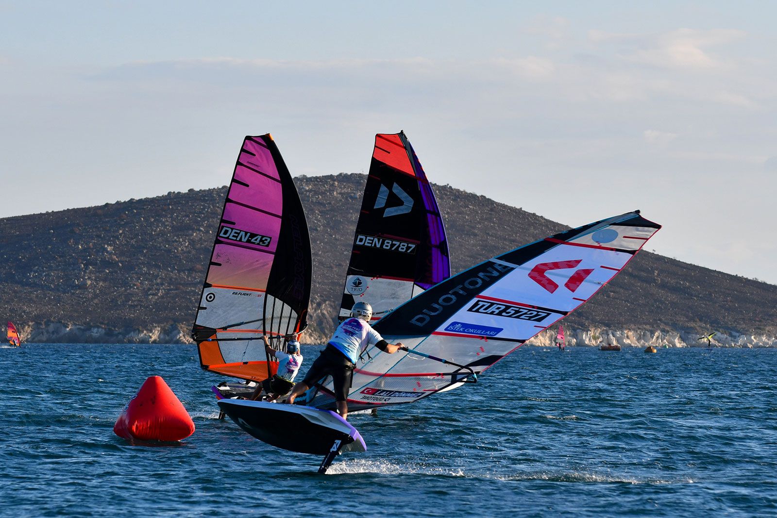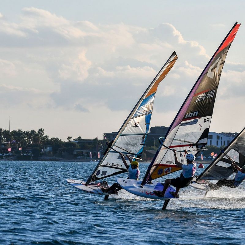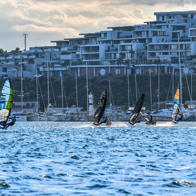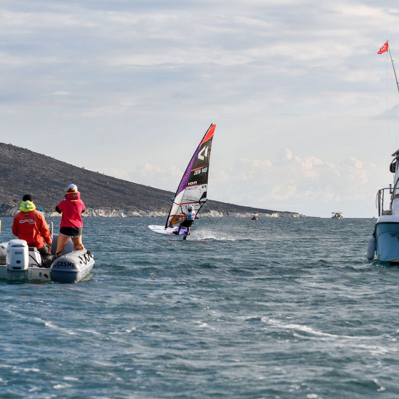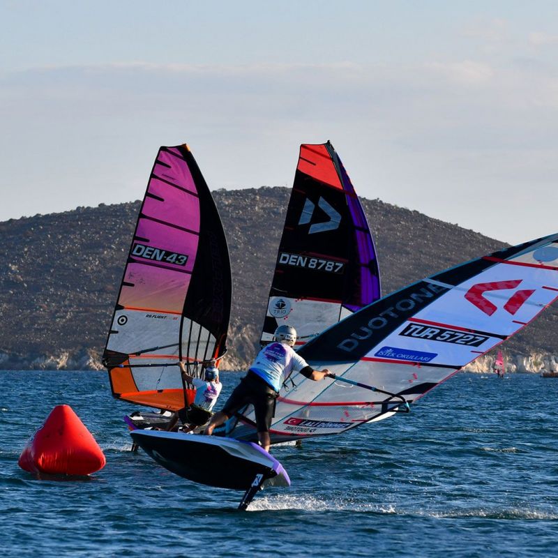 Bei den jungen Damen traten alle zusammen in einer Flotte an und obwohl die Ergebnisse in die jeweiligen Divisionen eingeteilt sind, ging es im gesamten Feld sehr eng zu. An der Spitze bei den U21 liegt Zeynep Hacudi, die alle fünf Rennen für sich entschied, aber sie wurde von der U17-Starterin Damla Kurtdemir (Duotone Windsurfing) permanent unter Druck gesetzt, und beide führen ihre jeweilige Kategorie an. İrem Metin wird ein Name sein, den man sich merken sollte, da sie die älteren Teilnehmerinnen mit viel Hartnäckigkeit herausforderte und gleichzeitig ihre Kategorie bei den U15 deutlich dominierte.