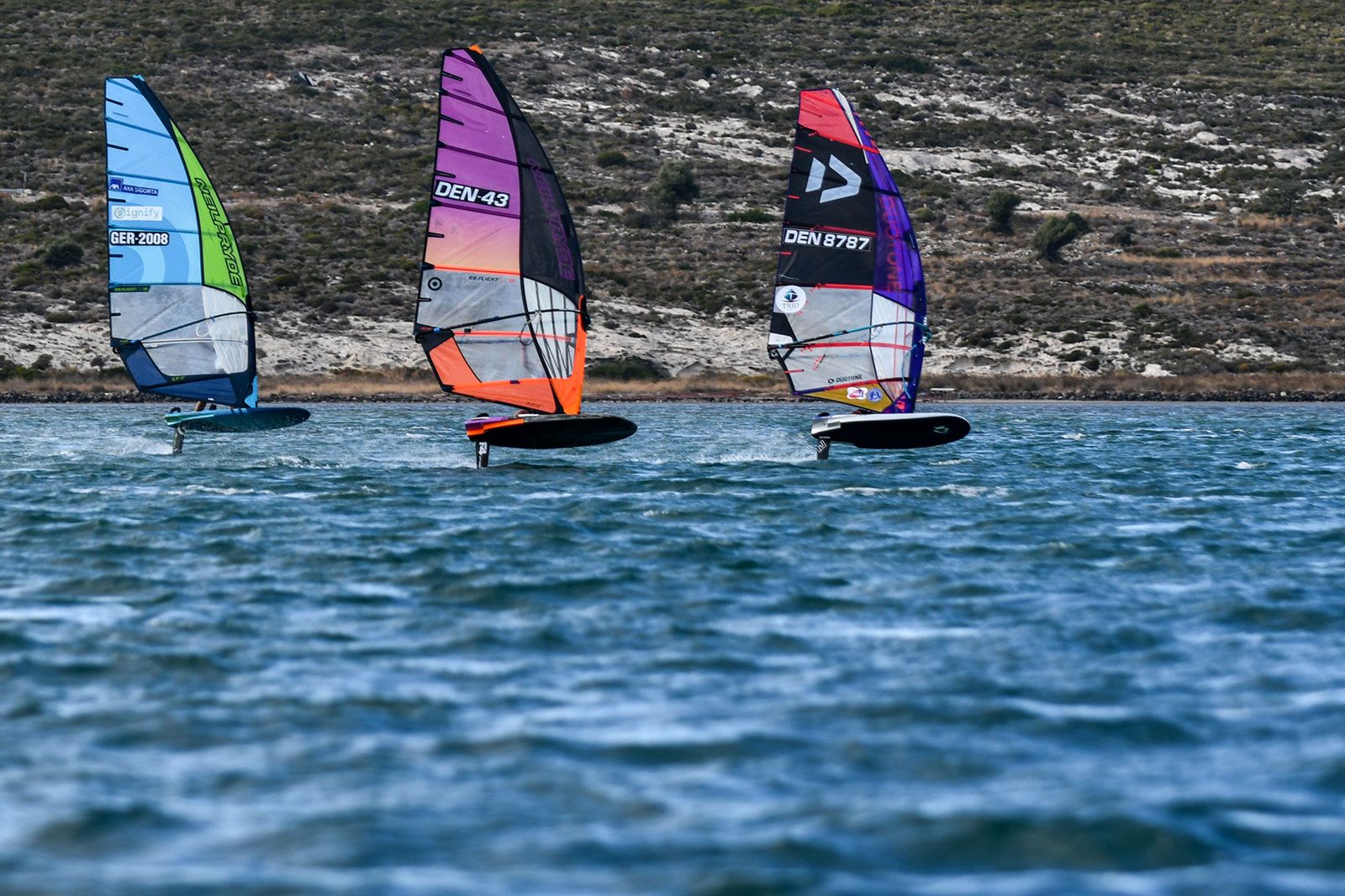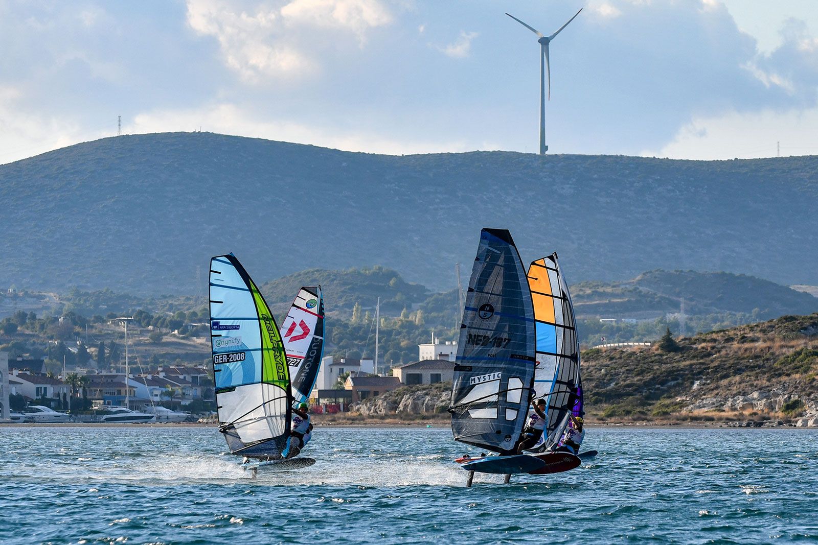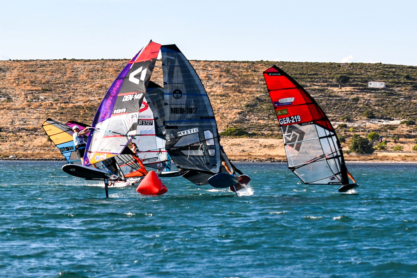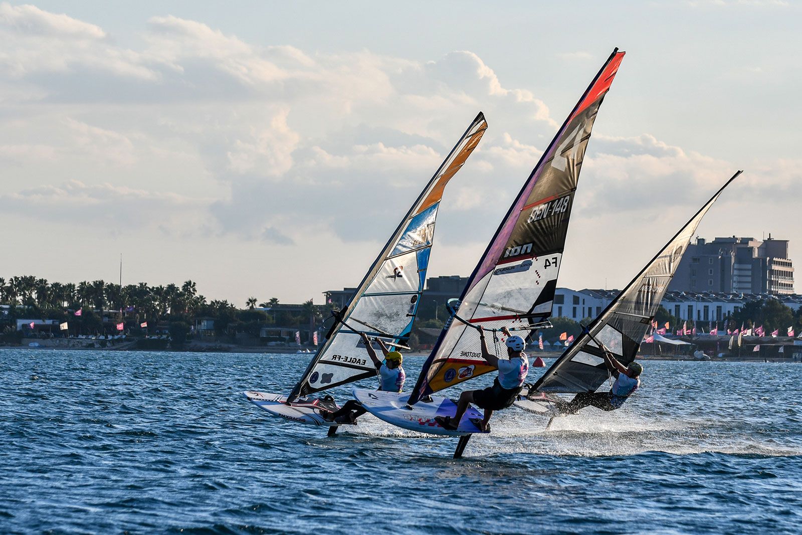 Bei den jungen Damen traten alle zusammen in einer Flotte an und obwohl die Ergebnisse in die jeweiligen Divisionen eingeteilt sind, ging es im gesamten Feld sehr eng zu. An der Spitze bei den U21 liegt Zeynep Hacudi, die alle fünf Rennen für sich entschied, aber sie wurde von der U17-Starterin Damla Kurtdemir (Duotone Windsurfing) permanent unter Druck gesetzt, und beide führen ihre jeweilige Kategorie an. İrem Metin wird ein Name sein, den man sich merken sollte, da sie die älteren Teilnehmerinnen mit viel Hartnäckigkeit herausforderte und gleichzeitig ihre Kategorie bei den U15 deutlich dominierte.