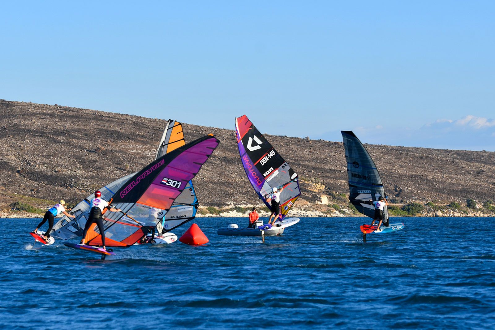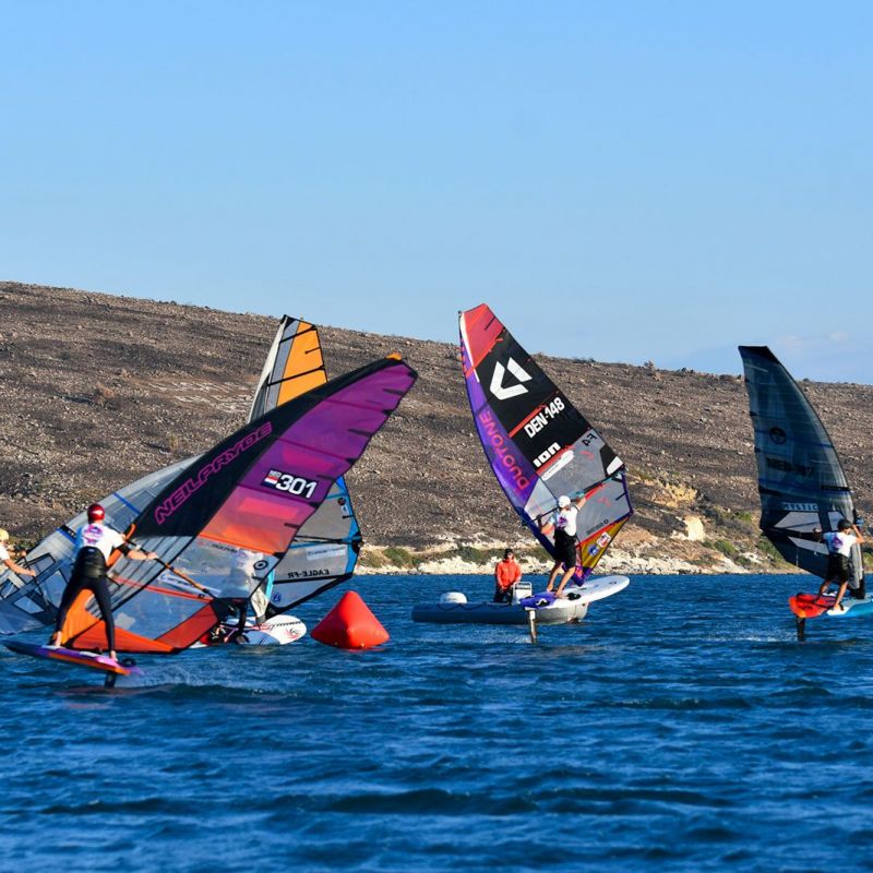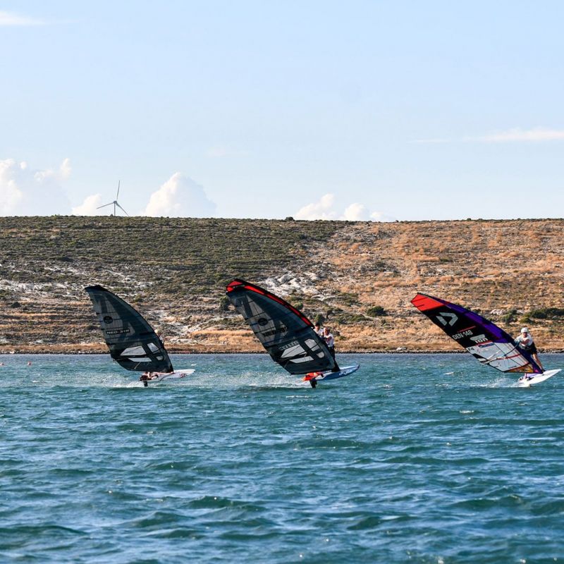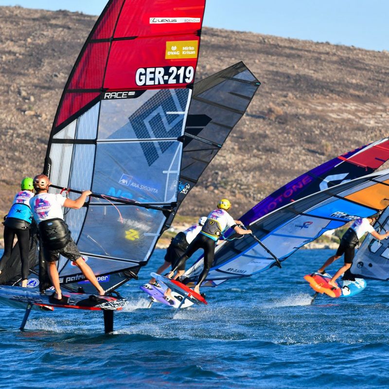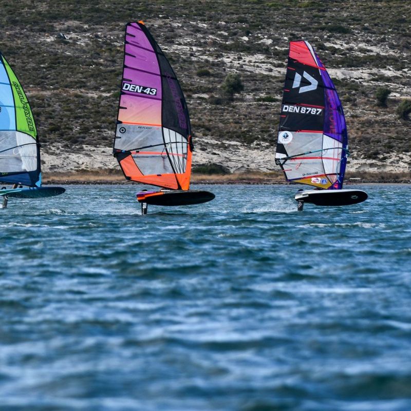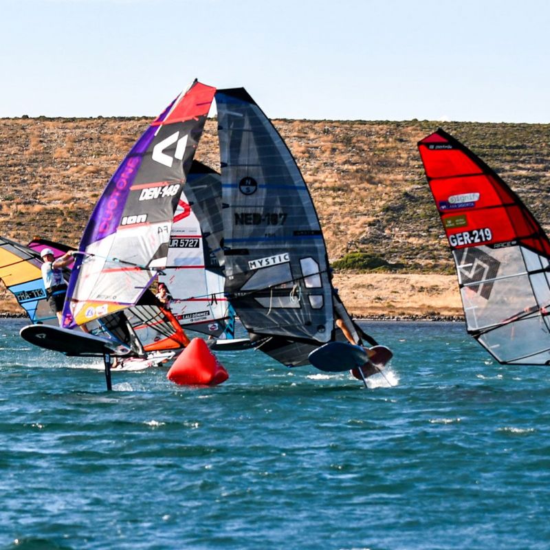 Gustav Permin (Tabou / GA Sails) zeigte eine perfekte Leistung und holte fünf von fünf Siegen in der U17-Division. Hinter ihm lieferten sich Mika Henning (Duotone Windsurfing) und Adam Kelar (Severne / JP) den ganzen Nachmittag einen Schlagabtausch. Obwohl Adam Kelar punktgleich mit Mika Henning liegt, hat er derzeit die Nase knapp vorn. Kuzey Ziyal startete langsam in den Wettkampf, doch als der Wind zunahm, zeigte er hohes Tempo und sicherte sich zwei zweite Plätze. Er kann ein echter Podiumskandidat sein, wenn es bei den prognostizierten besseren Bedingungen auf dem Foil weitergeht.