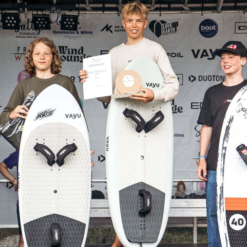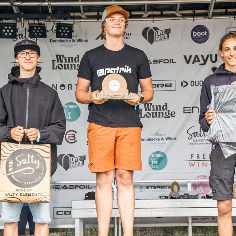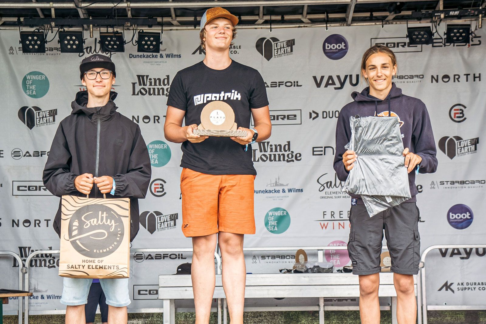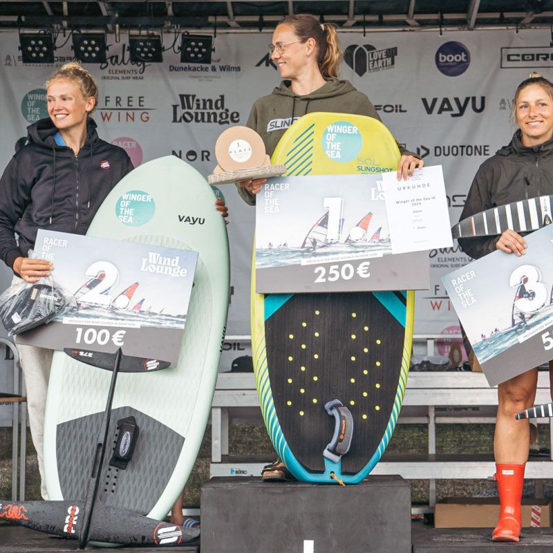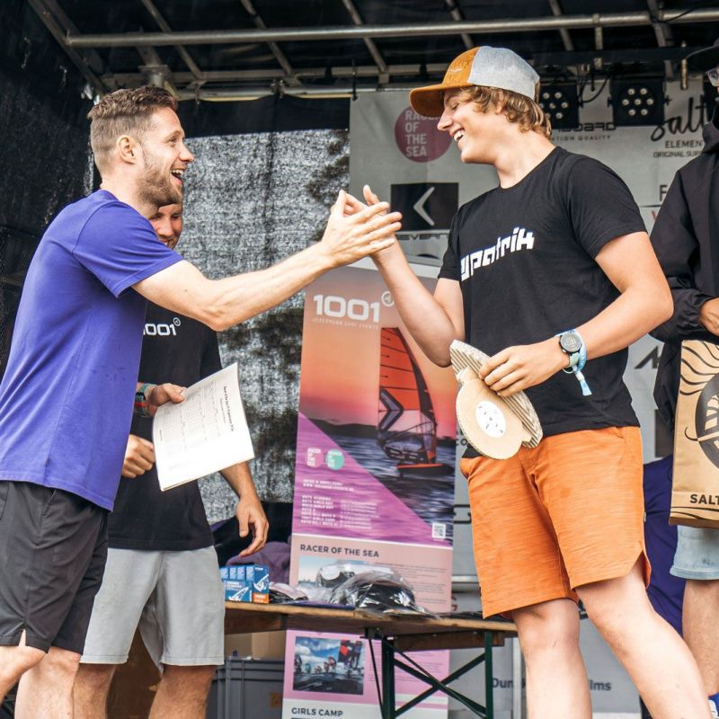 Der zweite Tag zeigte dann nochmal all denjenigen, die außerhalb von Schleswig-Holstein angereist waren, was ein echter norddeutscher Sommer ist. Regenschauer und zu wenig Wind bedeuteten zunächst Startverschiebung. Da der Regen leider nicht abnahm und der Wind nicht ausreichte, wurde gemeinschaftlich beschlossen die Siegerehrung ein wenig vorzuziehen und die Siegerinnen und Sieger der 11. Auflage der Einstiegsregatta Racer of the Sea zu küren. Bei der Siegerehrung gab es neben diversen Sachpreisen auch wieder ein Preisgeld in der Höhe von 1.001 €, das vom Online Surfshop Wind Lounge bereitgestellt wurde.