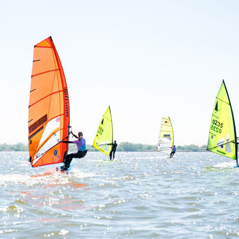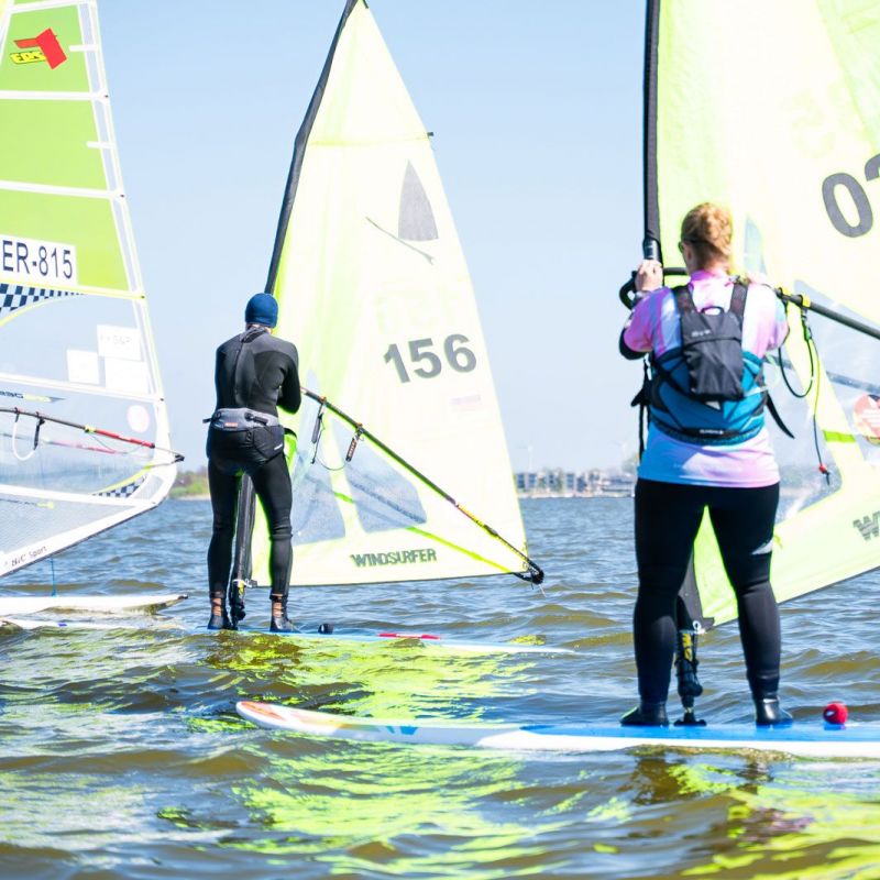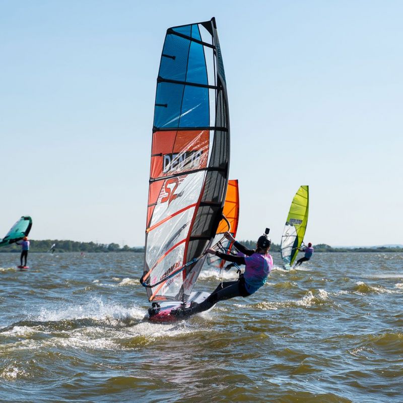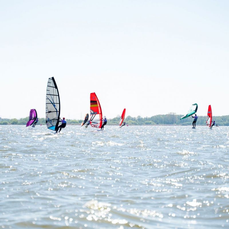 Das One-Hour-Format ist offen für alle Klassen. An diesem Tag waren Surferinnen und Surfer mit dem Wingfoil, Windfoil (inkl. iQFOiL), auf Fin-Slalom-Equipment,mit dem Raceboard und Windsurfer-LT am Start. Die Wetterbedingungen waren nahezu ideal: Bei strahlendem Sonnenschein und anfänglichen Winden von 8 bis 15 Knoten konnten die Raceboarder und foilenden Klassen ihre ersten Rennen absolvieren.