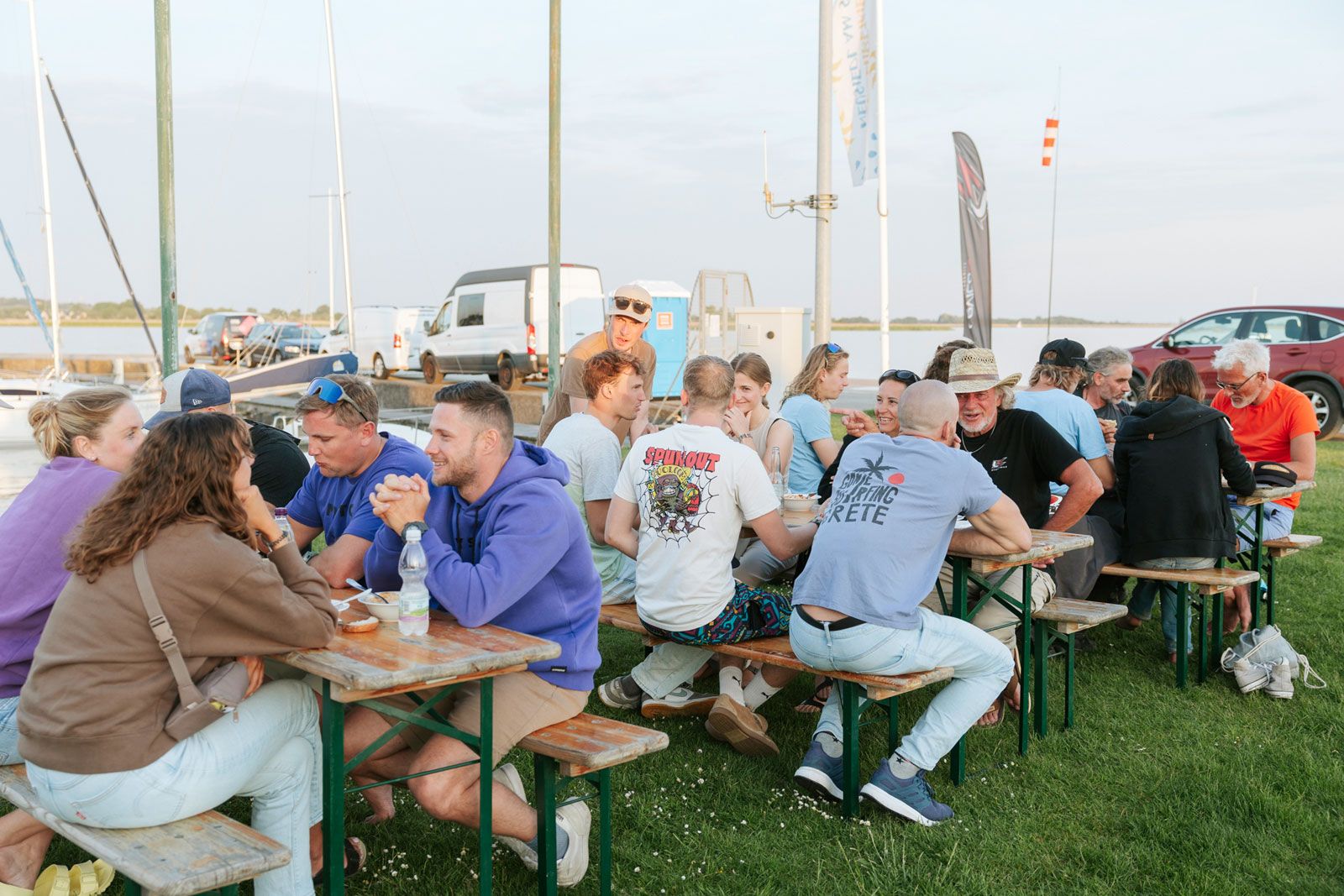 Los ging es am 4. Mai mit der obligatorischen Einschreibung und dem ersten Skippers' Meeting. Gleich anschließend gingen die Windsurfer und Wingfoiler in zwei separaten Feldern an den Start und konnten bei strahlendem Sonnenschein und bei Wind um die 12-14 Knoten erste Rennen bestreiten.
