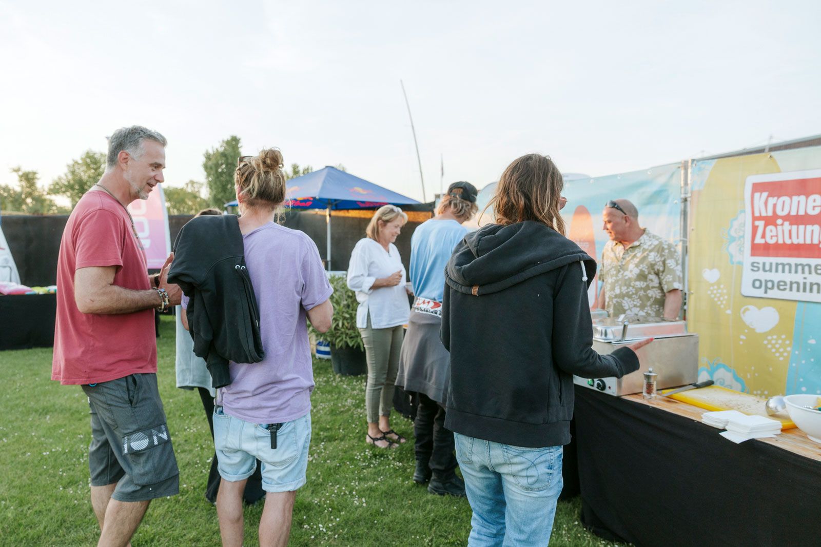 Bei den Windsurfern zeigte sich schnell ein Kopf-an-Kopf-Duell zwischen den Österreichern Max Hieber und Laurenz Wesendorfer, die nach vier Rennen am ersten Tag die Racer of the Sea Wertung anführten. Im Wingfoiling konnten am ersten Tag bereits neun Rennen absolviert werden, bei denen Clemens Siraki aus Österreich gleich sieben für sich entscheiden konnte und so nach dem ersten Tag klar in Führung lag. Nach der Tagessiegerehrung auf der Ö3-Eventbühne gab es dann das legendäre „Podo-Style-Chili“ zusammen mit dem neuen Corona 0,0% und einer Tombola, bei der niemand der Teilnehmerinen und Teilnehmer mit leeren Händen nach Hause fahren musste.