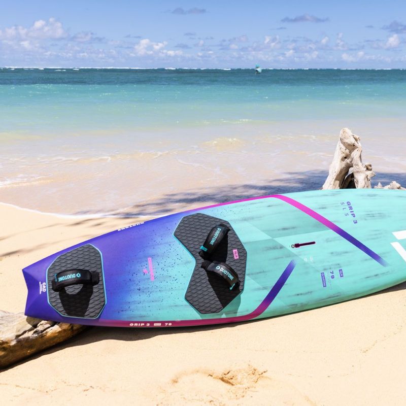 Der Grip 3, Duotones zu 100 % auf das Thruster Finnen-Setup abgestimmter Waveboard-Shape, geht in die nächste Saison. Das exklusive Full Custom Layup wurde von Chefentwickler und QR-Manager Vasin Siritho verfeinert. Den wichtigsten Einfluss auf die Entwicklung hatten aber der dreifache PWA-Weltmeister Víctor Fernández und das erfolgreiche Duotone-Nachwuchsteam um Alexia und Carlos Kiefer und Tobias Bjørnå.