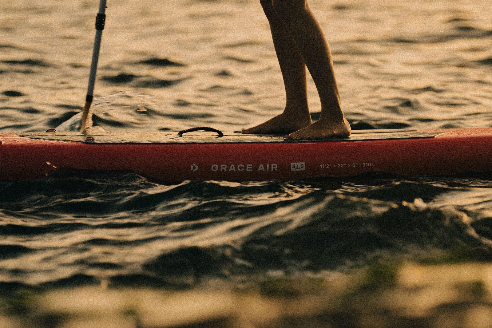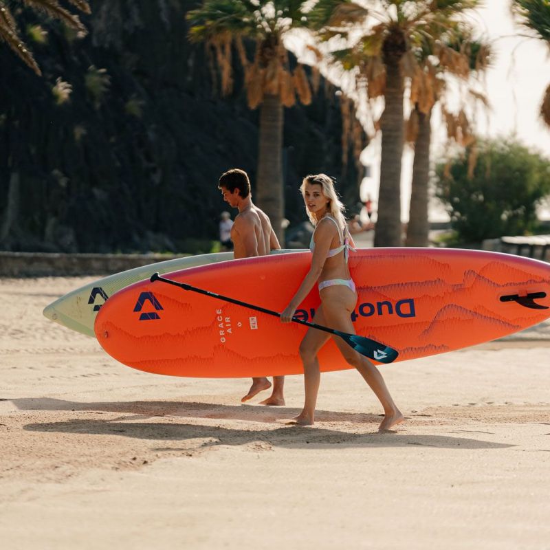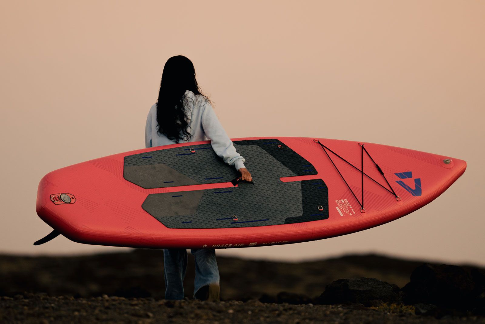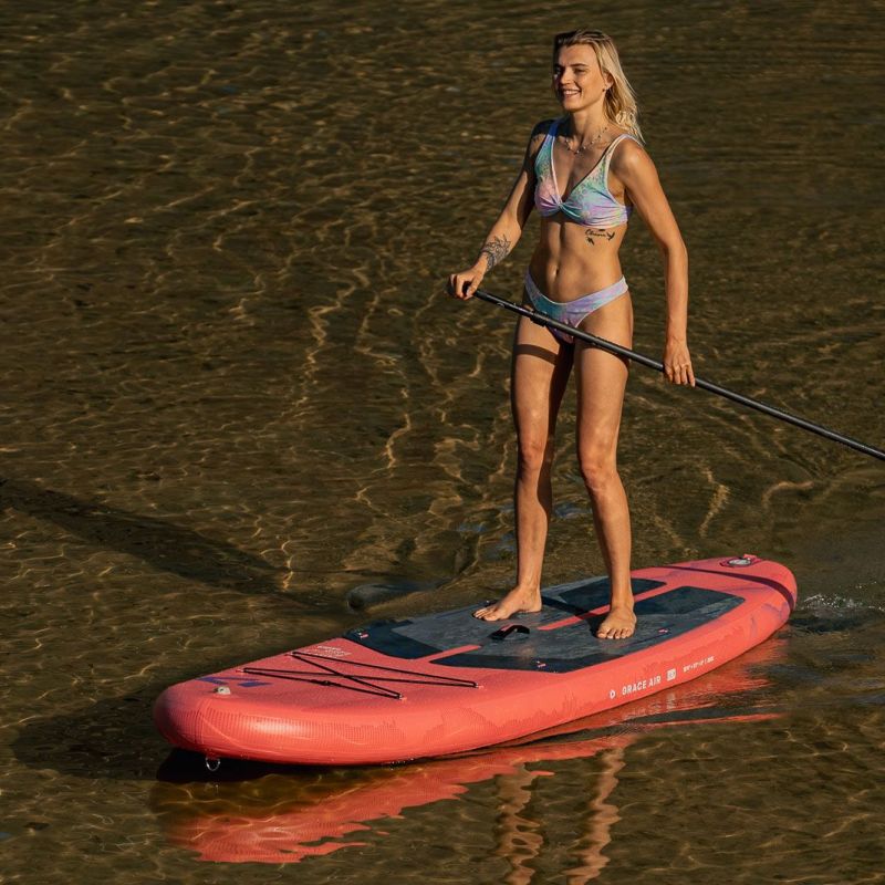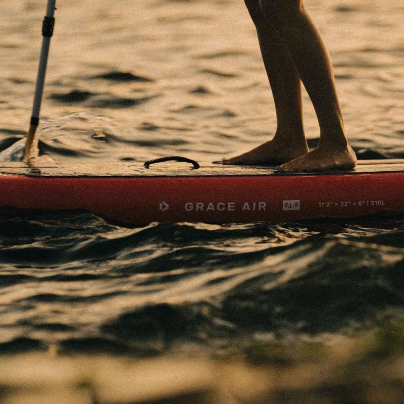 Das Grace Air SLS ist ein Allround-Inflatable SUP, das speziell auf die Bedürfnisse von Frauen abgestimmt. Es verspricht ein klassisches Board-Feeling mit moderner, Travel-Ready-Performance. Zur Auswahl stehen zwei verschiedene Shape-Konzepte. Das 10'2'' hat die gleiche Form wie das Flow Air SLS und soll damit ideal für flaches Wasser bis zu moderaten Wellen sein, das 11'4'' hat die Form wie das Blitz Air SLS und ist somit eher als Touring-/Exploring-Board geeignet.