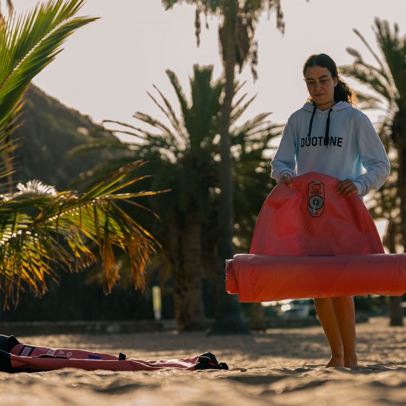 Das Flow Air SLS soll ein klassisches SUP-Feeling mit voller Allround-Performance kombinieren. „Der brandneue Malibu-Longboard-Style-Shape sorgt für ein geschmeidiges, intuitives Fahrgefühl und bietet genau die Kontrolle, die für schnelle Fortschritte nötig ist“, heißt es von Duotone. Mit nur 6,60 bis 7,30 kg bietet das Board einen echten Leichtgewicht-Vorteil. Mit einem Packvolumen von nur 35 Litern ist es die komfortable Antwort auf die Bedürfnisse des urbanen Lebens und Anforderungen auf Reisen.