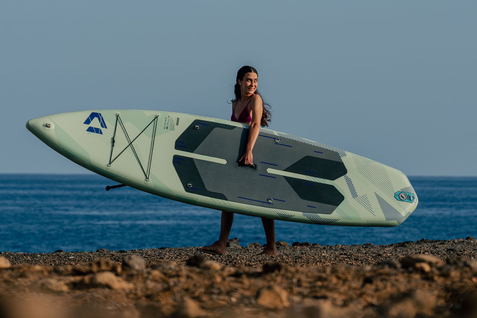 Das Alfa WS Air ist en vielseitigstes, leistungsorientiertes Einsteigerboard für Fahrer bis zu 100 kg. Es soll ein erstklassiges Erlebnis für Paddeln und Windsurfen in einem hochportablen Paket bieten. Der Mastfußeinsatz, erlaubt den sofortigen Wechsel zum Windsurfen. Mittelfinnen können bei Bedarf eingesetzt werden uns sollen dann hervorragende Amwindleistung und Stabilität bieten. Das weiche Deckpad bietet hervorragenden Grip und ist bei Stürzen besonders fehlerverzeihend - ideal für die ganze Familie.