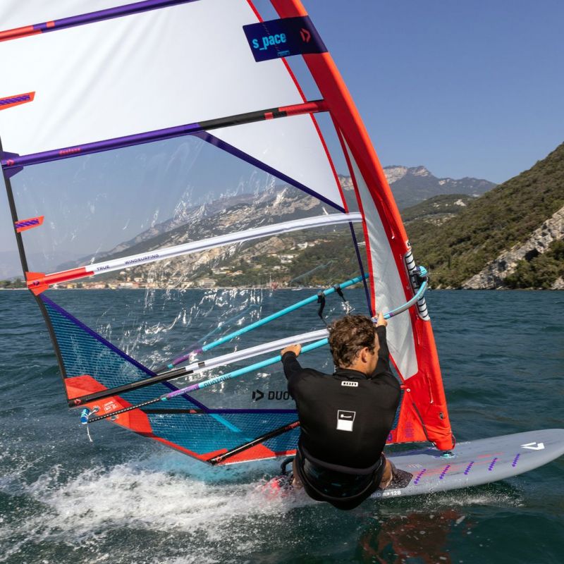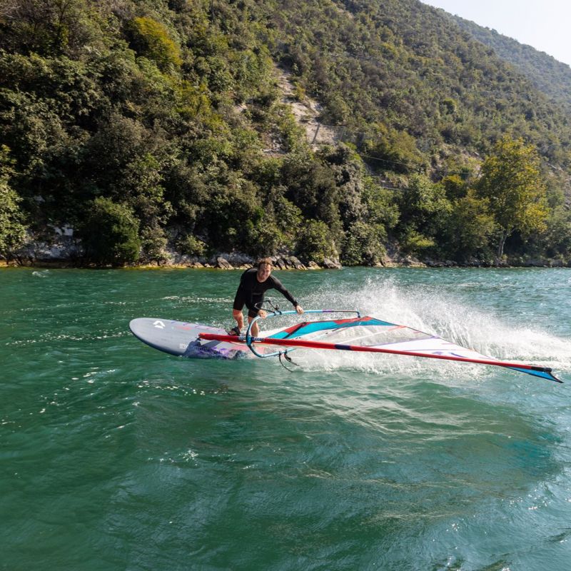 - Vergrößertes V vor der Mastspur und zum Heck lässt das Board frei fahren und verbessert die Kontrolle für Race-Einsteigerinnen und -einsteiger